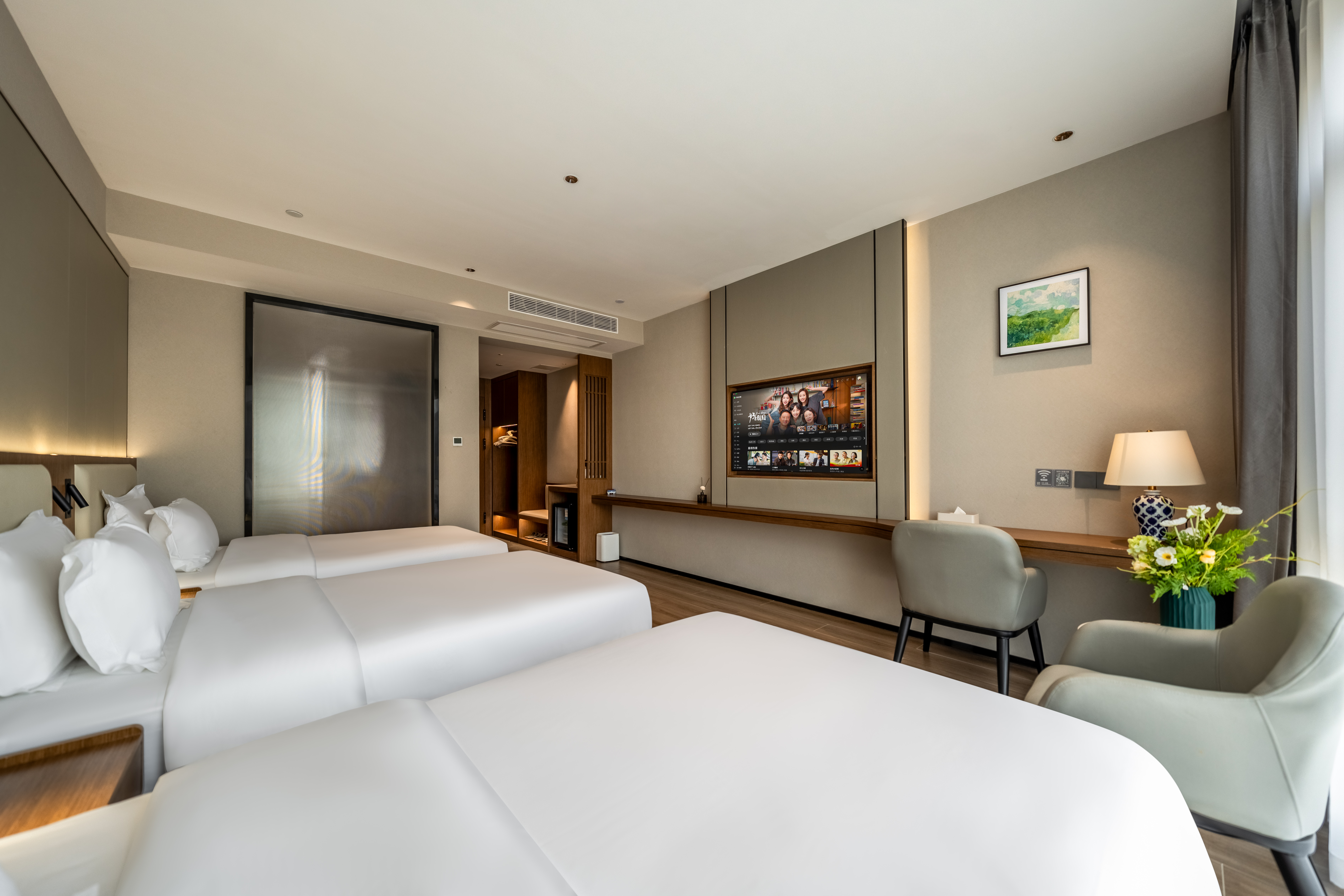智享三床房『智能客控|中央空調|隔音門窗』