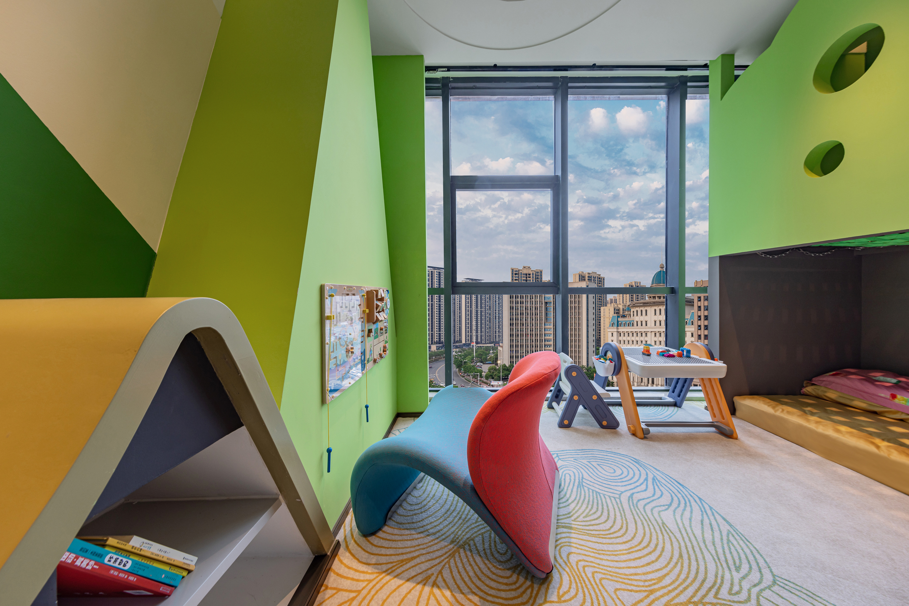 亲子景观套房【滑滑梯-攀岩+蓝猫精灵+上下铺小童床】