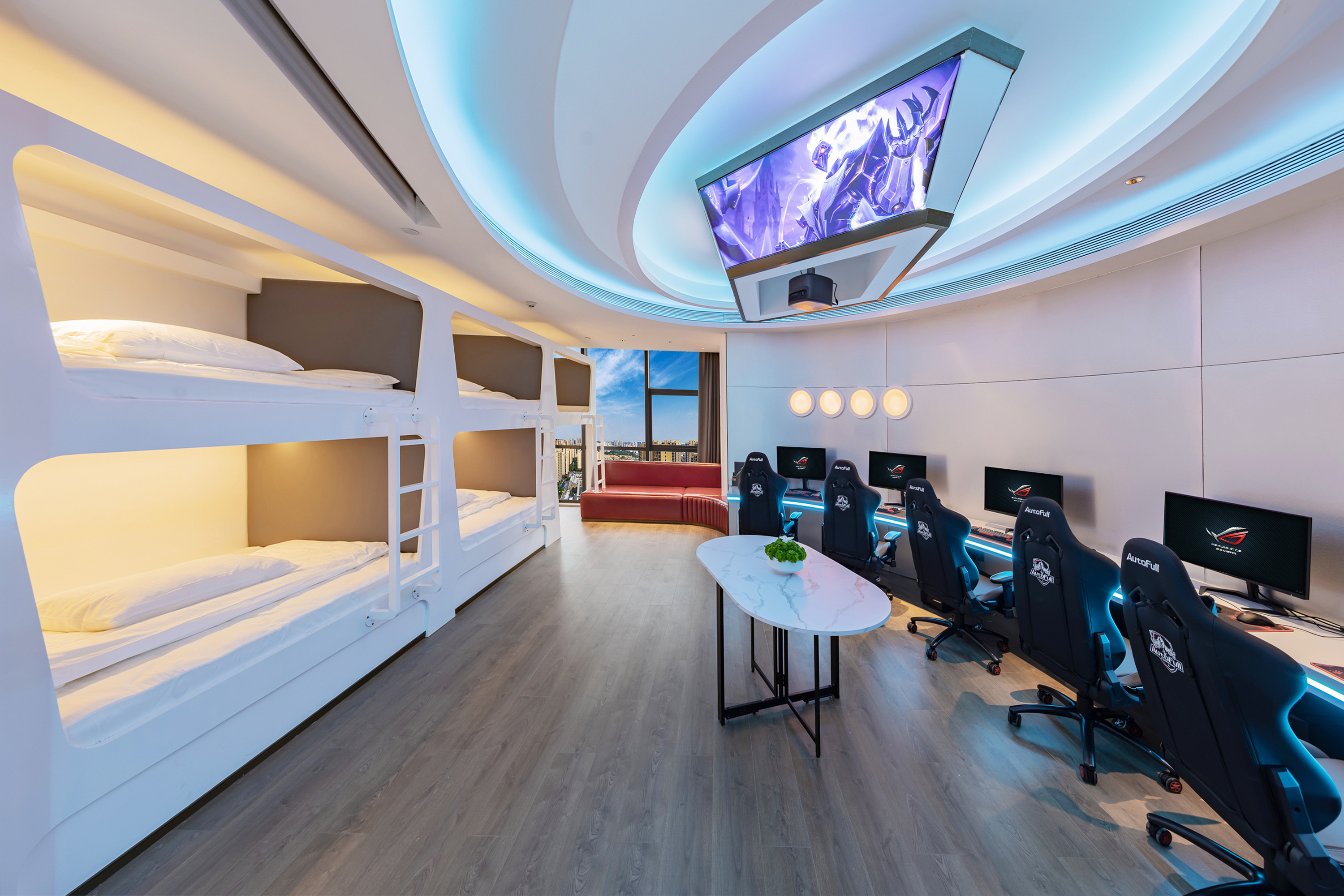 电竞景观套房【五机位超网速+五床位上下铺+巨幕投影】