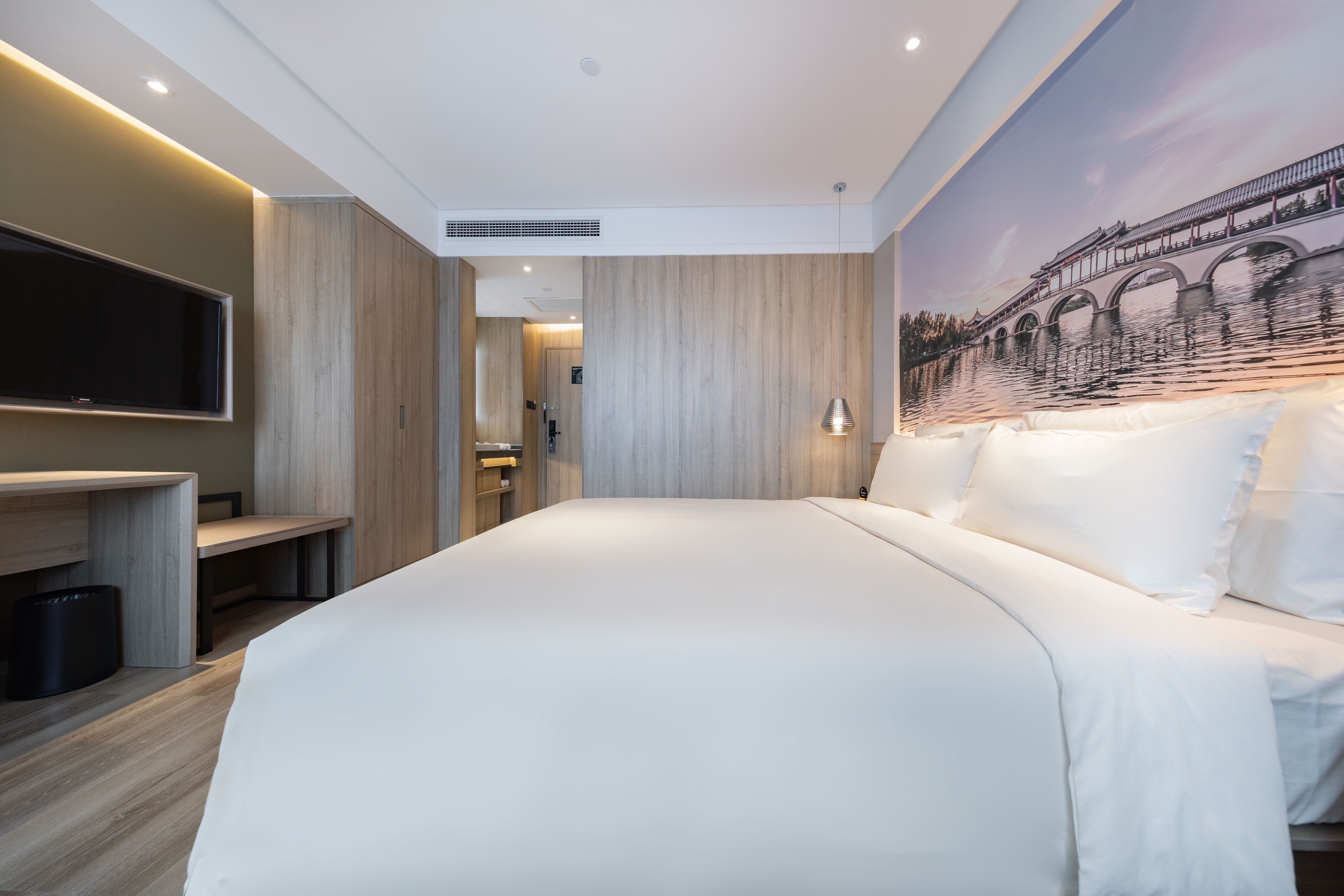 Duomai Jimu City-View Double Bed Room With Screen Projection Tv, Mini Fridge, And Bathrobe