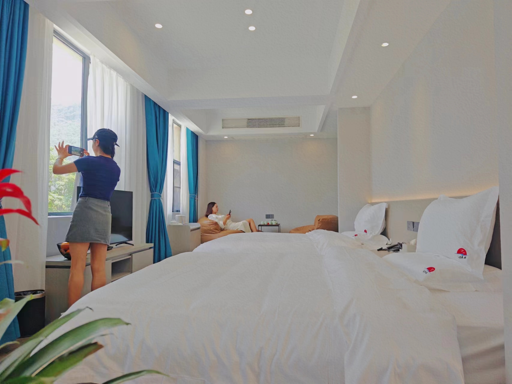 【烟火-乘月】乌江江景豪华双床房(带麻将机)
