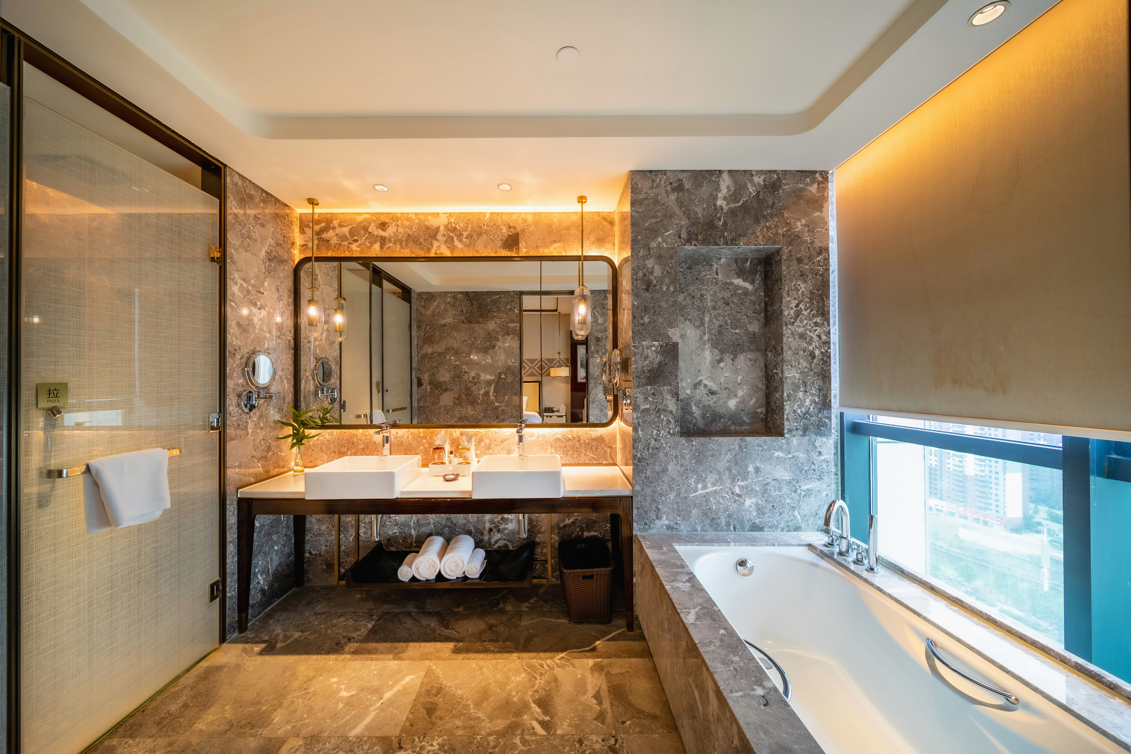 豪华双床房【全景落地窗·乾湿分离·双面盆·浴缸】