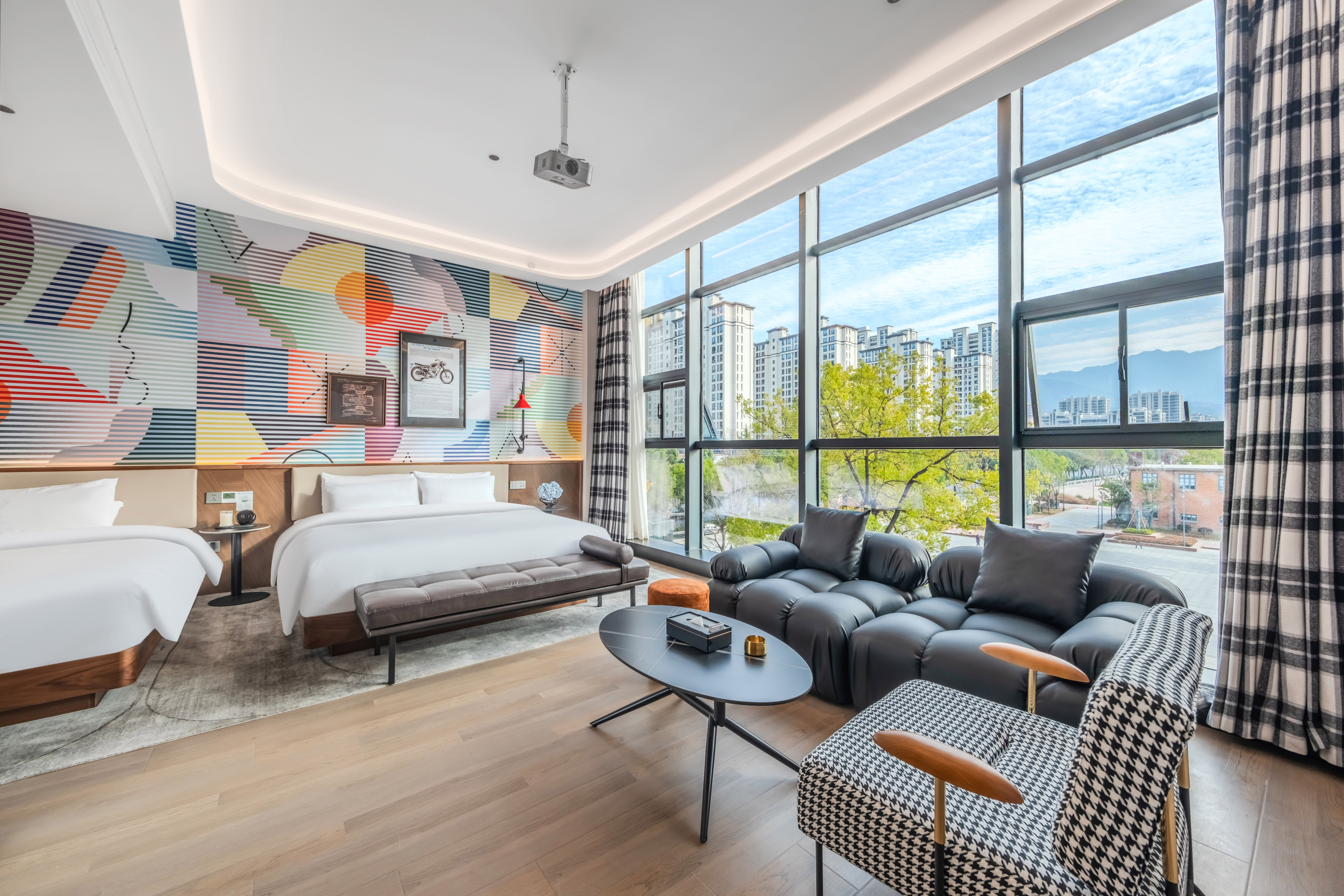 巨幕LOFT雅致大床房丨落地窗观景I影视会员I动静分离