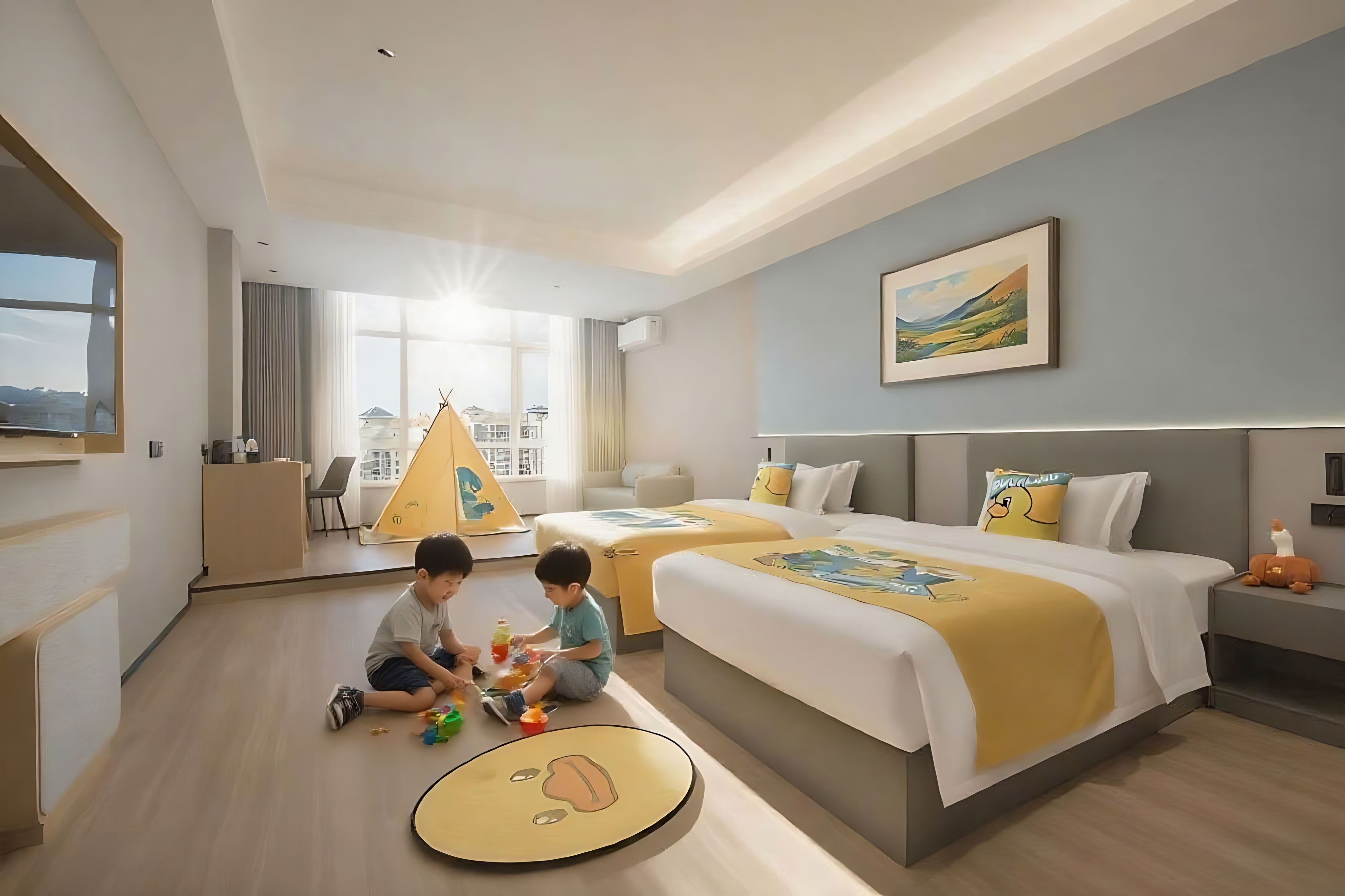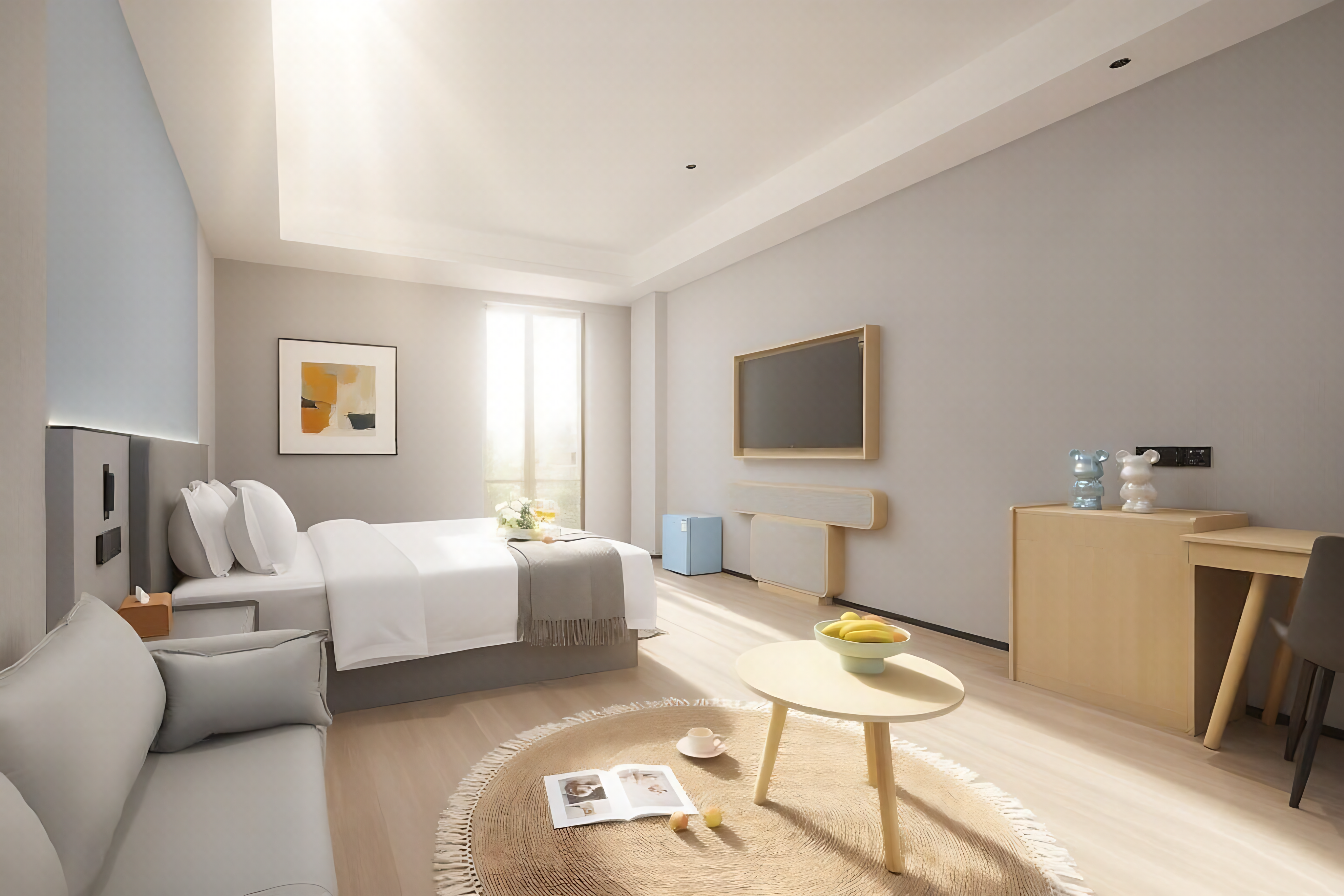 墨韵∥三人间『零压床垫|60寸电视|电动窗帘|无界空间』