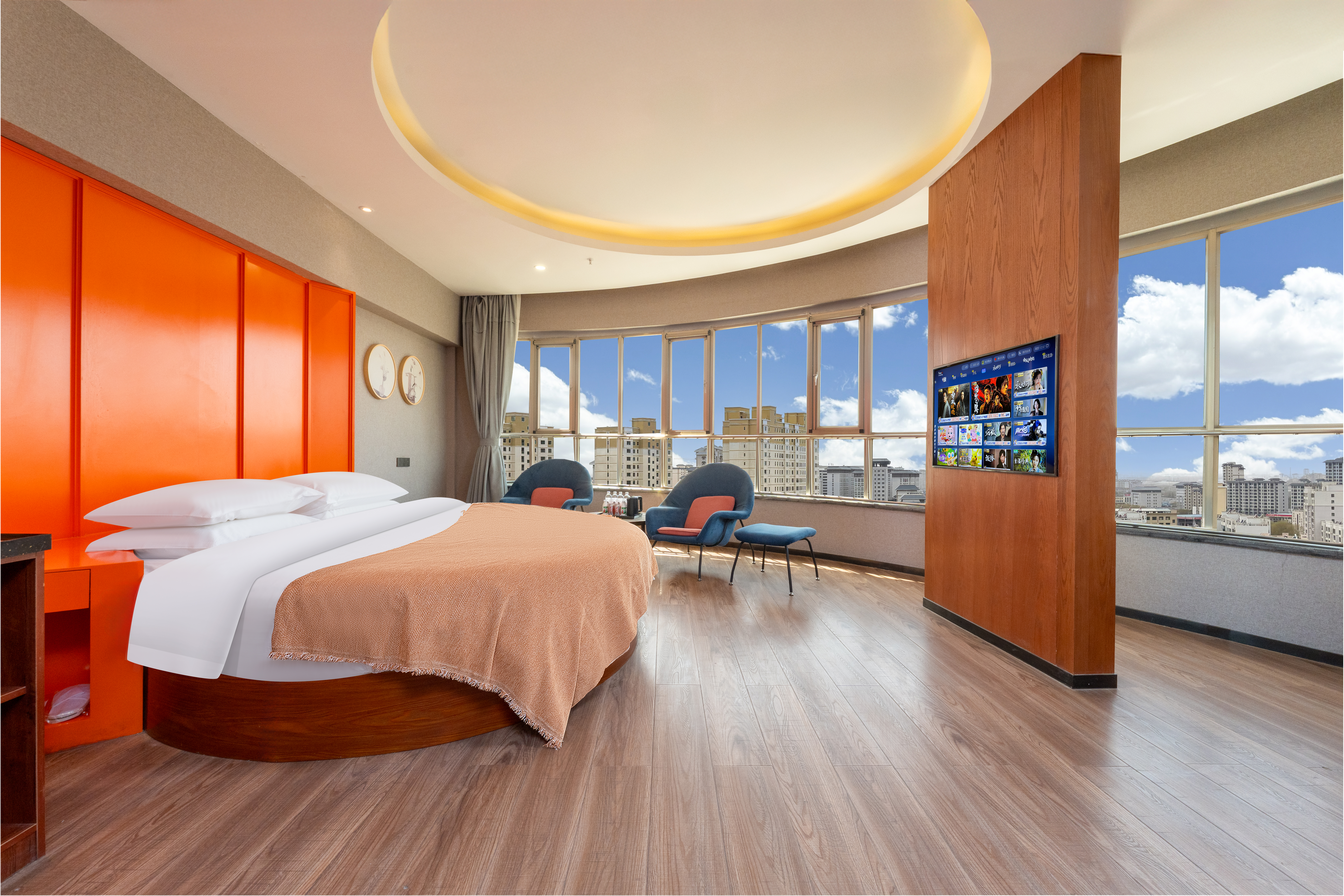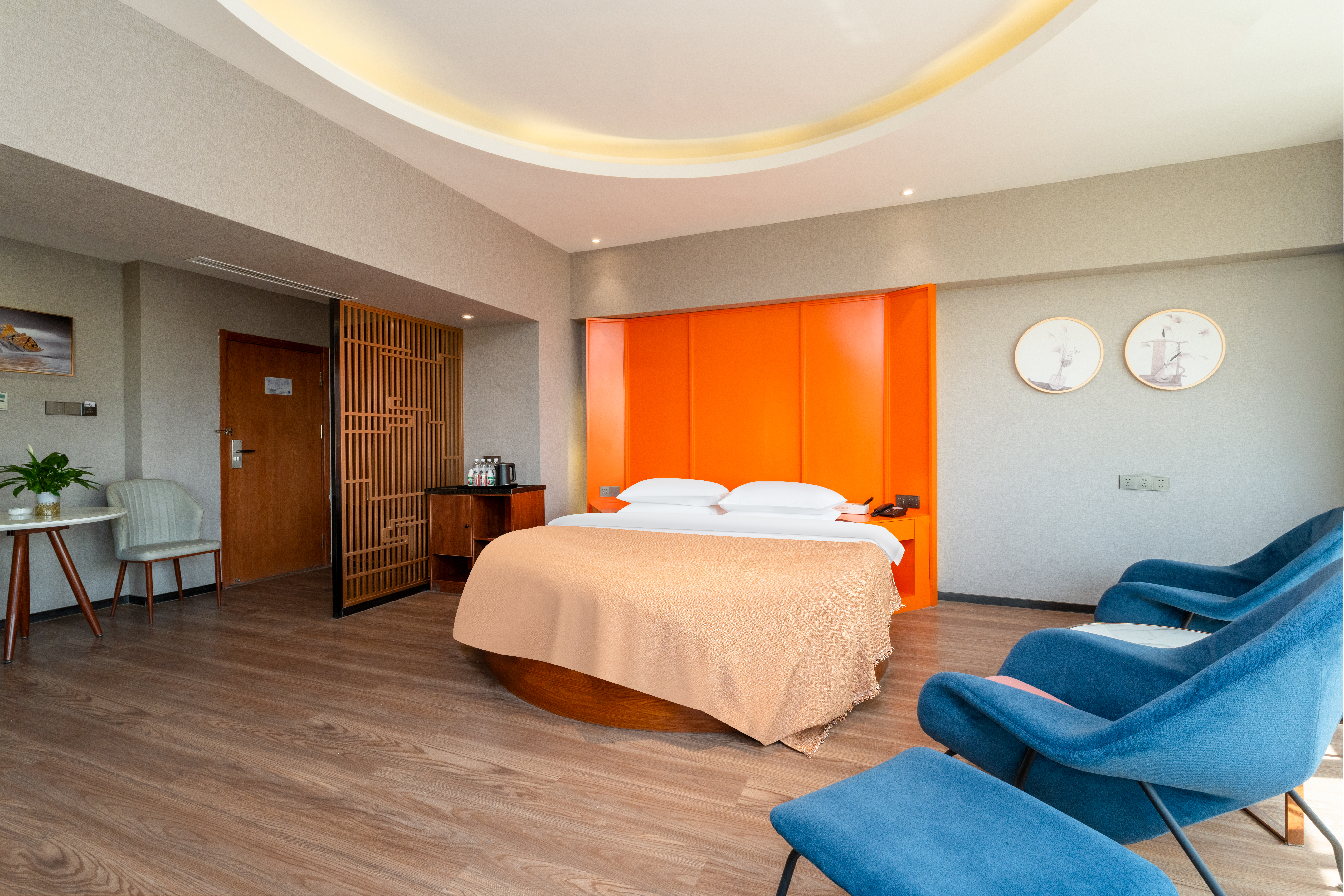躺平治癒圆床房【深睡枕+小冰箱+加湿器】