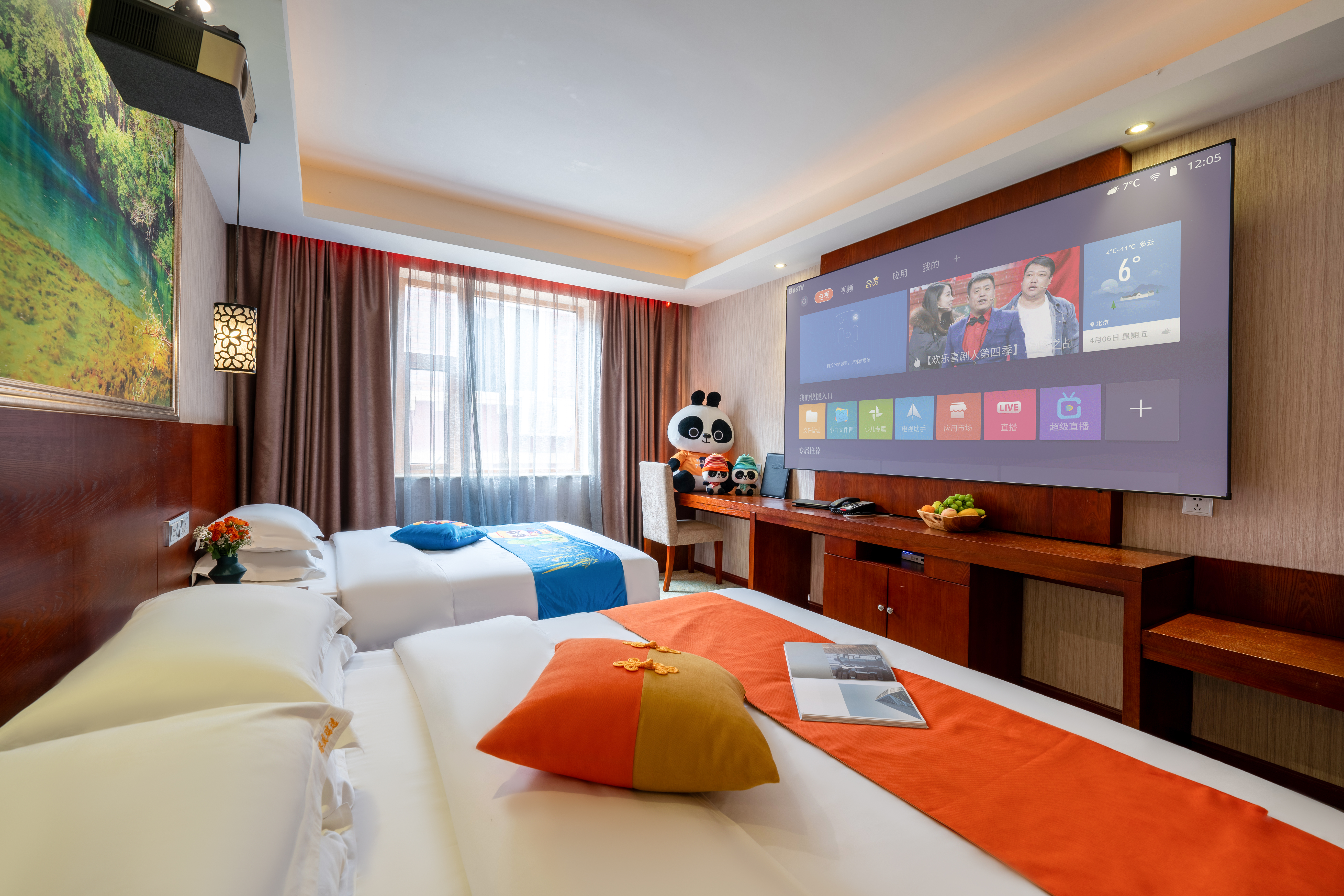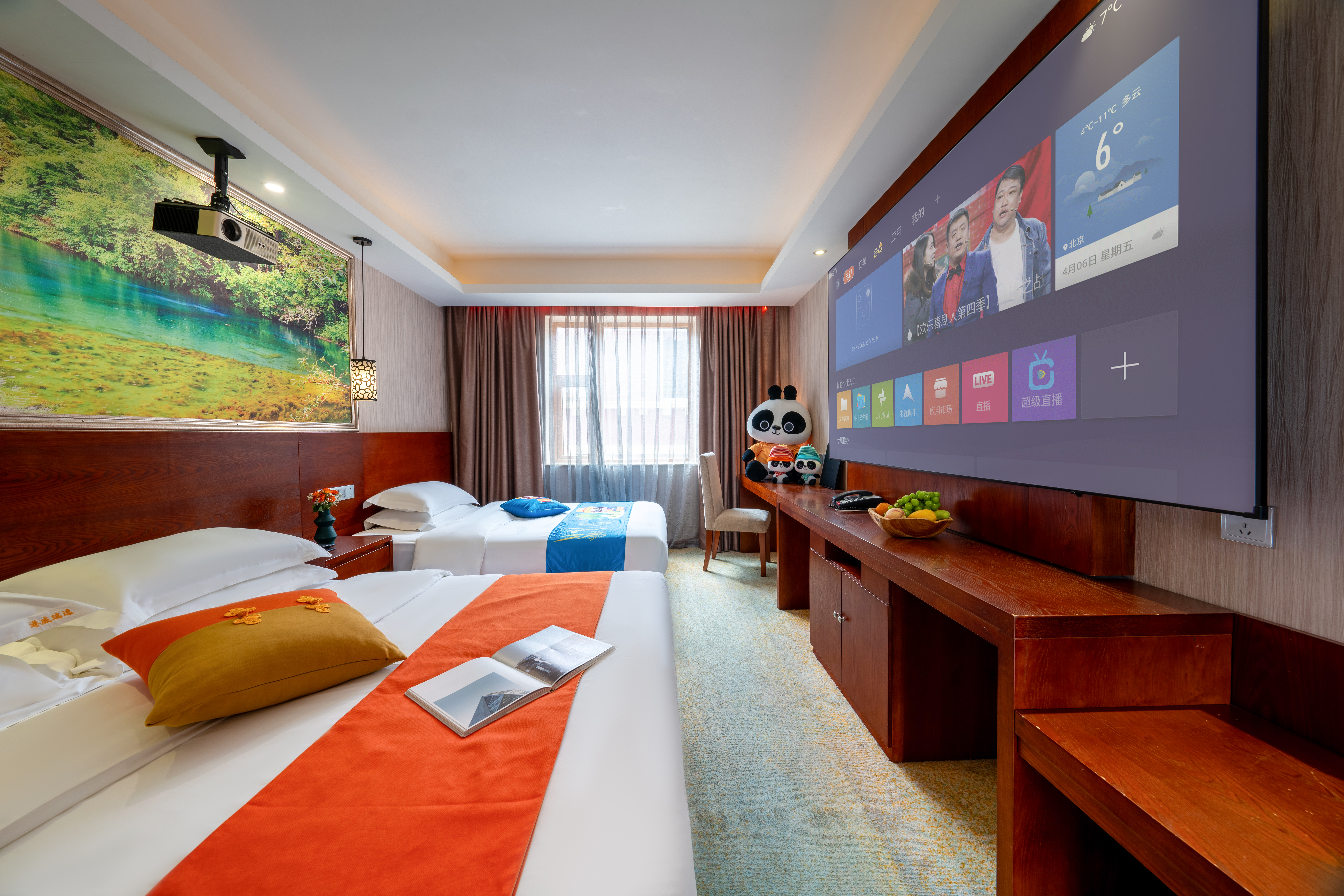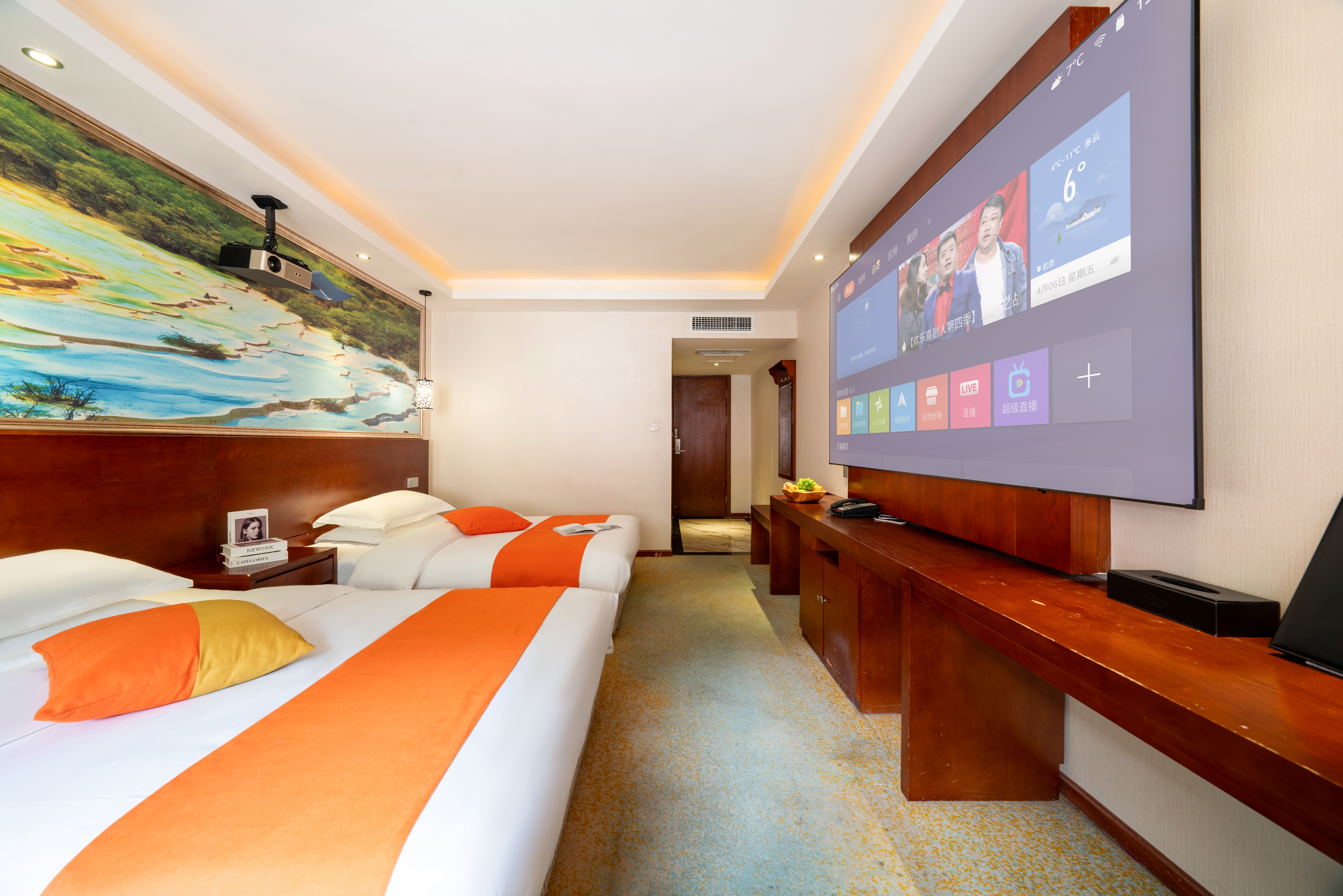 Gangwei 100-Inch Giant Screen Audio-Visual Twin Room With Tencent VIP Hd Movie Access