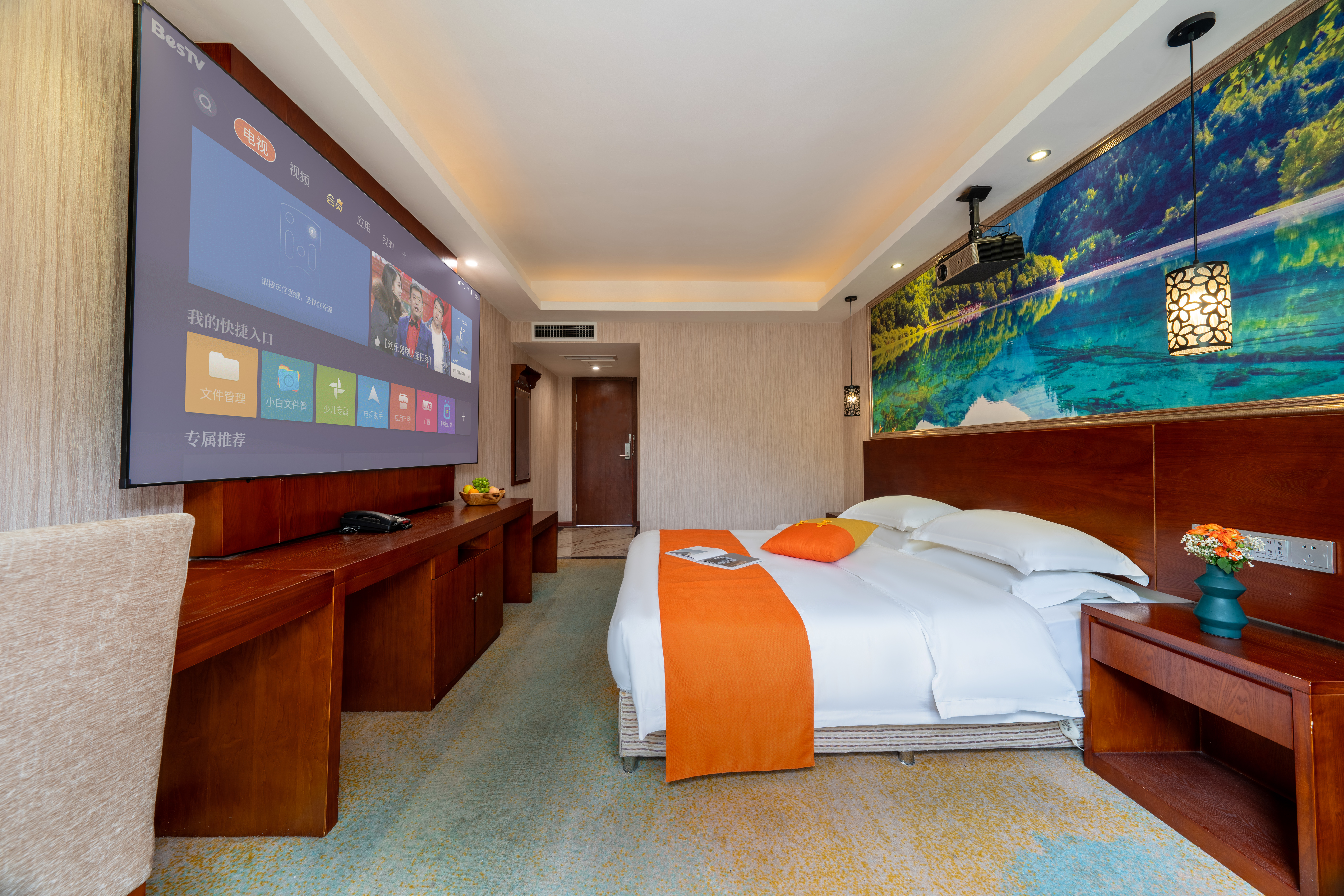 Gangwei 100-Inch Giant Screen Audio-Visual Double Bed Room With Tencent VIP Hd Movie Access