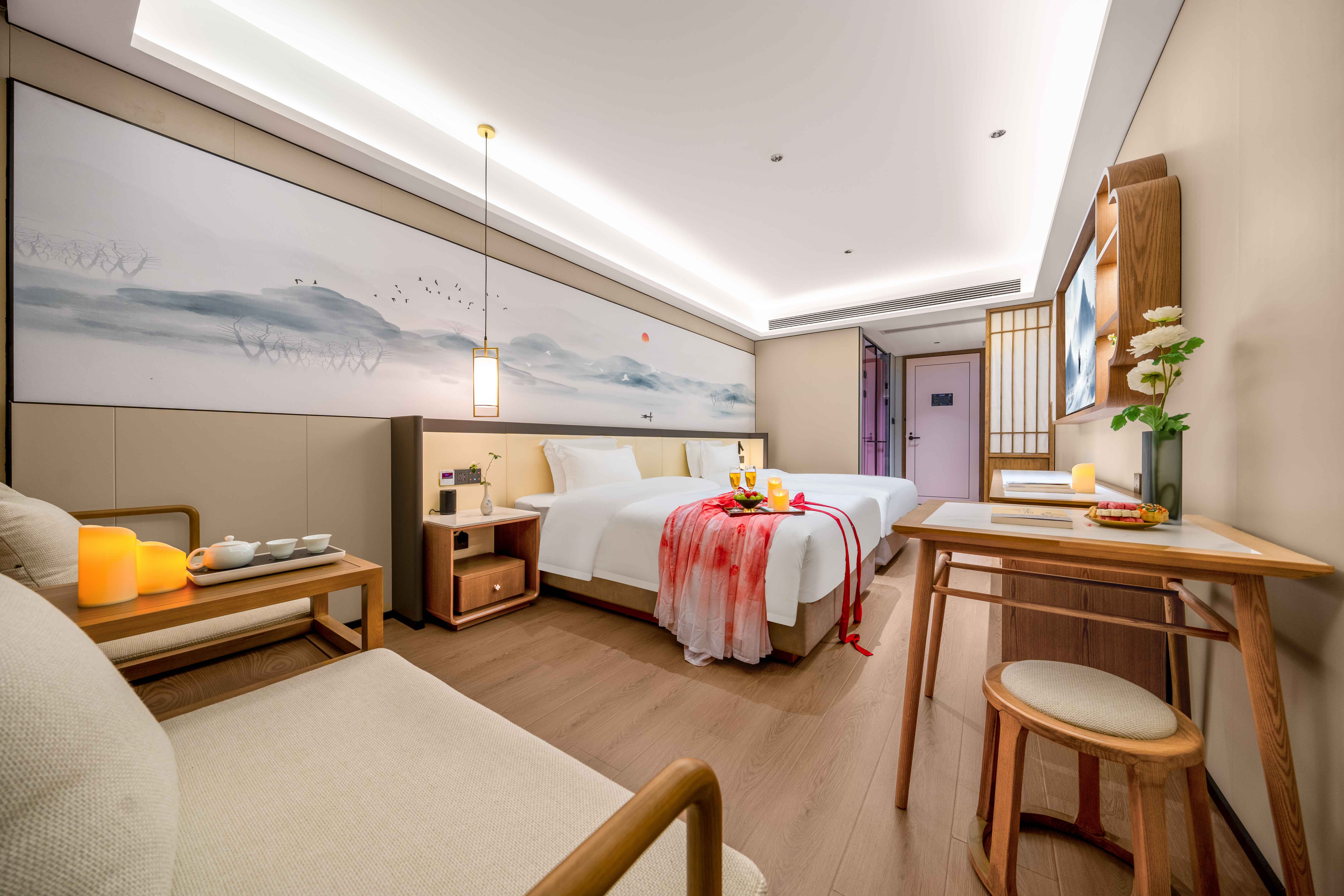 雅緻·汴水聽風雙床房丨臨窗宋榻+茶承茶具+乾濕分離