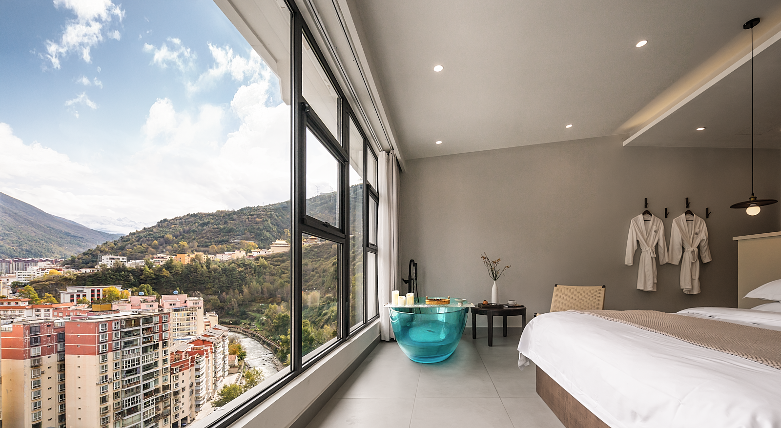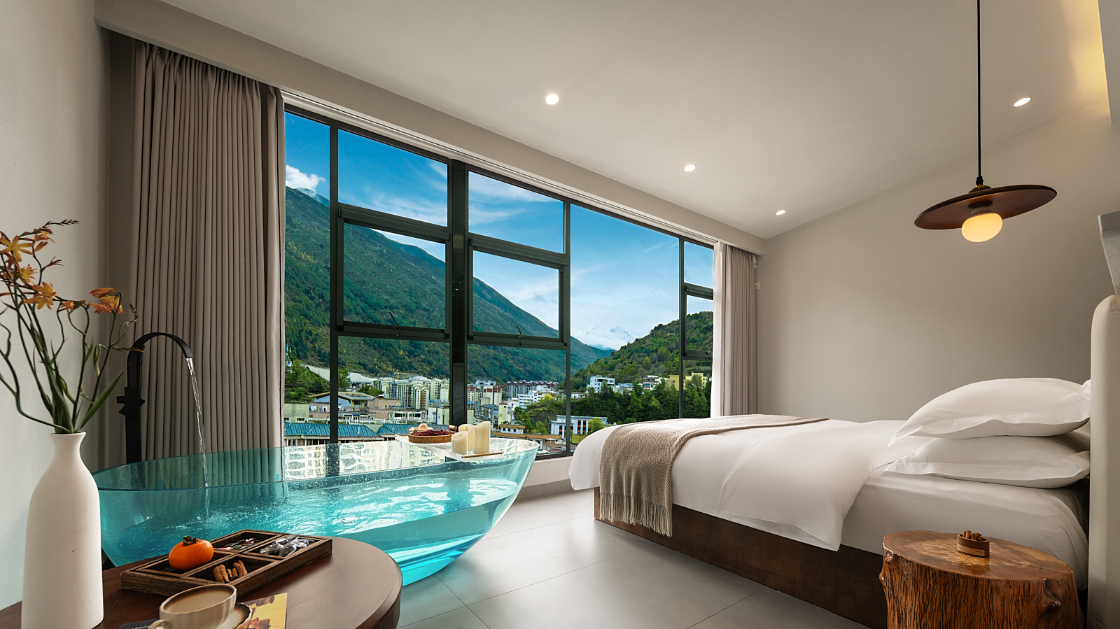 瞰羣青 ·观雪山私汤大床房|绝美观景|全屋地暖|深泡浴缸|可供氧