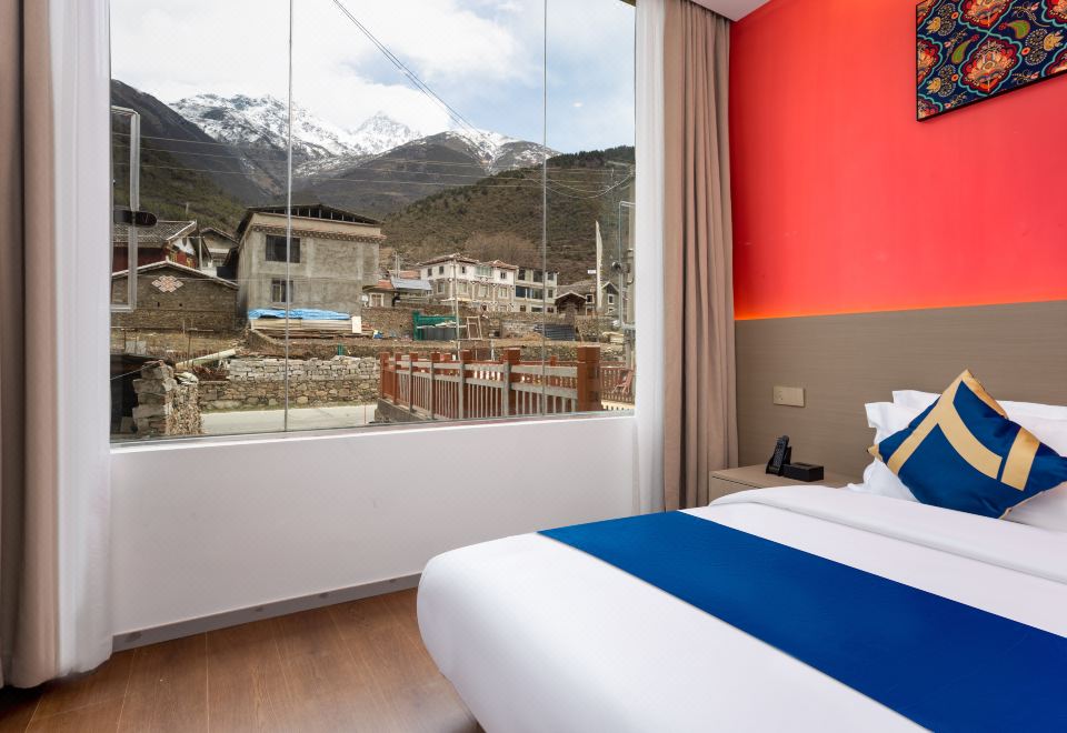 藏春意·绿意入帘大床房【暖气+生态温泉+雪山美景】
