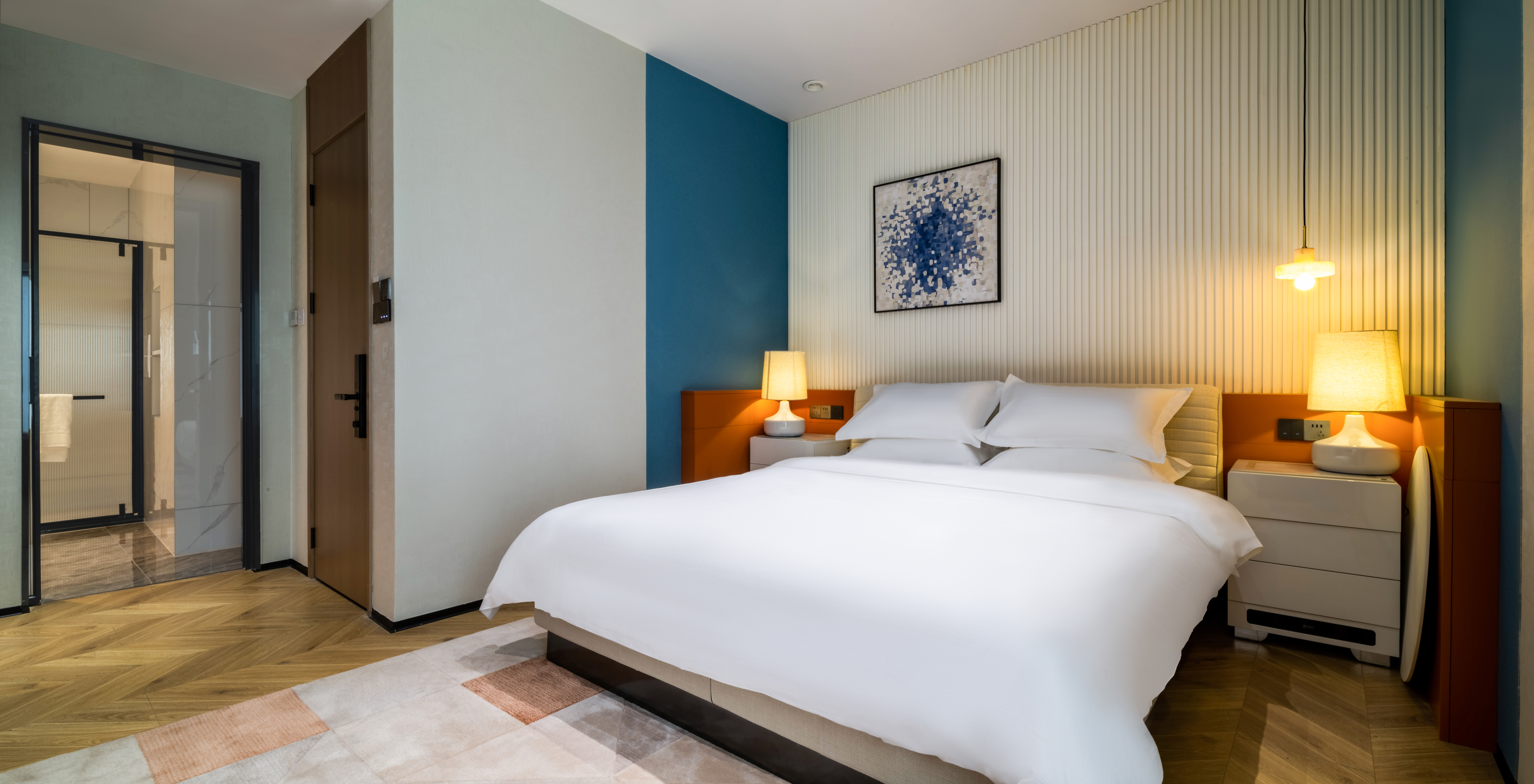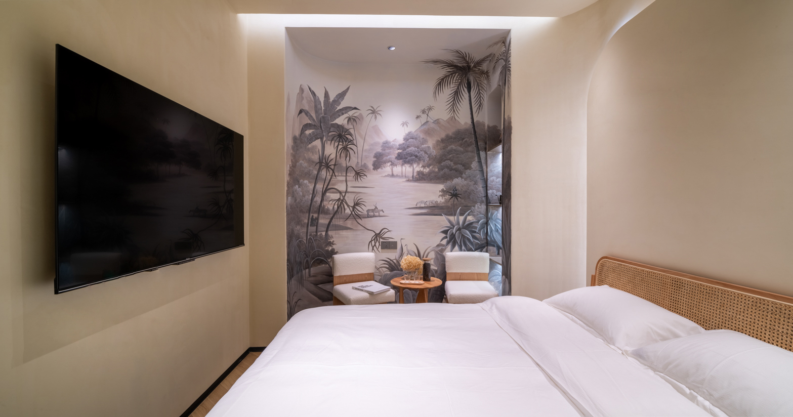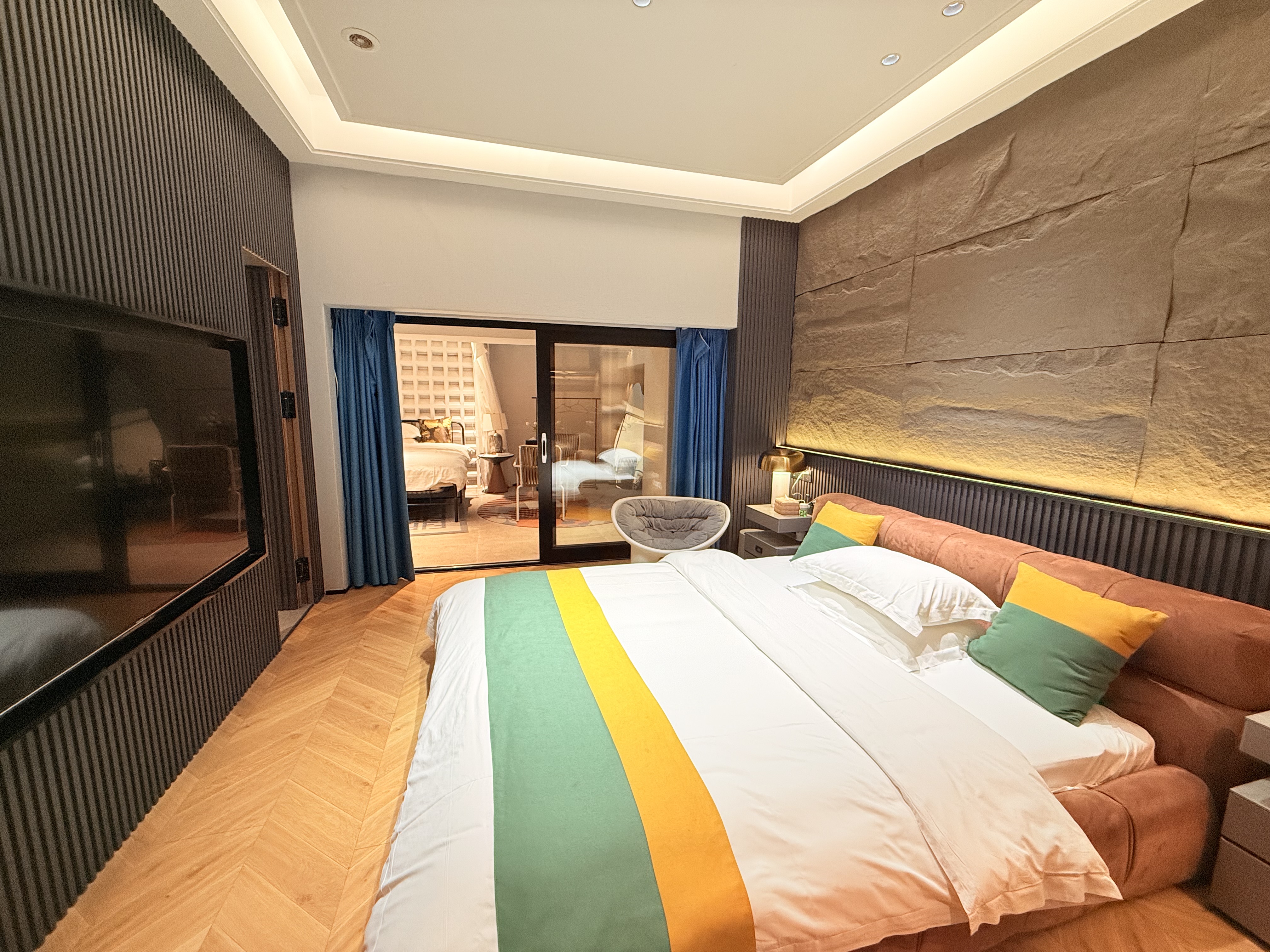 黄波旁手绘壁画大床房(软水恒温+零压床垫+语音智能)