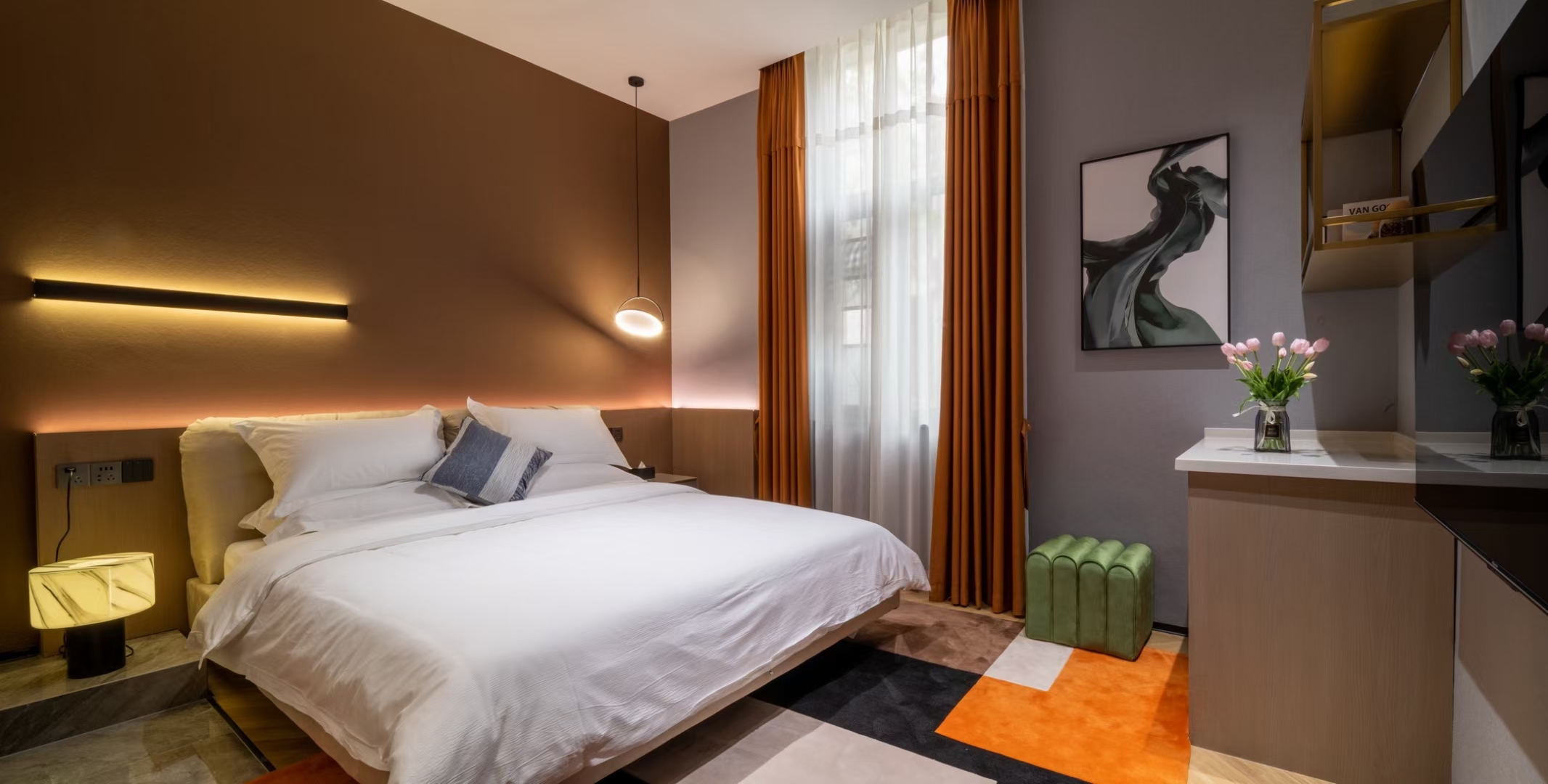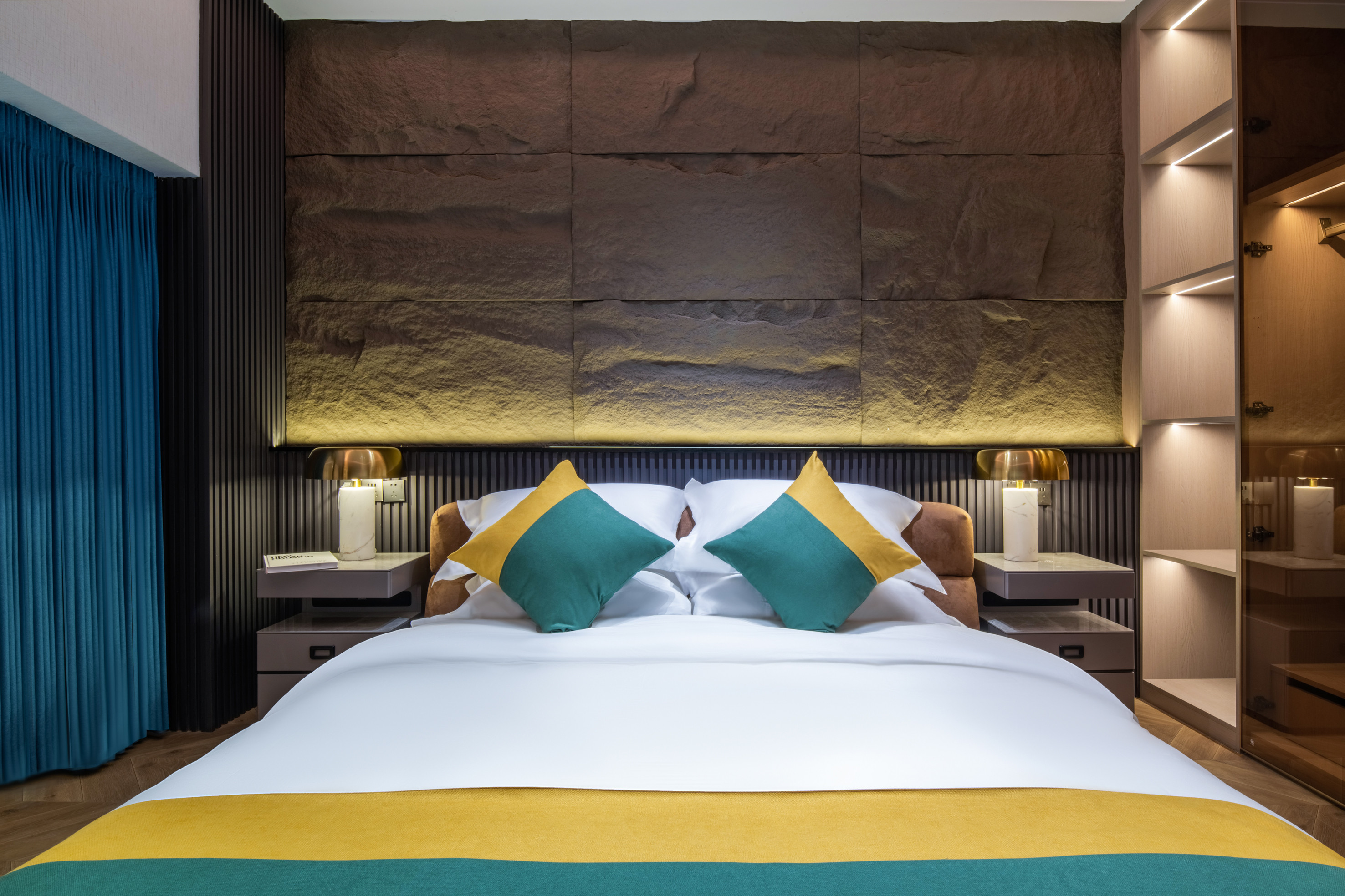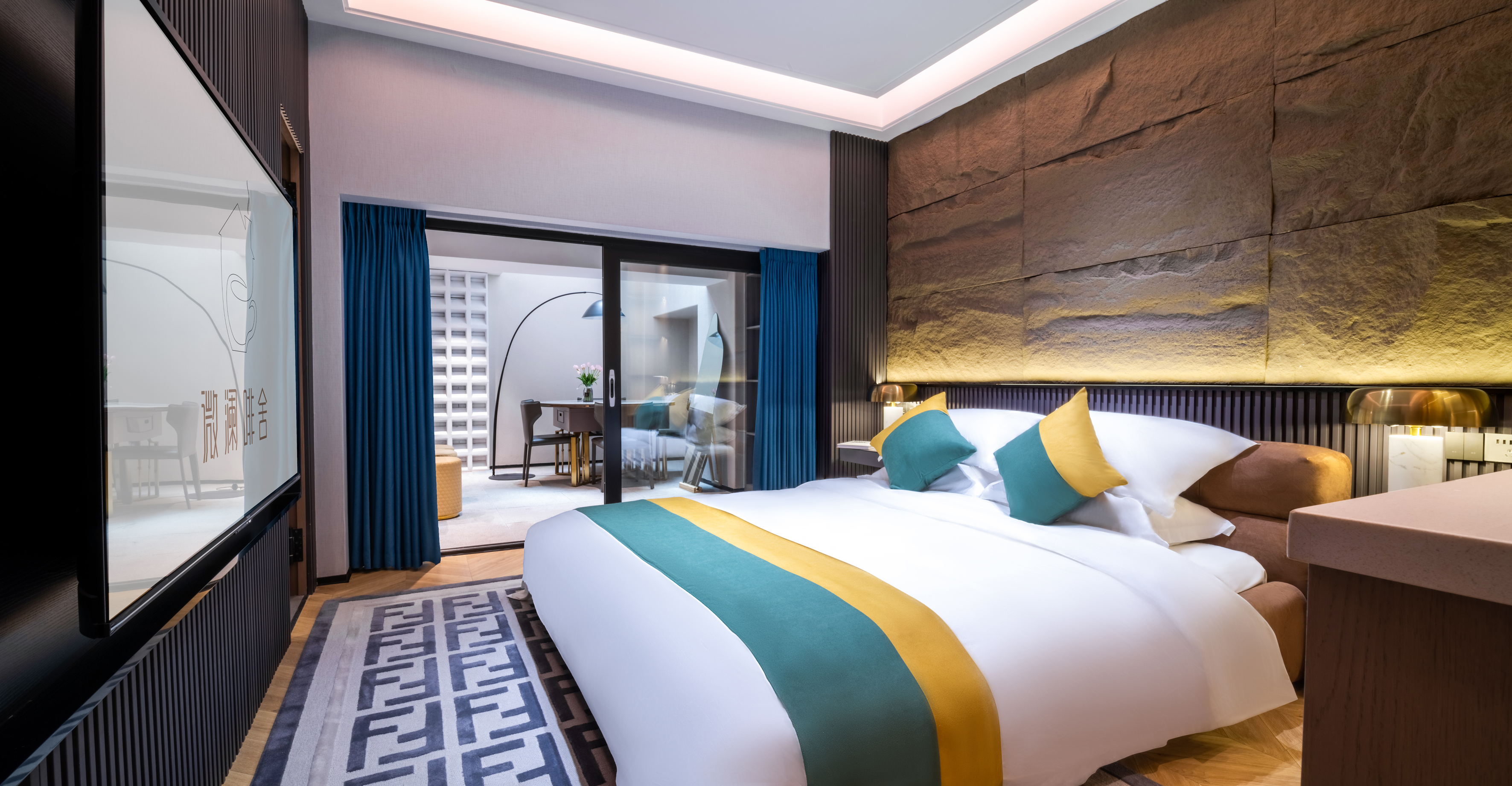 黄波旁手绘壁画大床房(软水恒温+零压床垫+语音智能)