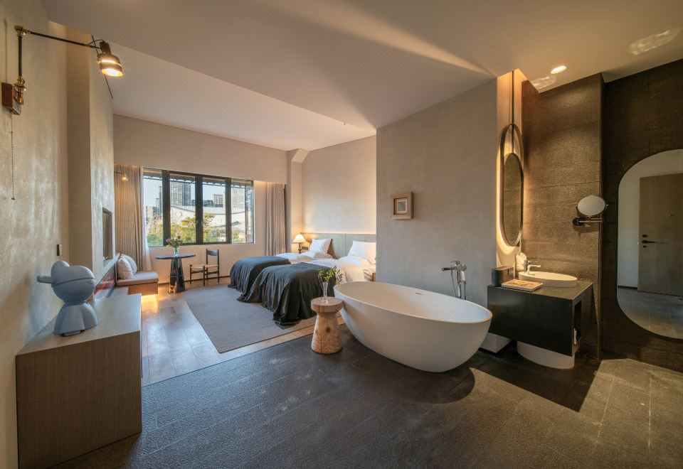 将进酒街景河景浴缸双床房