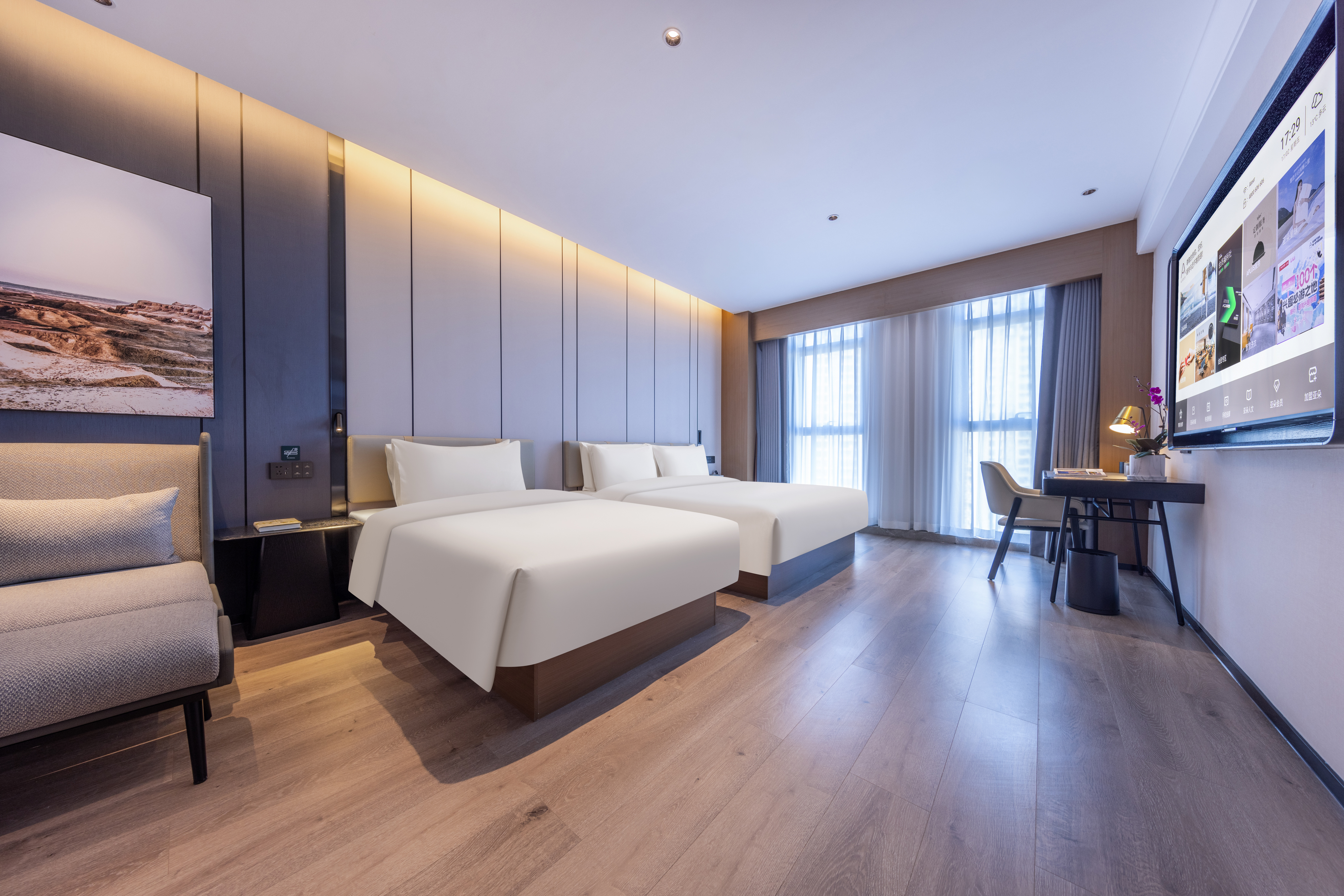 行政城景双床房(普兰特床垫+65寸投屏电视)