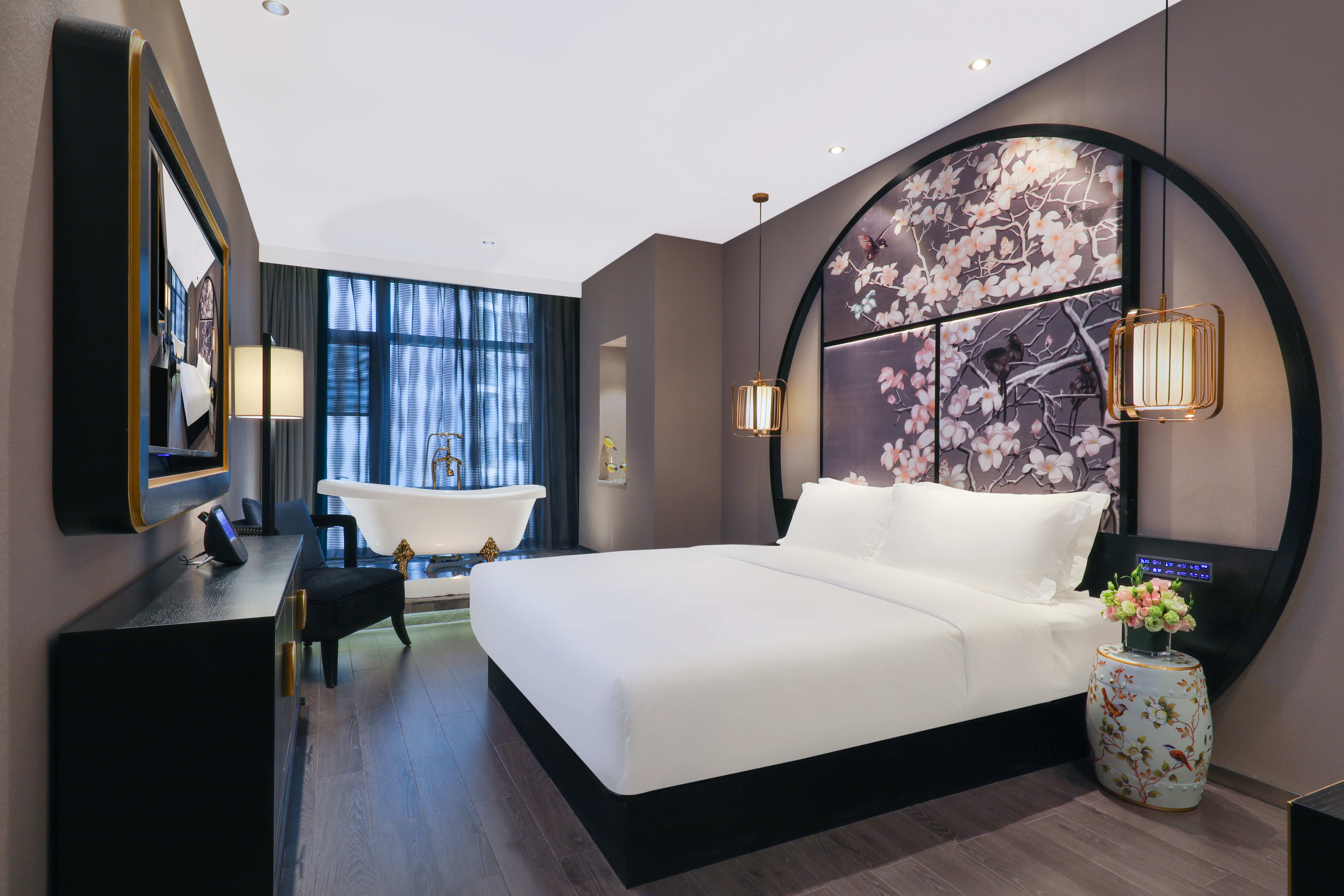 设计师大床房(语音客控+小冰箱+电动窗帘+保险柜)