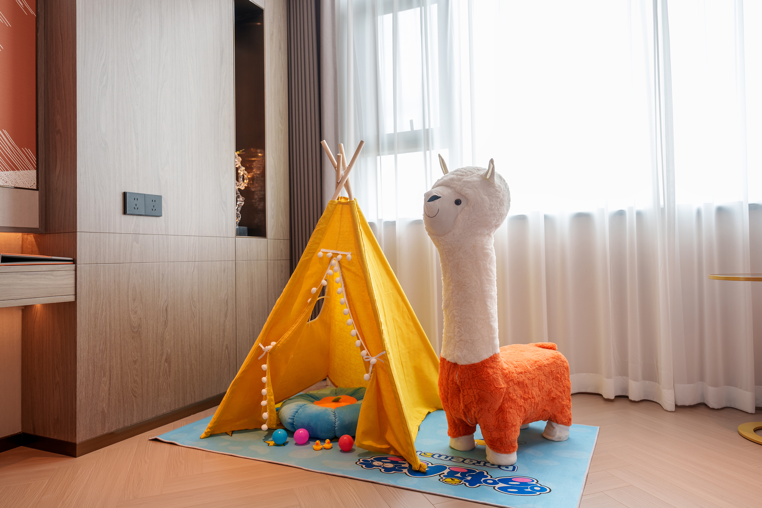 和悦家庭亲子房「帐篷玩偶区+休闲沙发+小童洗护」