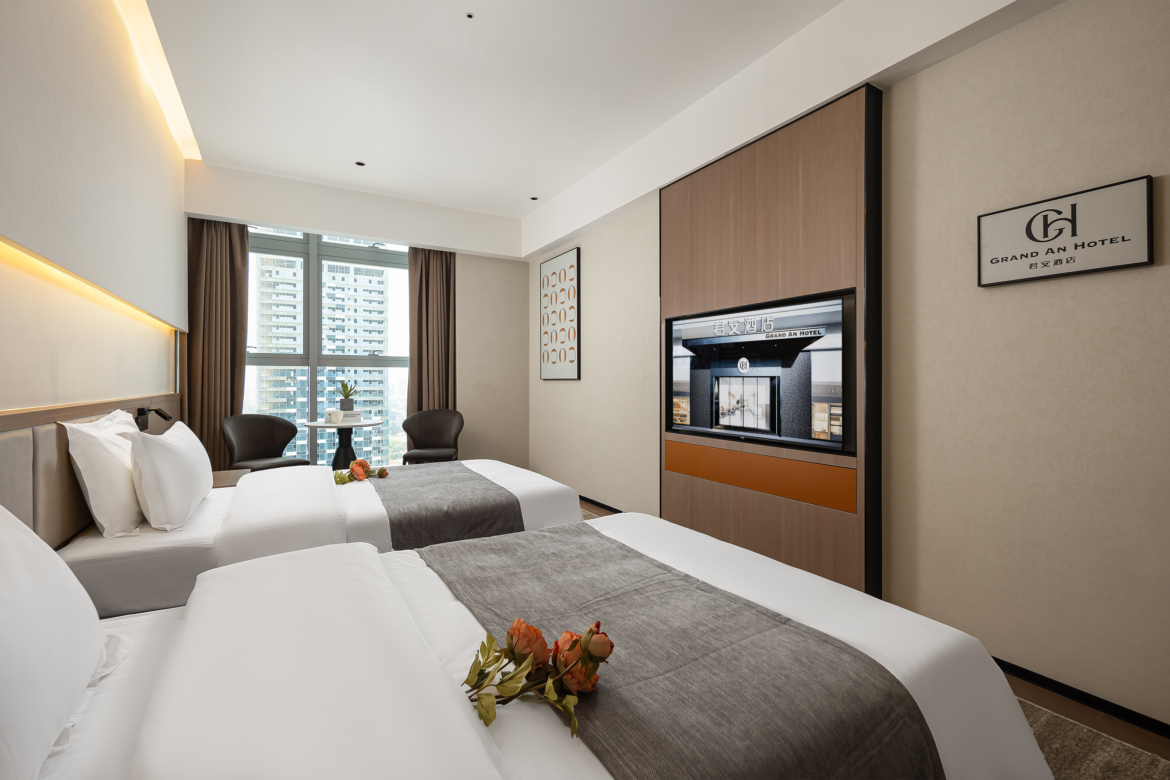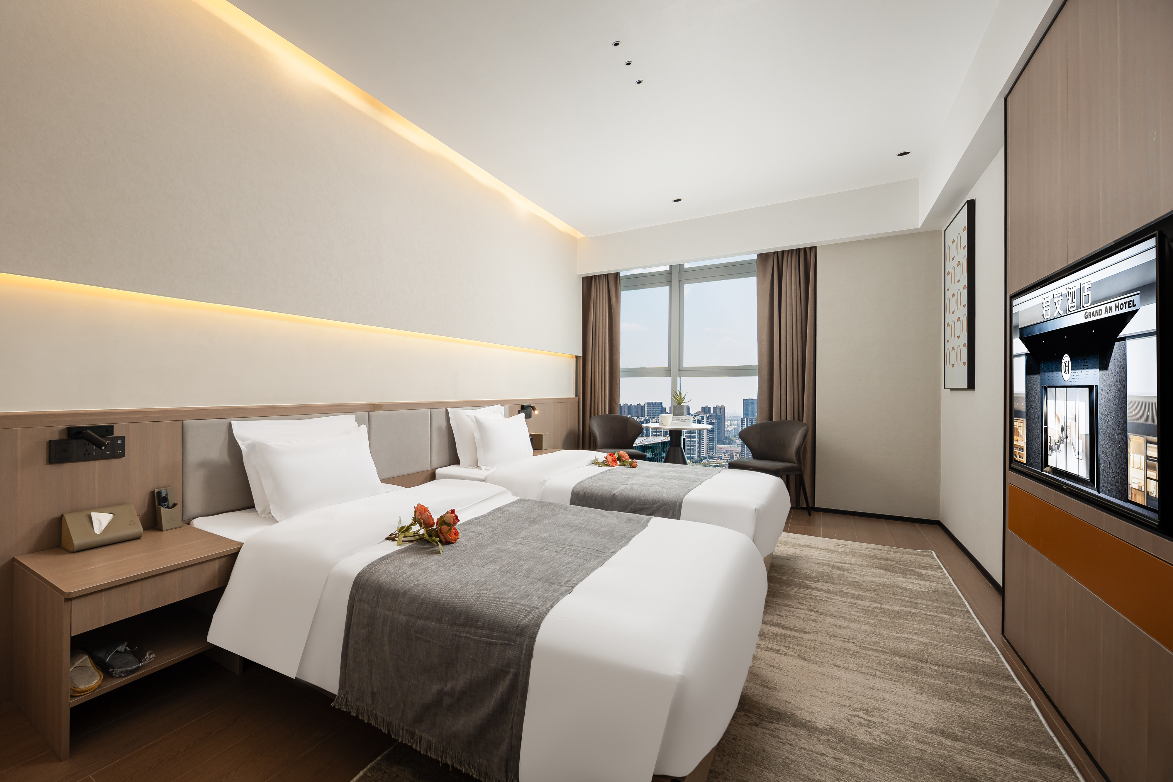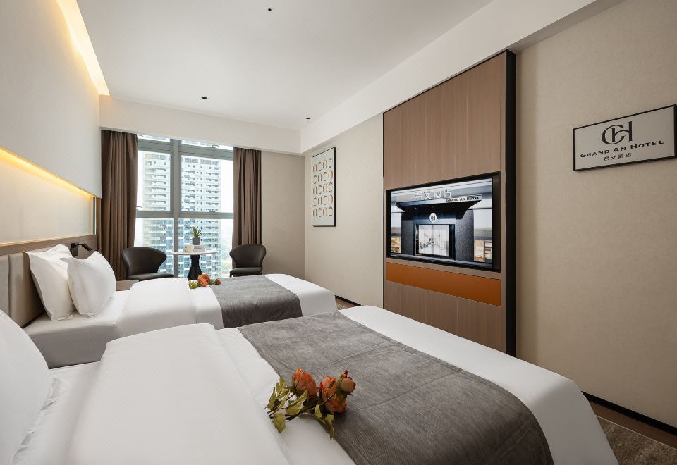 小度AI|高级景观双床房【智能客控+高空外景】
