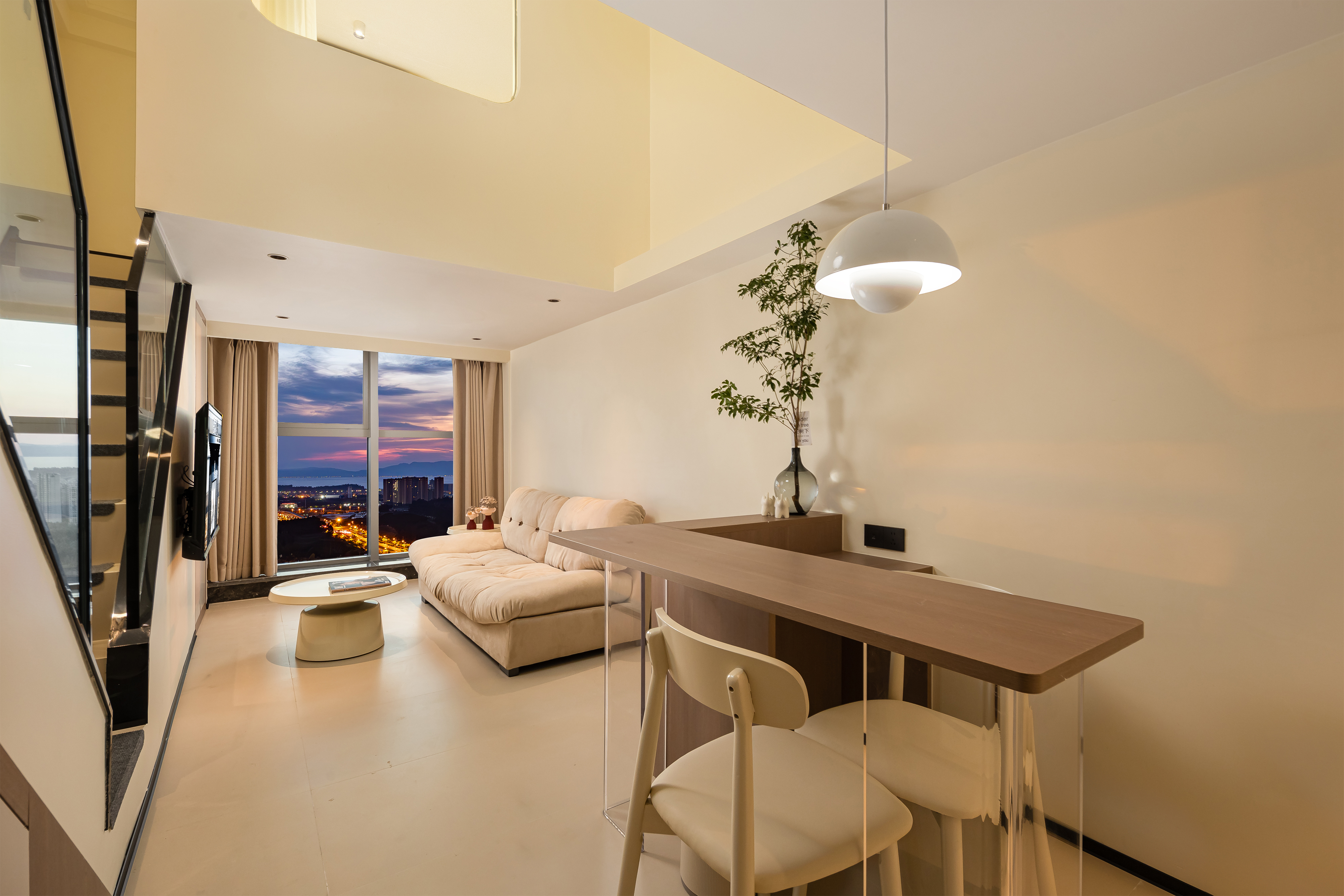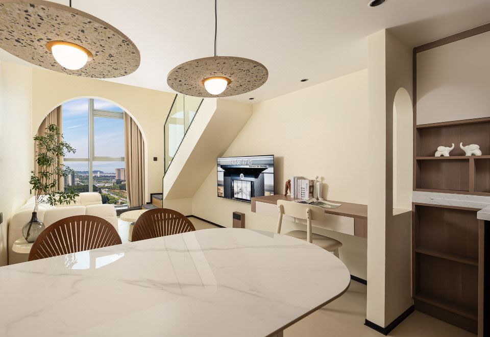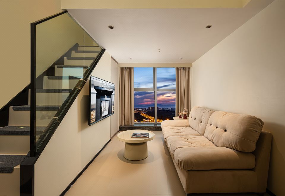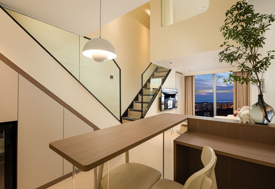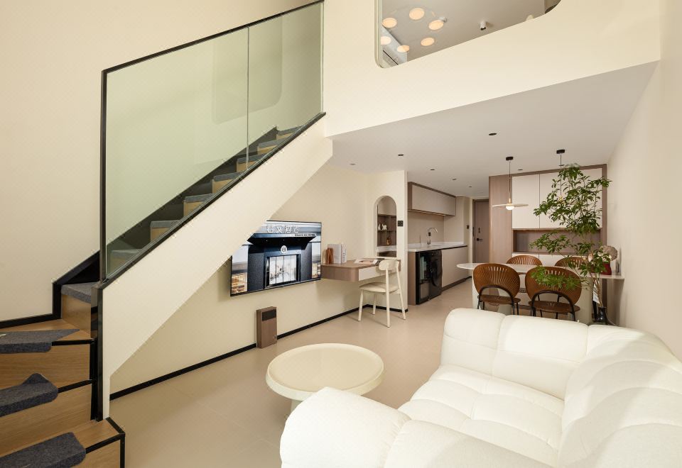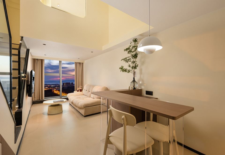 小度AI|拾趣LOFT复式大床房【智能洗衣机+保鲜冰箱+厨房+懒人沙发+智能客控+高空外景+眺望滇池】