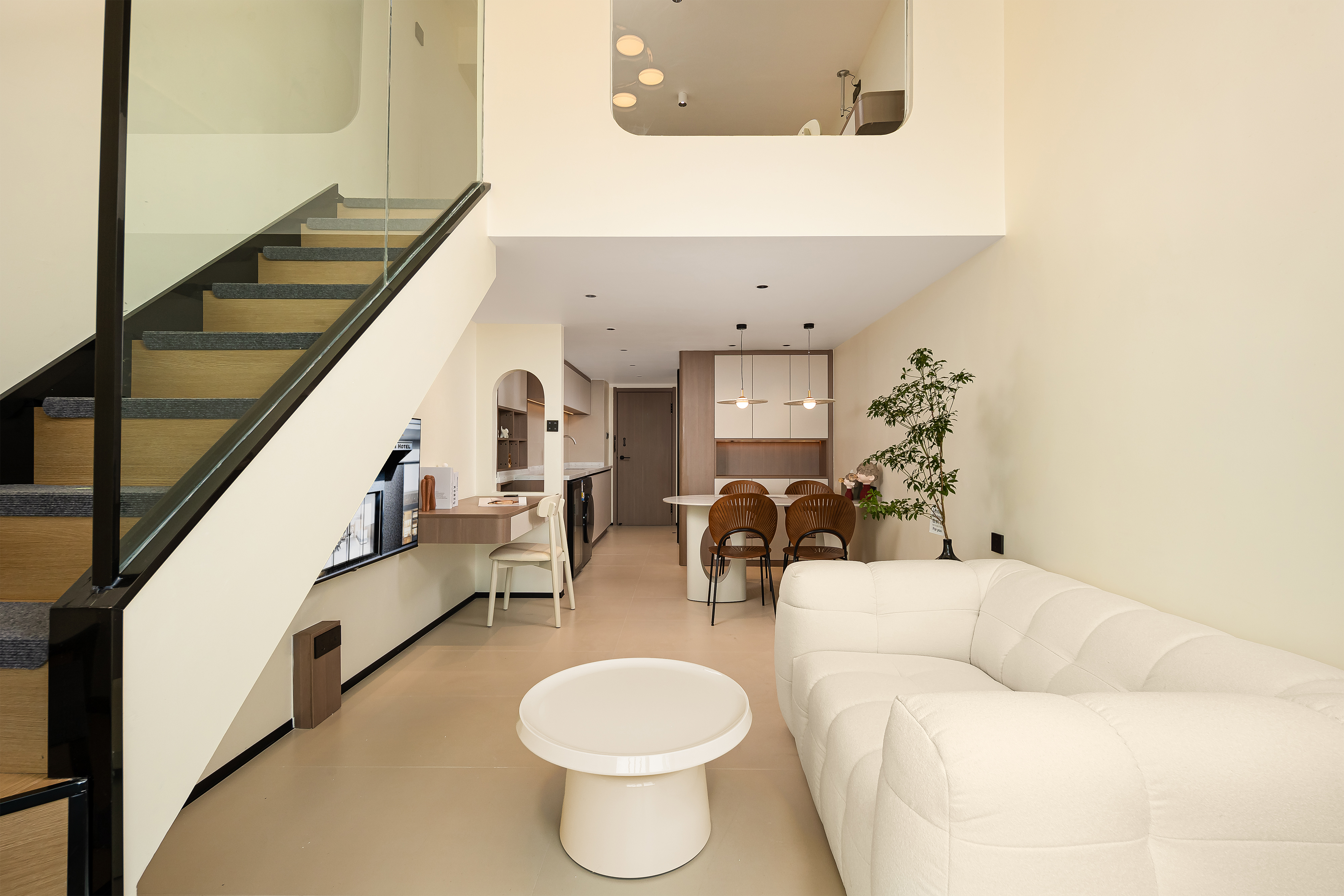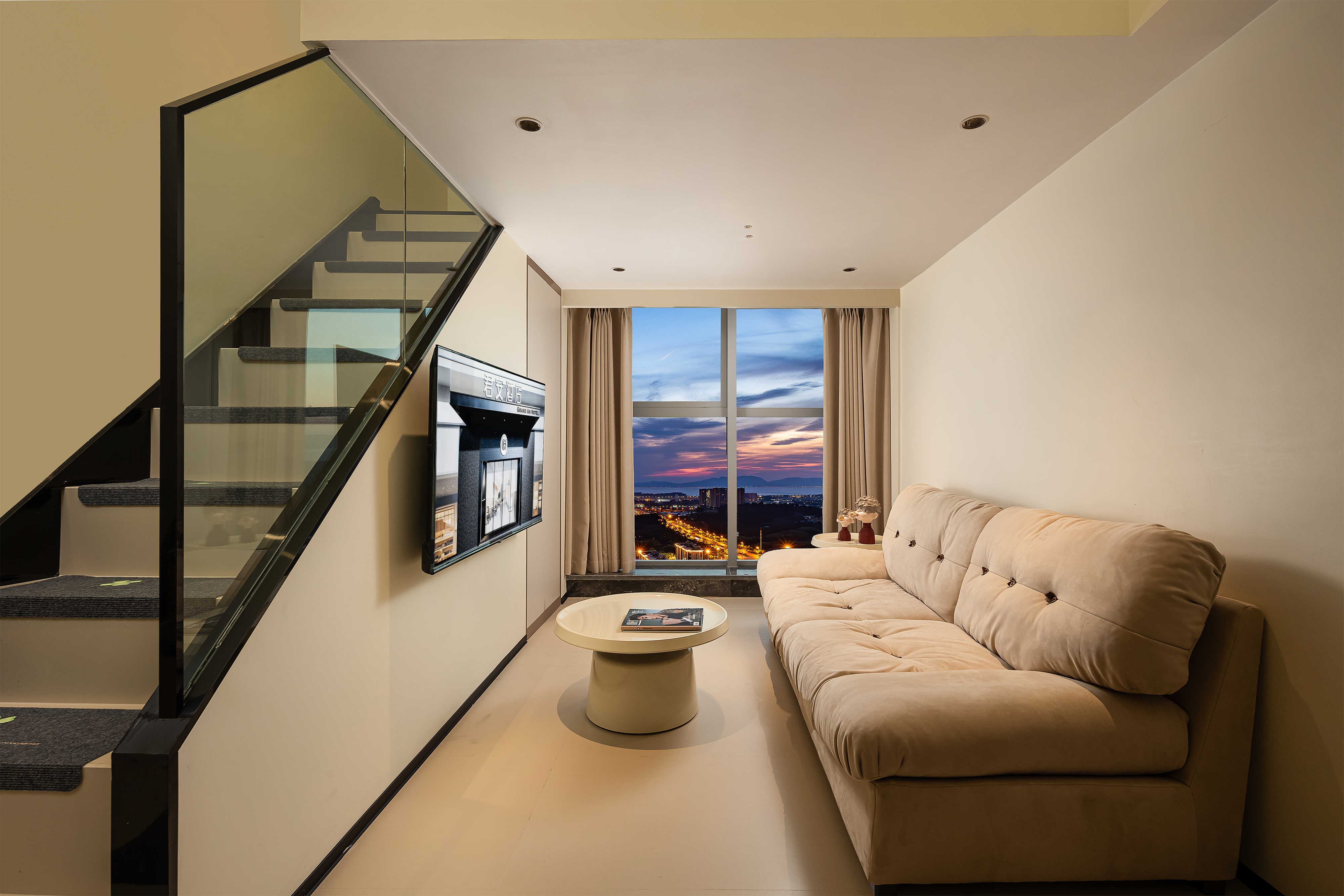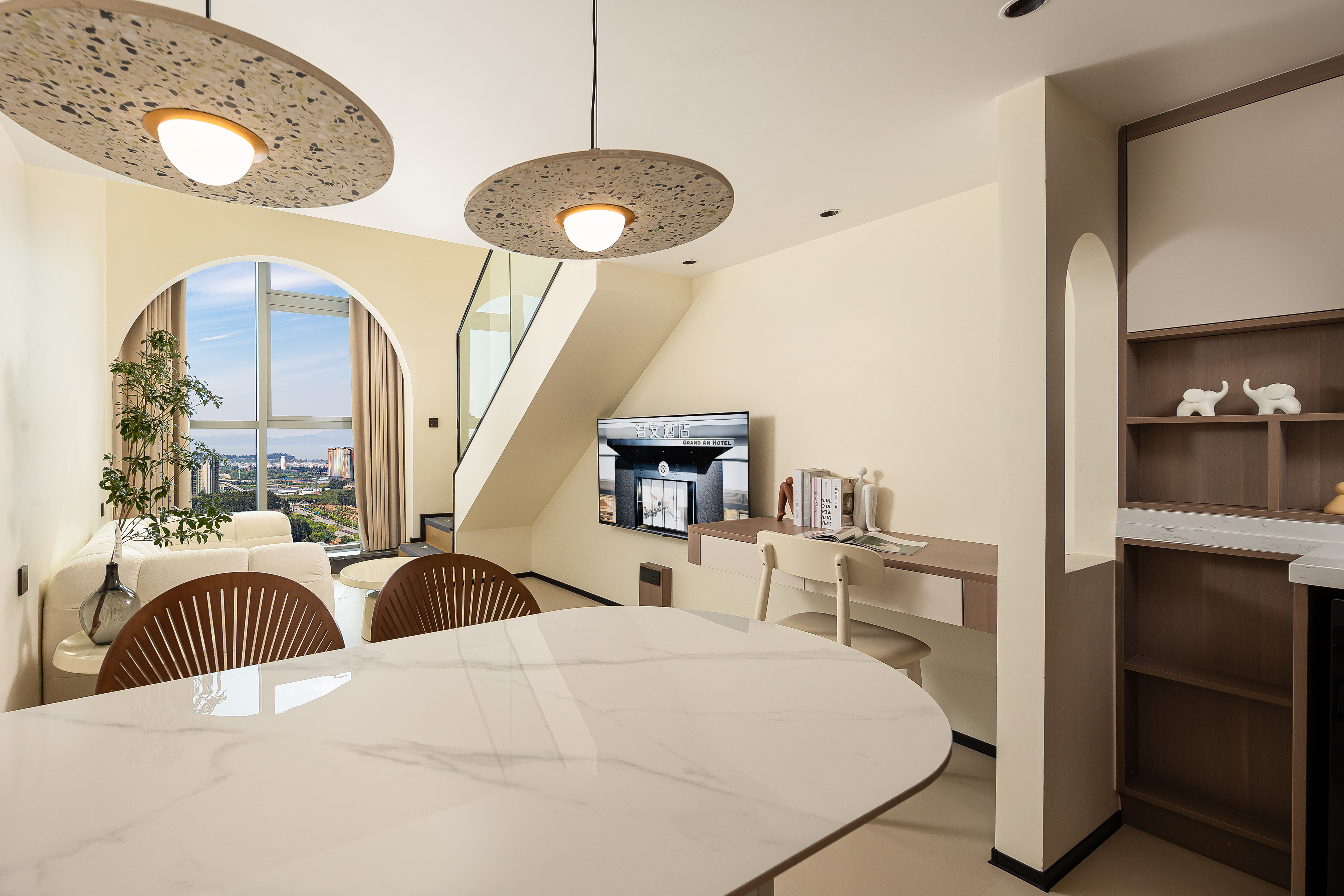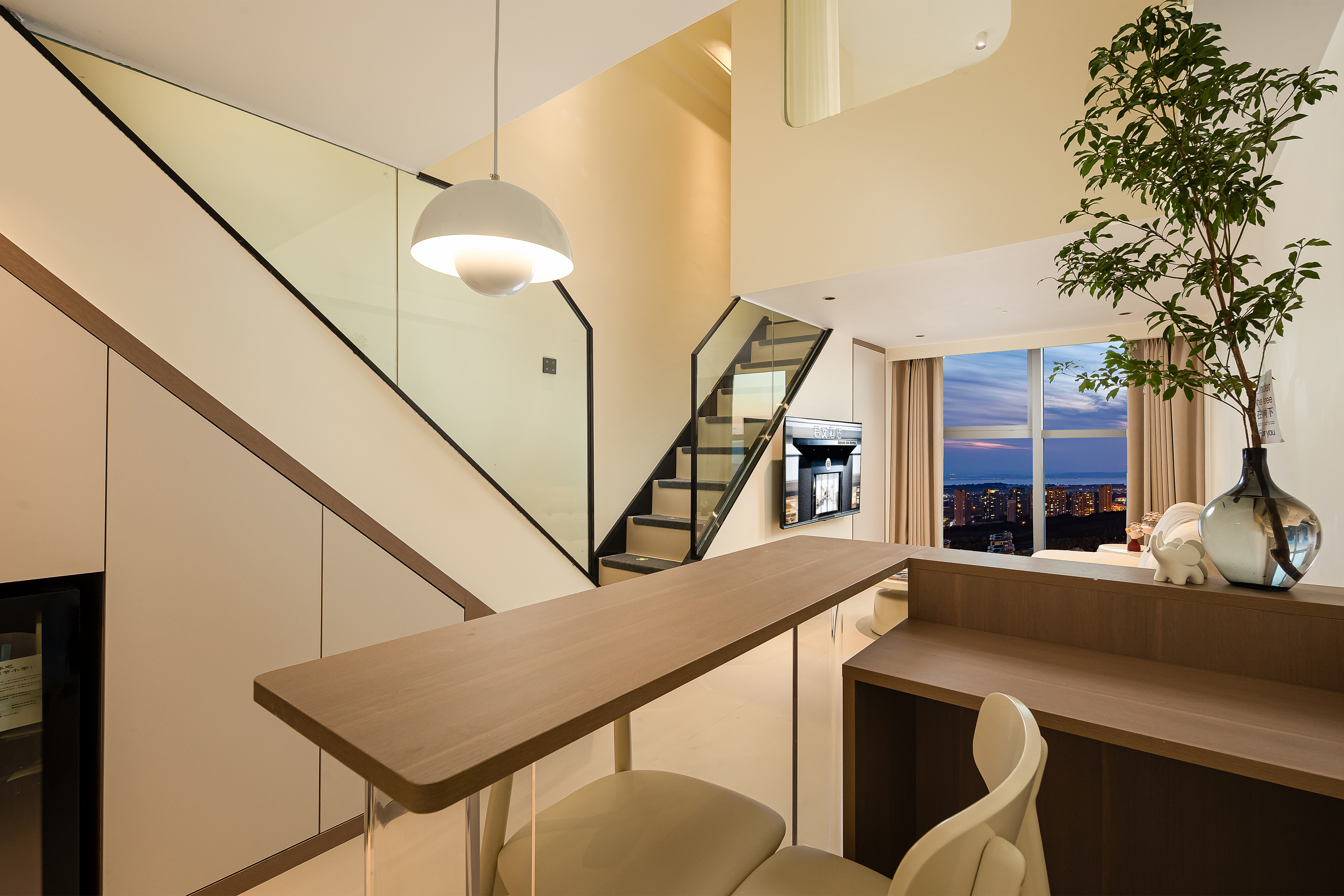 小度AI|拾趣LOFT复式大床房【智能洗衣机+保鲜冰箱+厨房+懒人沙发+智能客控+高空外景+眺望滇池】