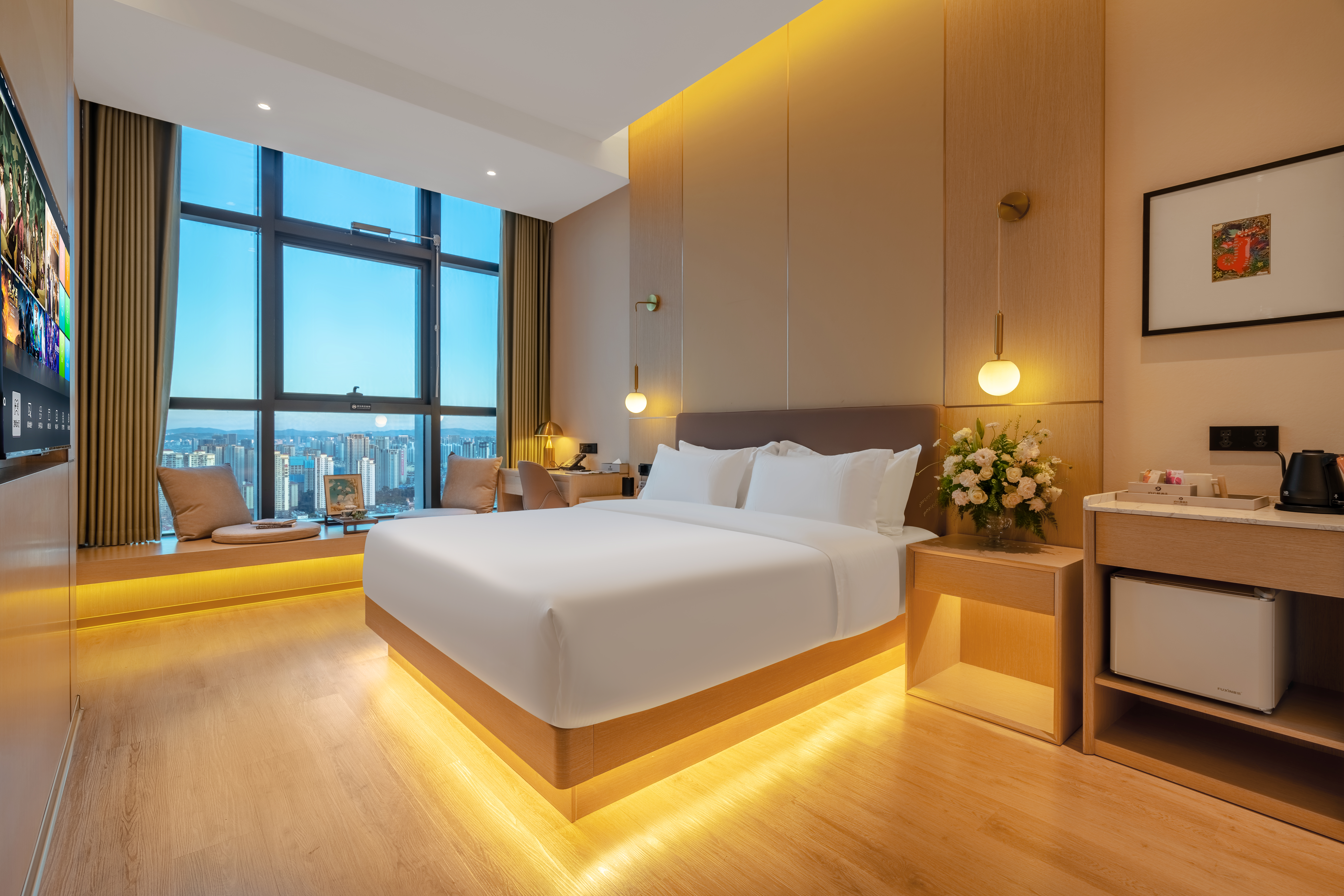 云栖·城景行政大床房(全屋智能+零压床垫+高空夜景+4.5米层高挑高空间设计)