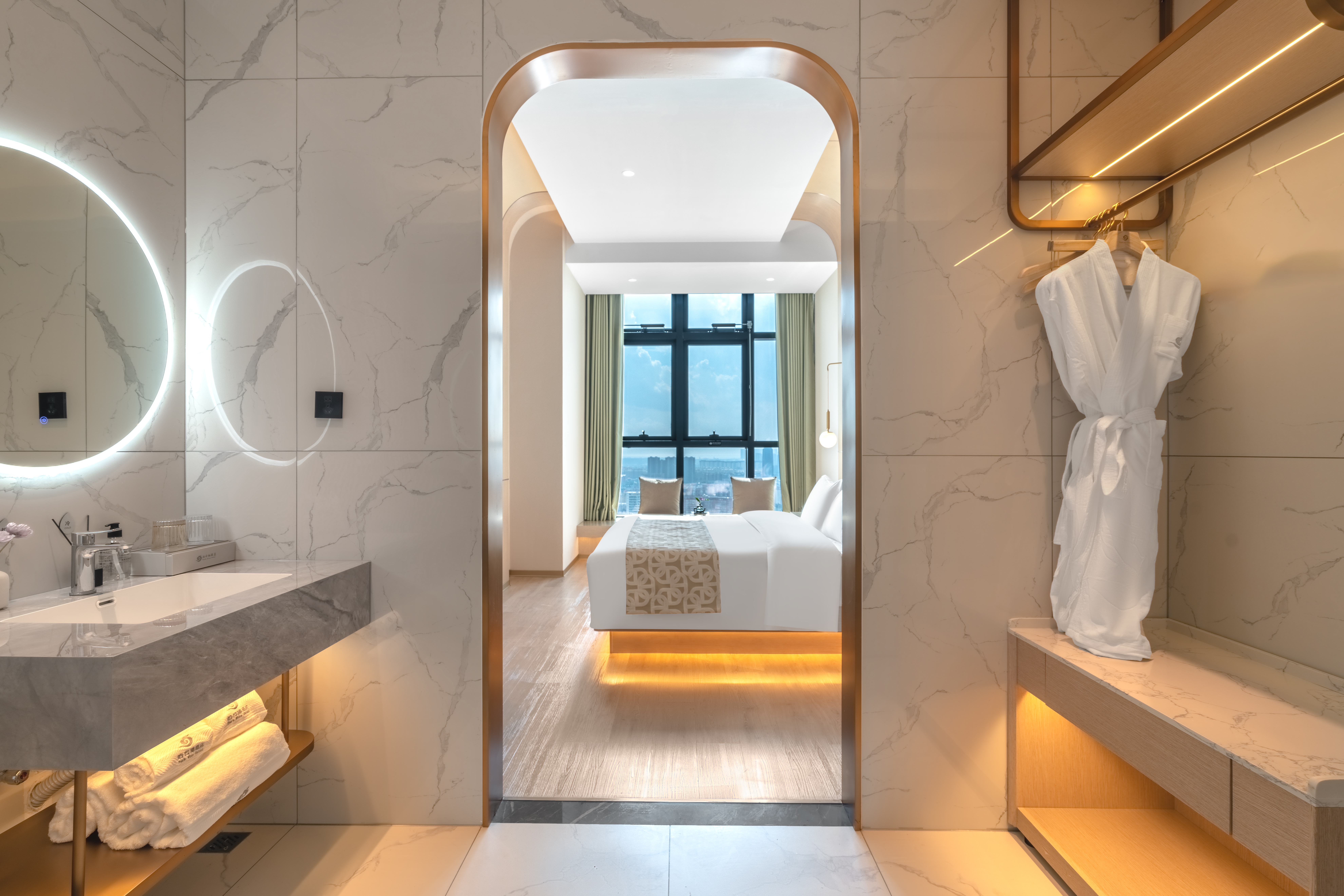 云栖·湖光惠享大床房(全屋智能+零压床垫+高空夜景+4.5米层高挑高空间设计)