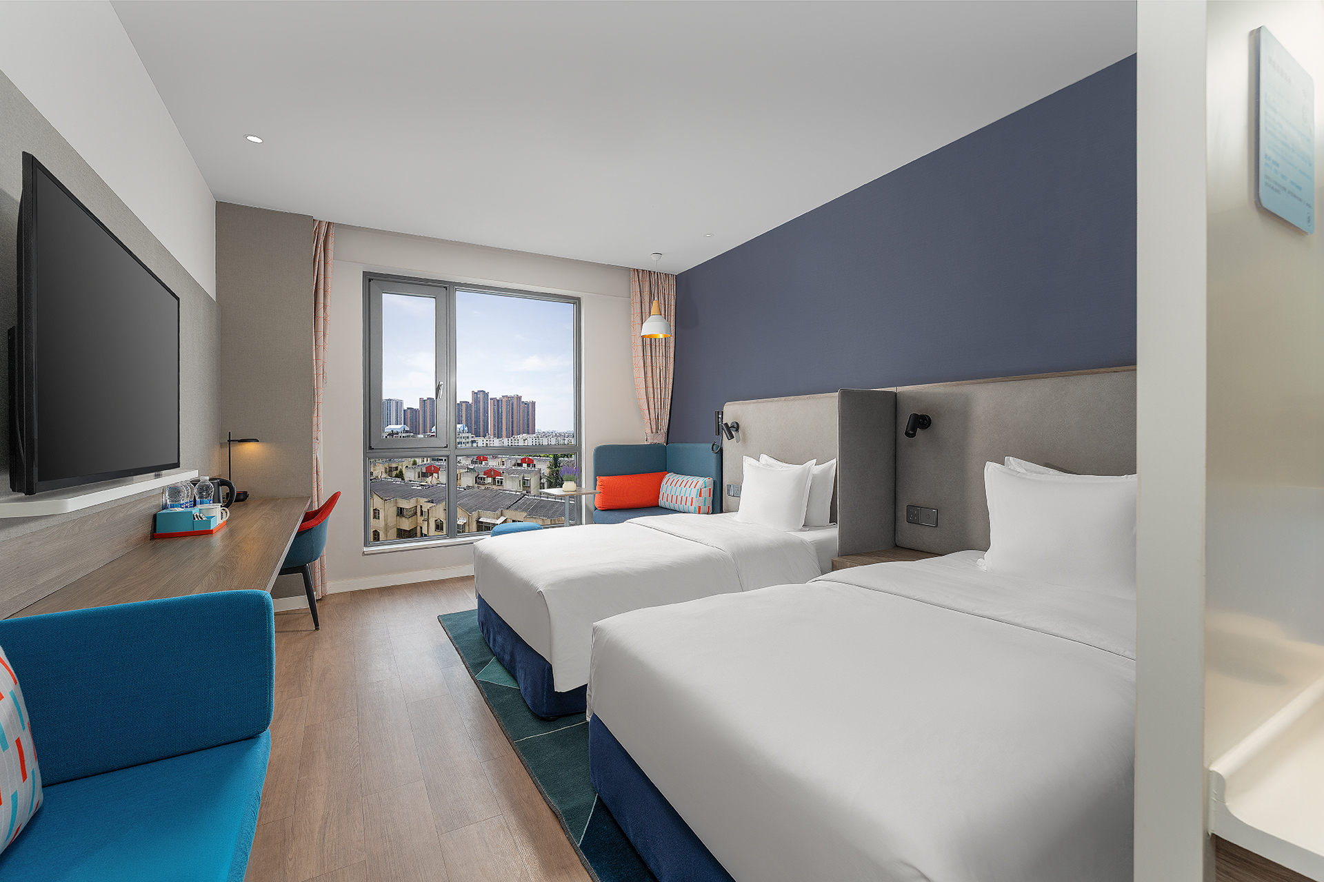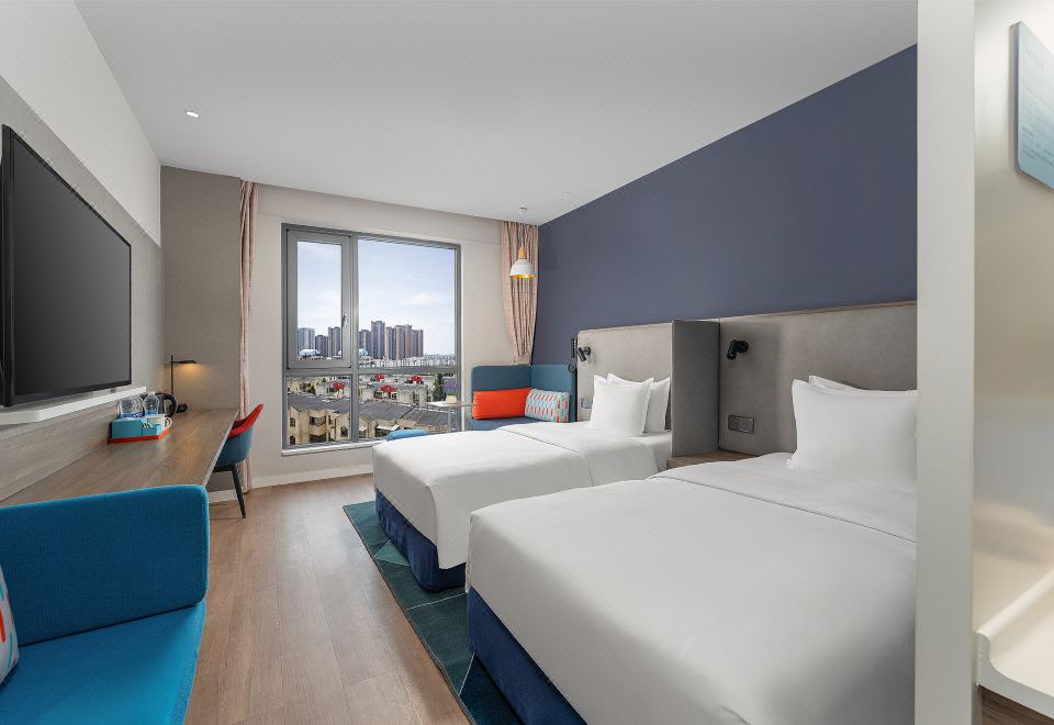 高级城市景观双床房(智能马桶)