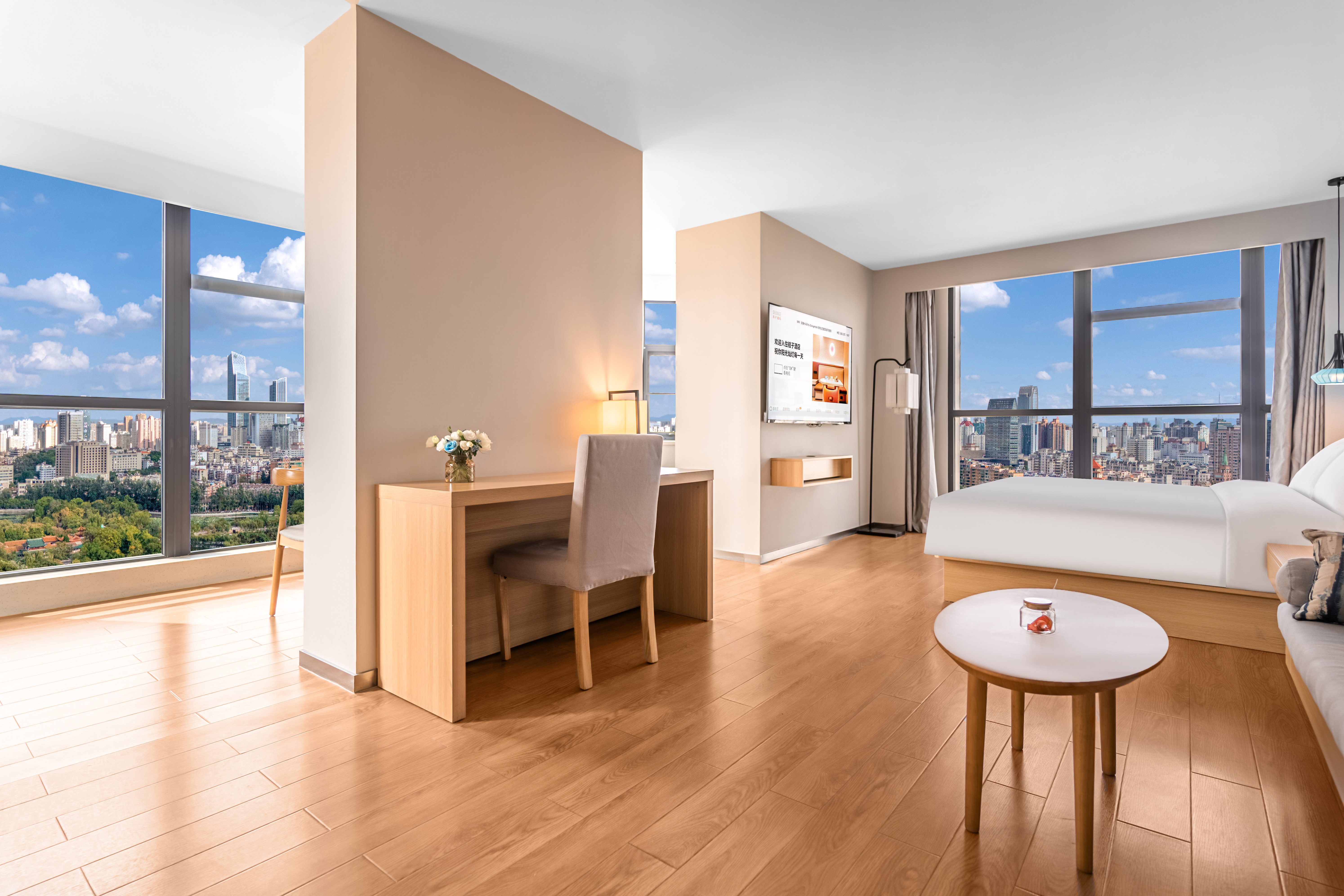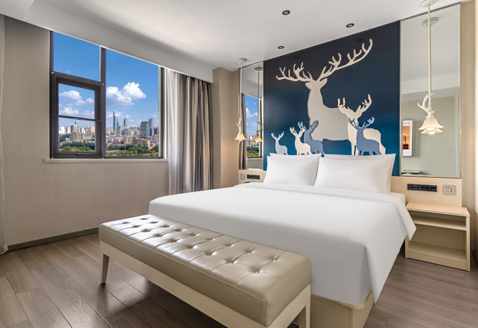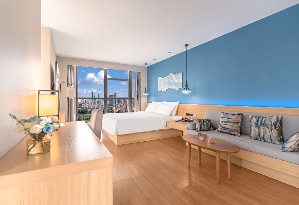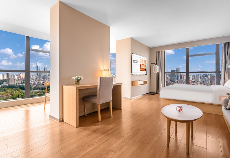 景观套房(金可儿床垫|65寸投屏|城市落地窗景)