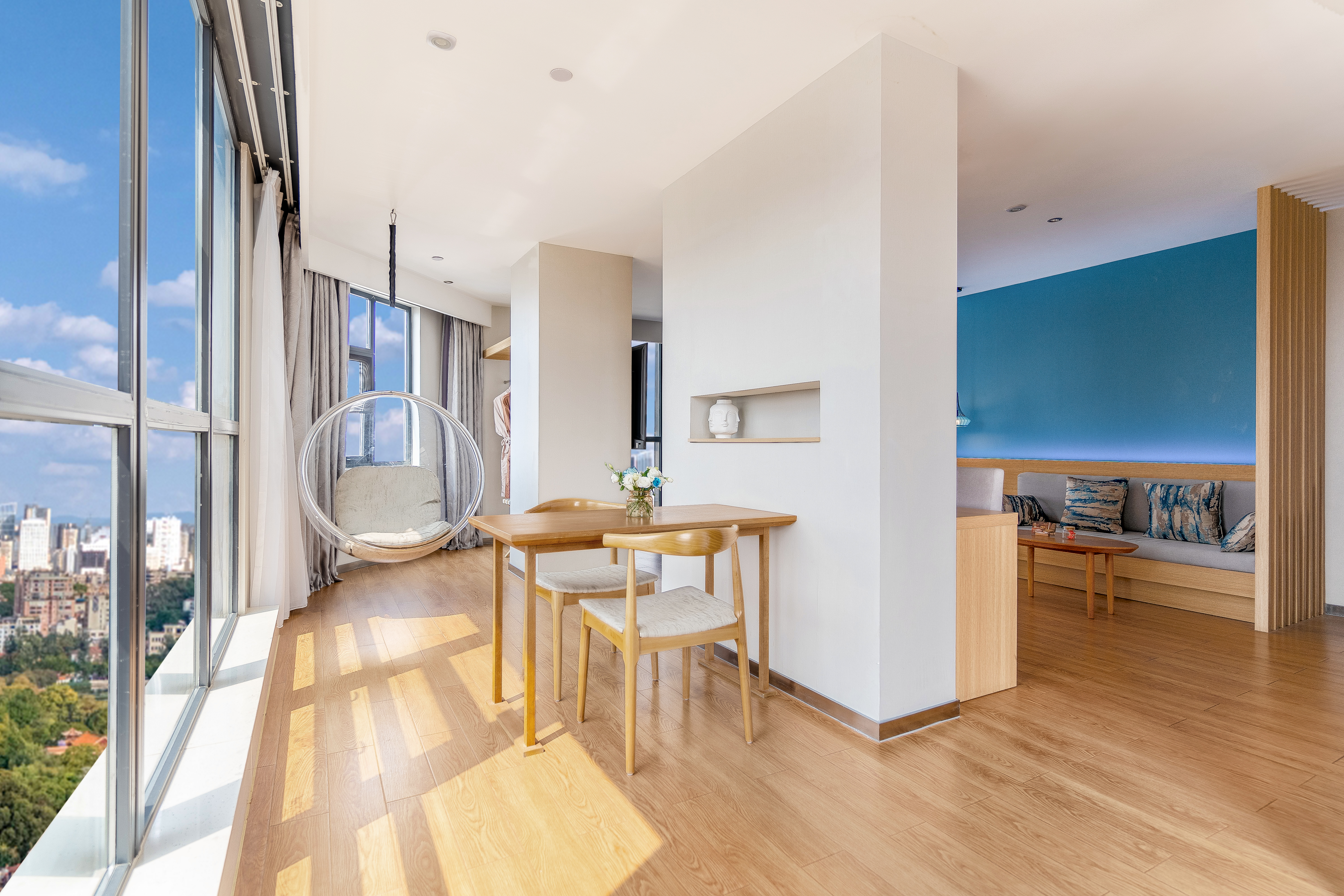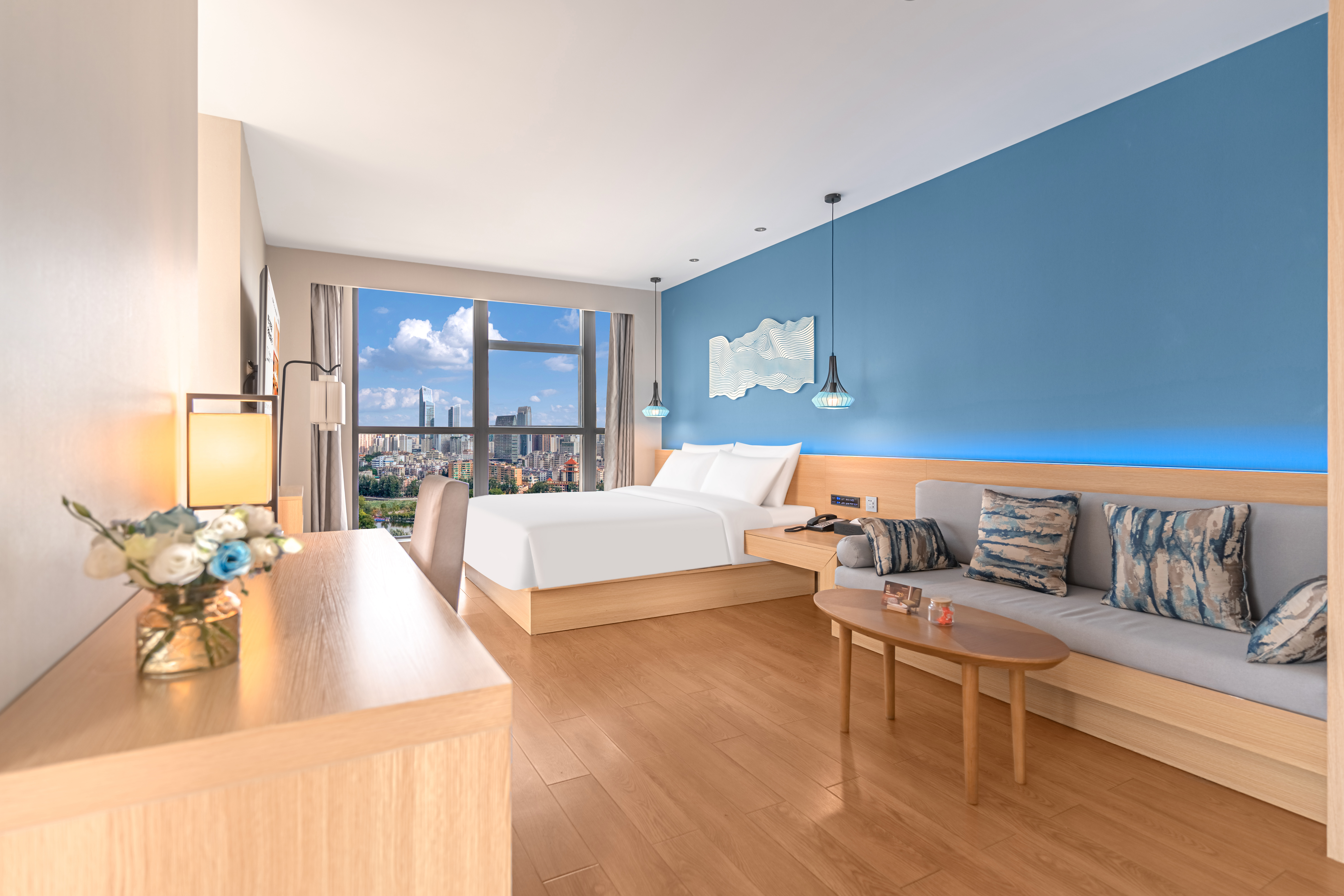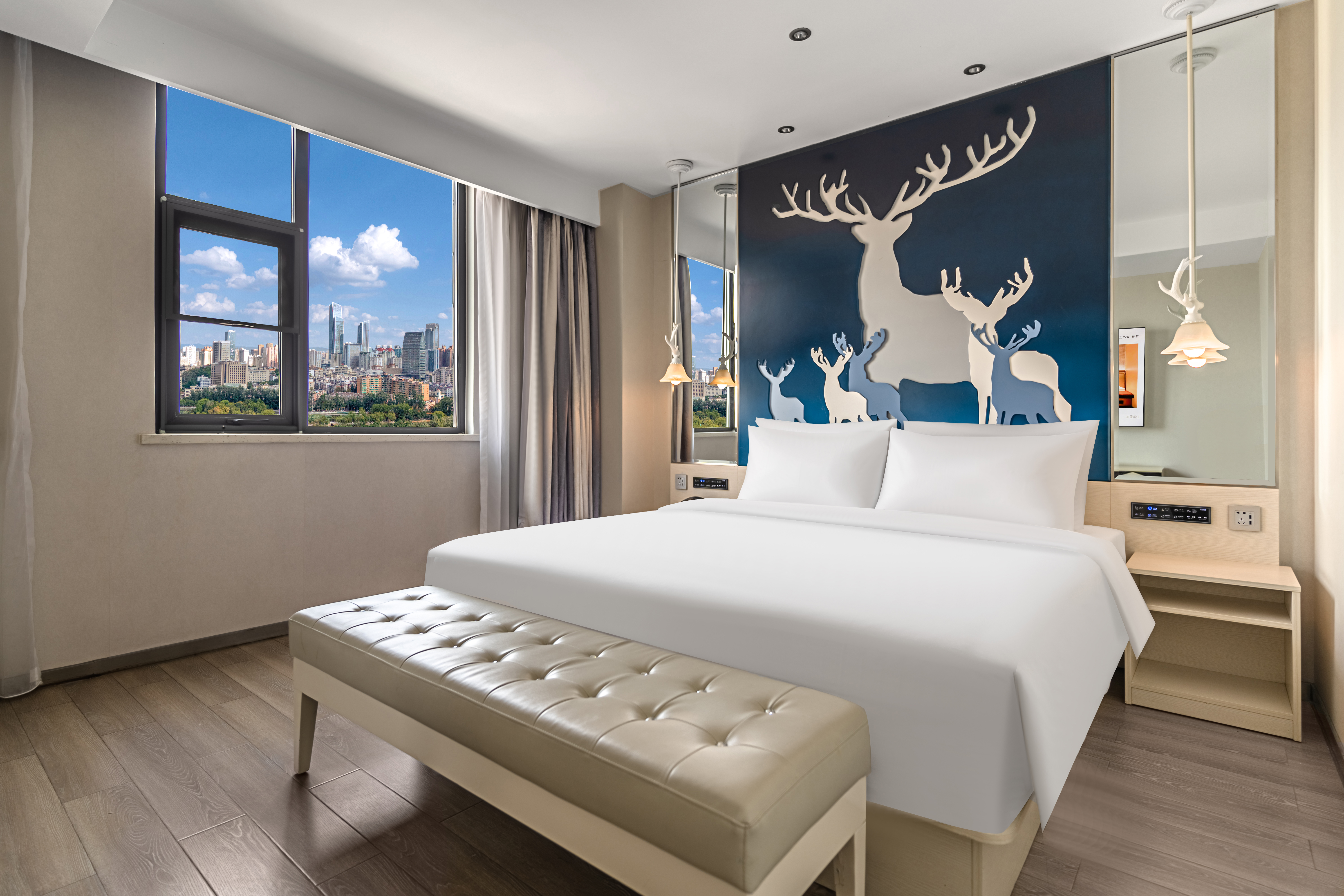 景观套房(金可儿床垫|65寸投屏|城市落地窗景)