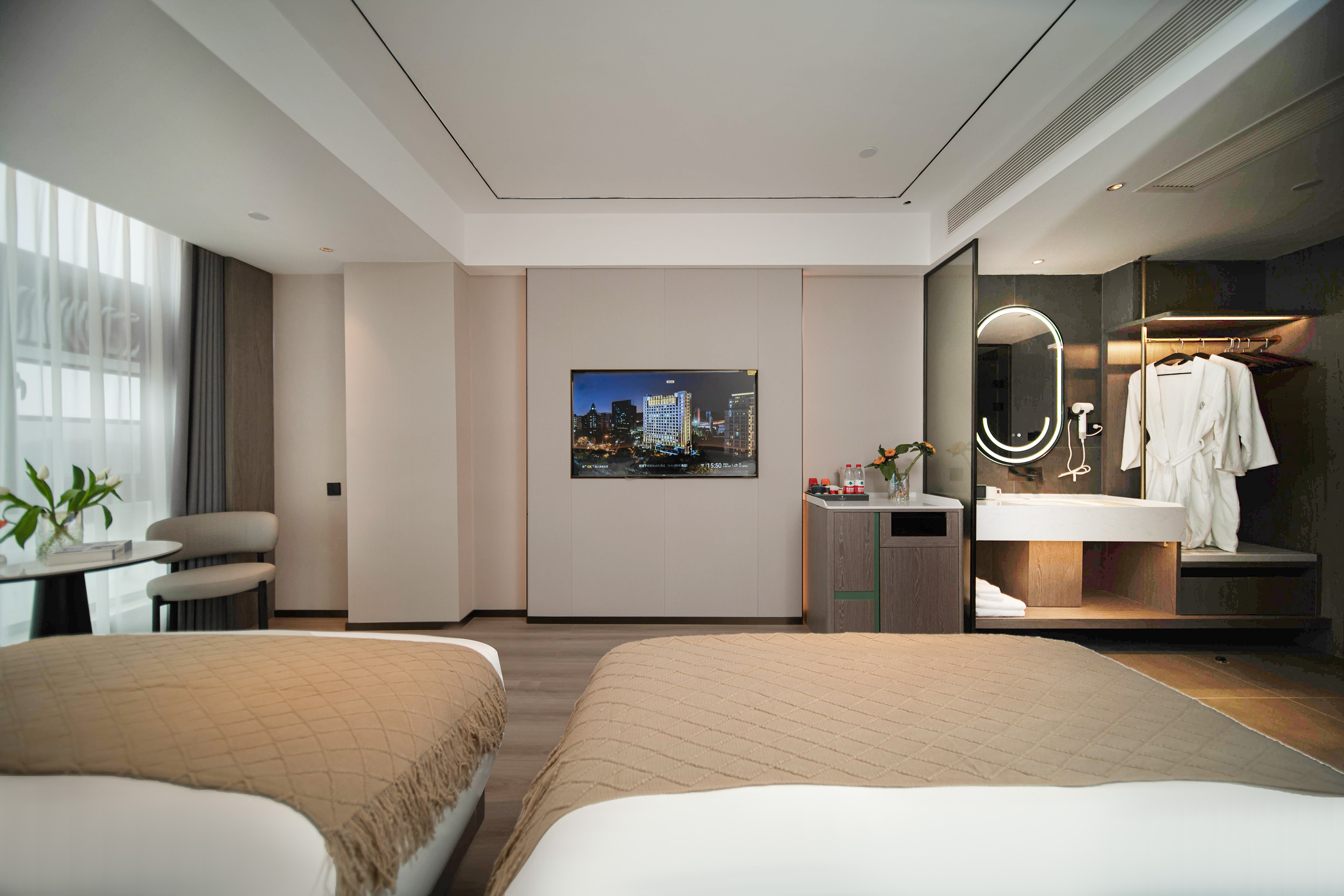 雅致城景双床房|语音客控&森林氧吧&落地窗&零压床垫