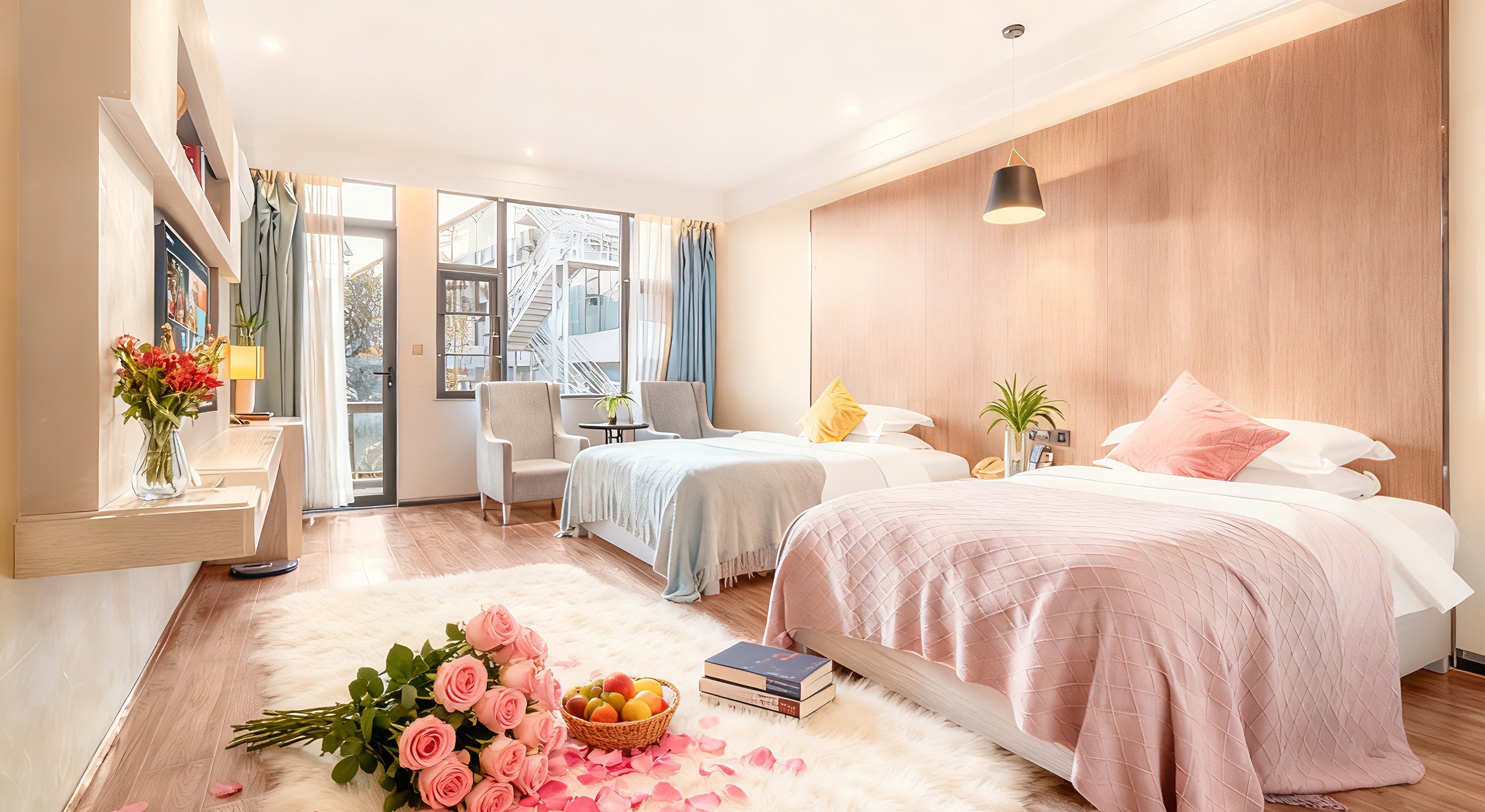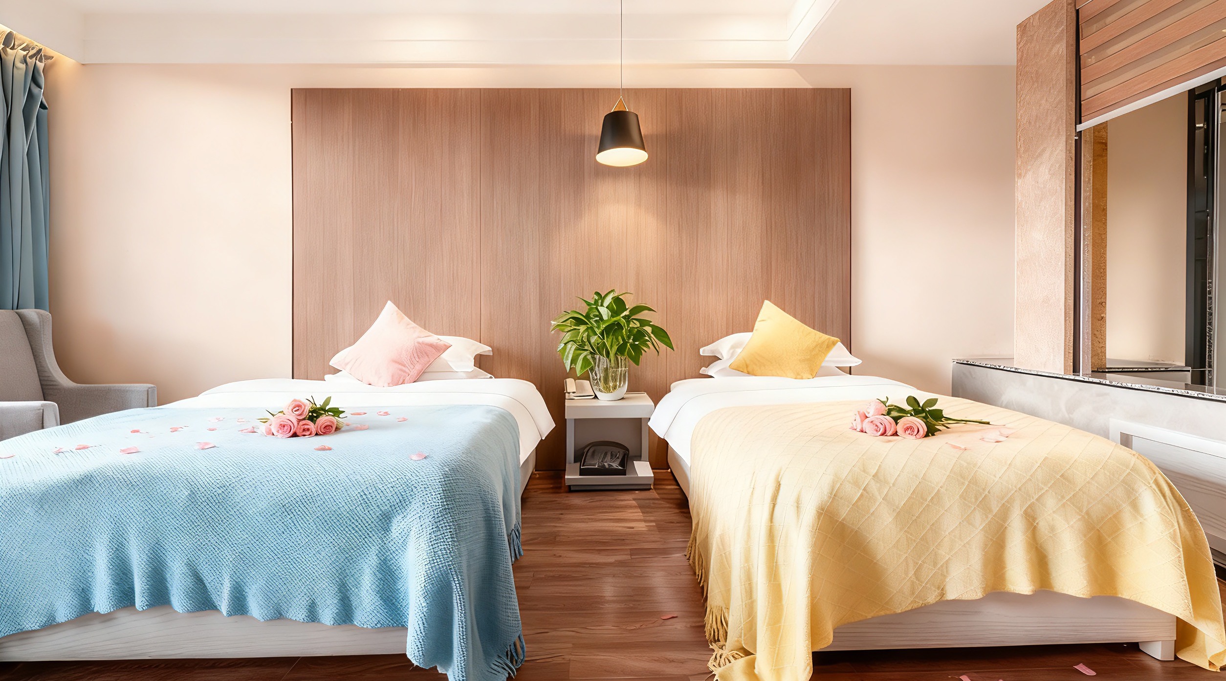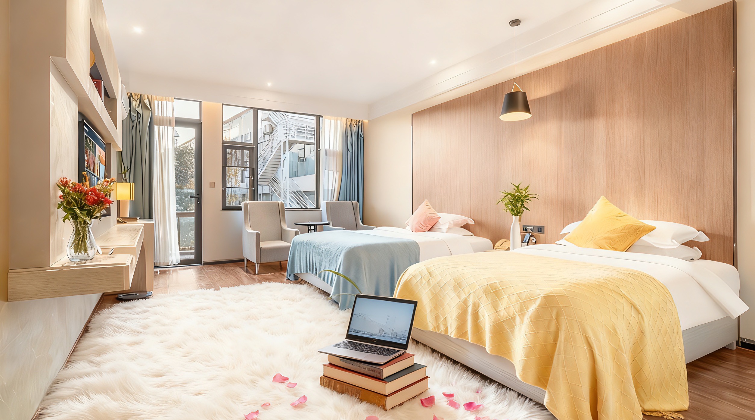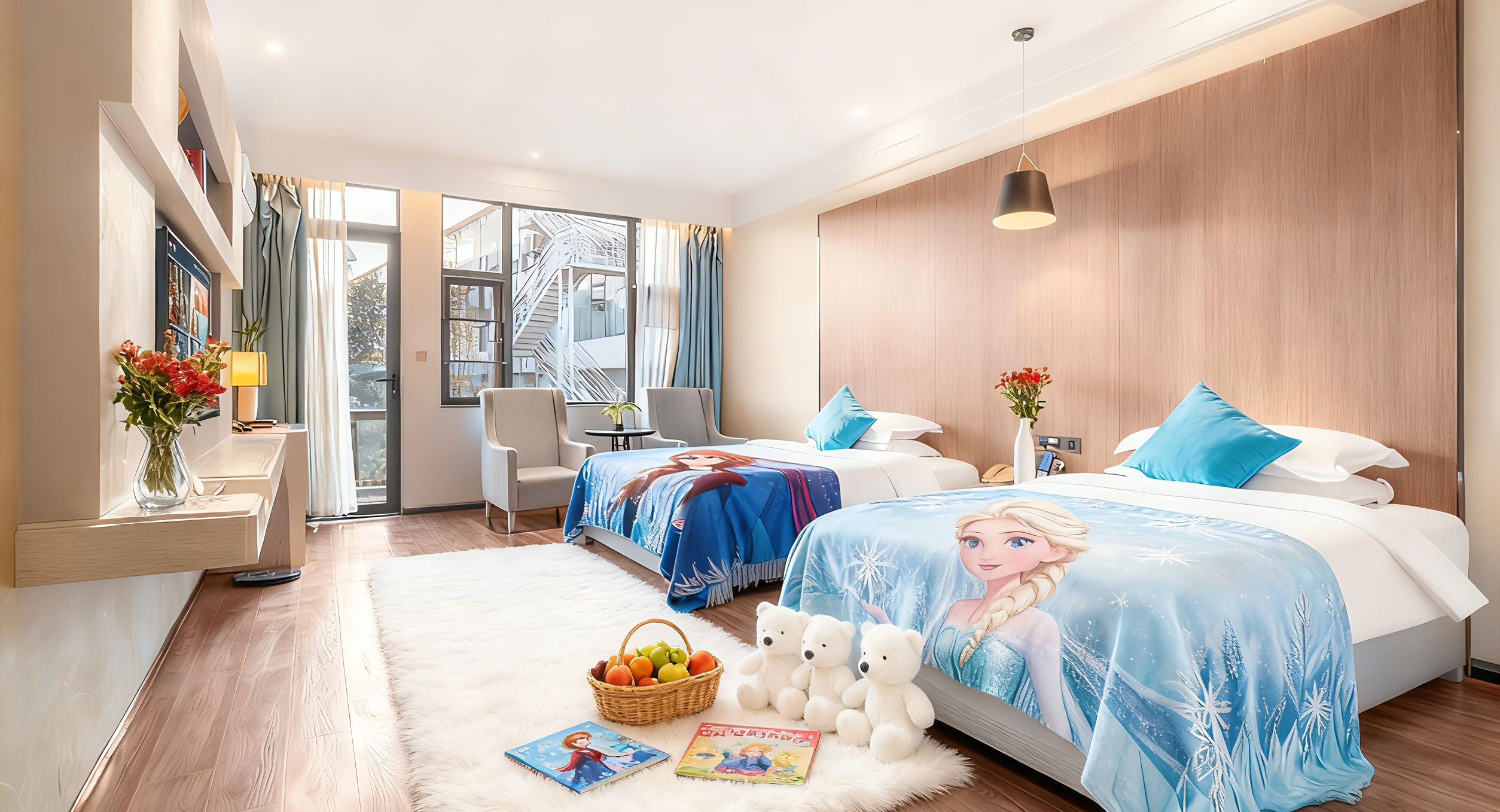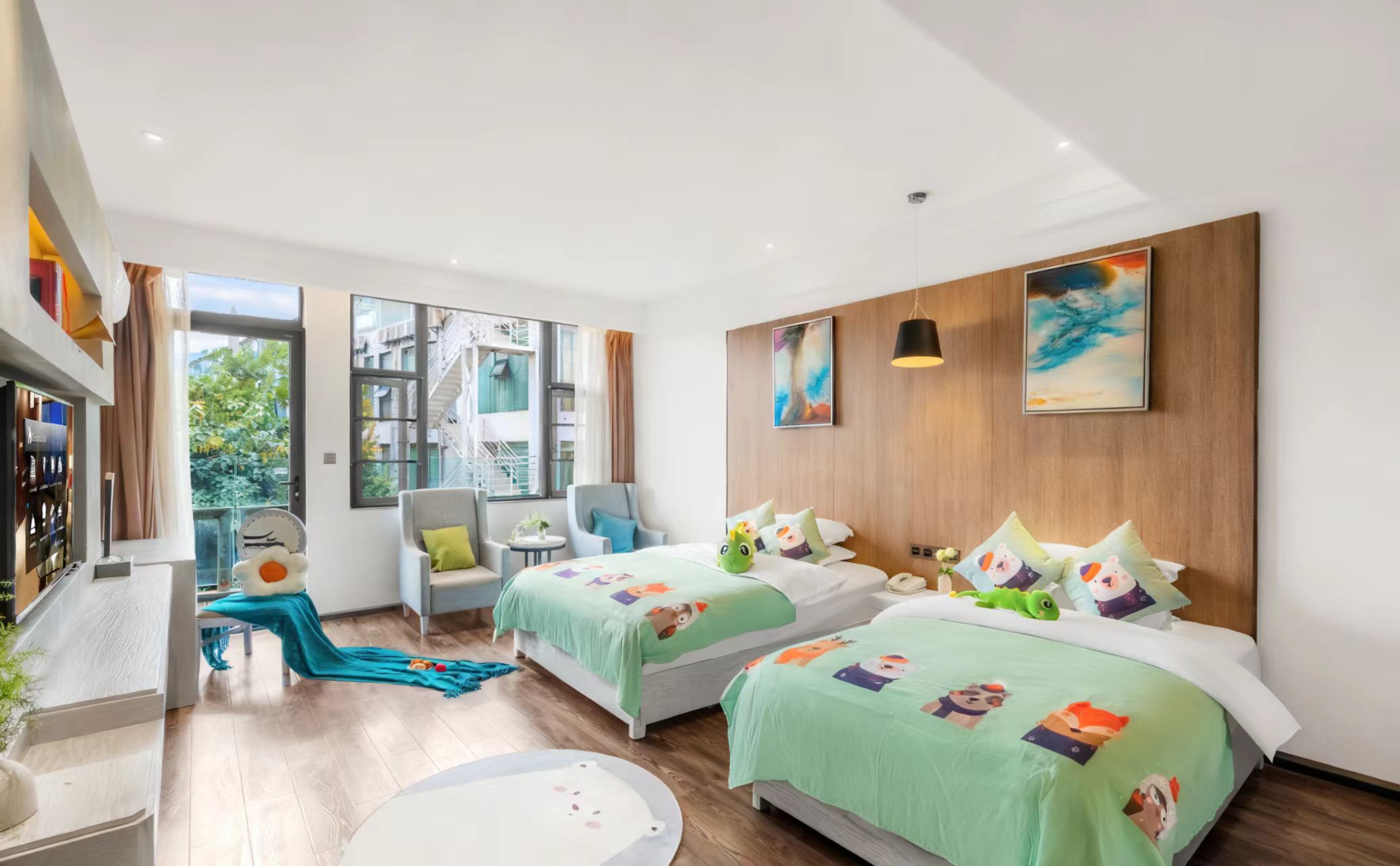 萌娃亲子房2张大床双人床