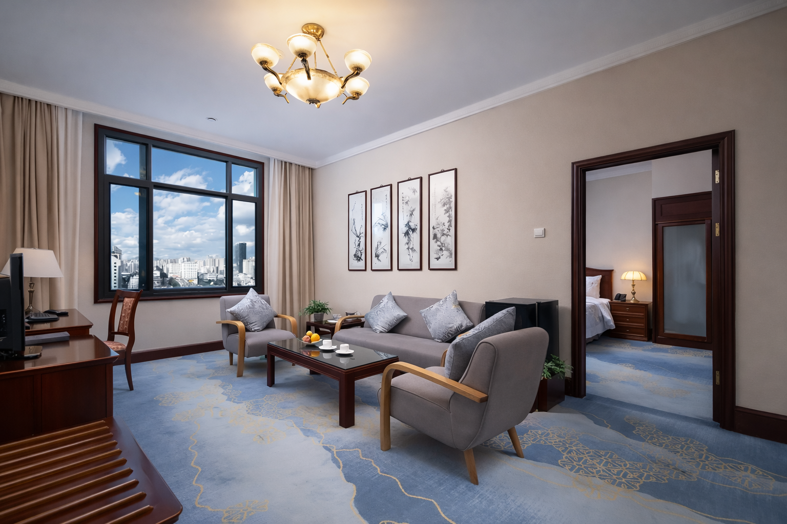 商务套房「眺望城市天际线+独立会客厅+休闲沙发组合」