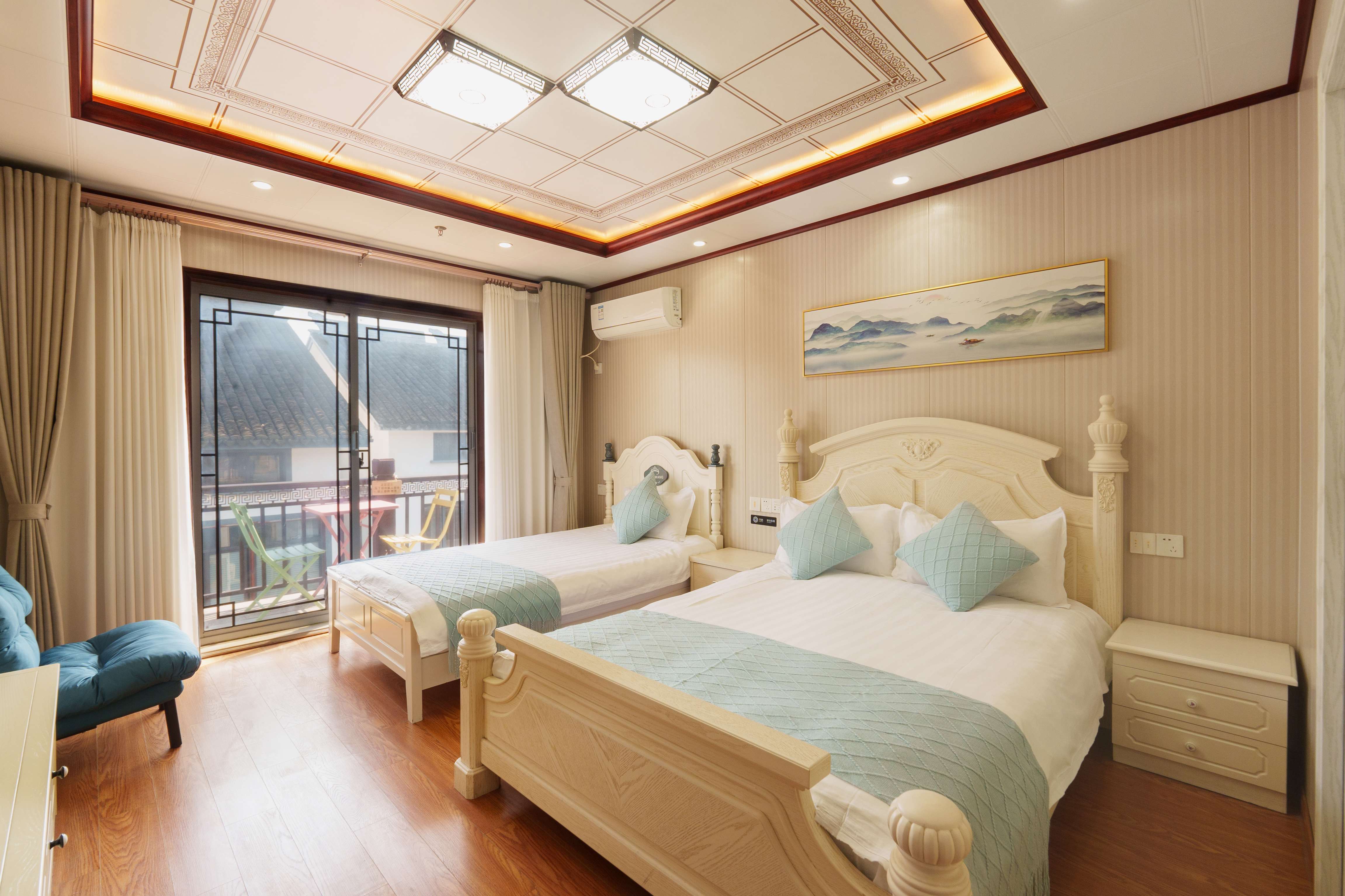 兰桂·中式大床房+贵妃榻躺椅+枫树景观