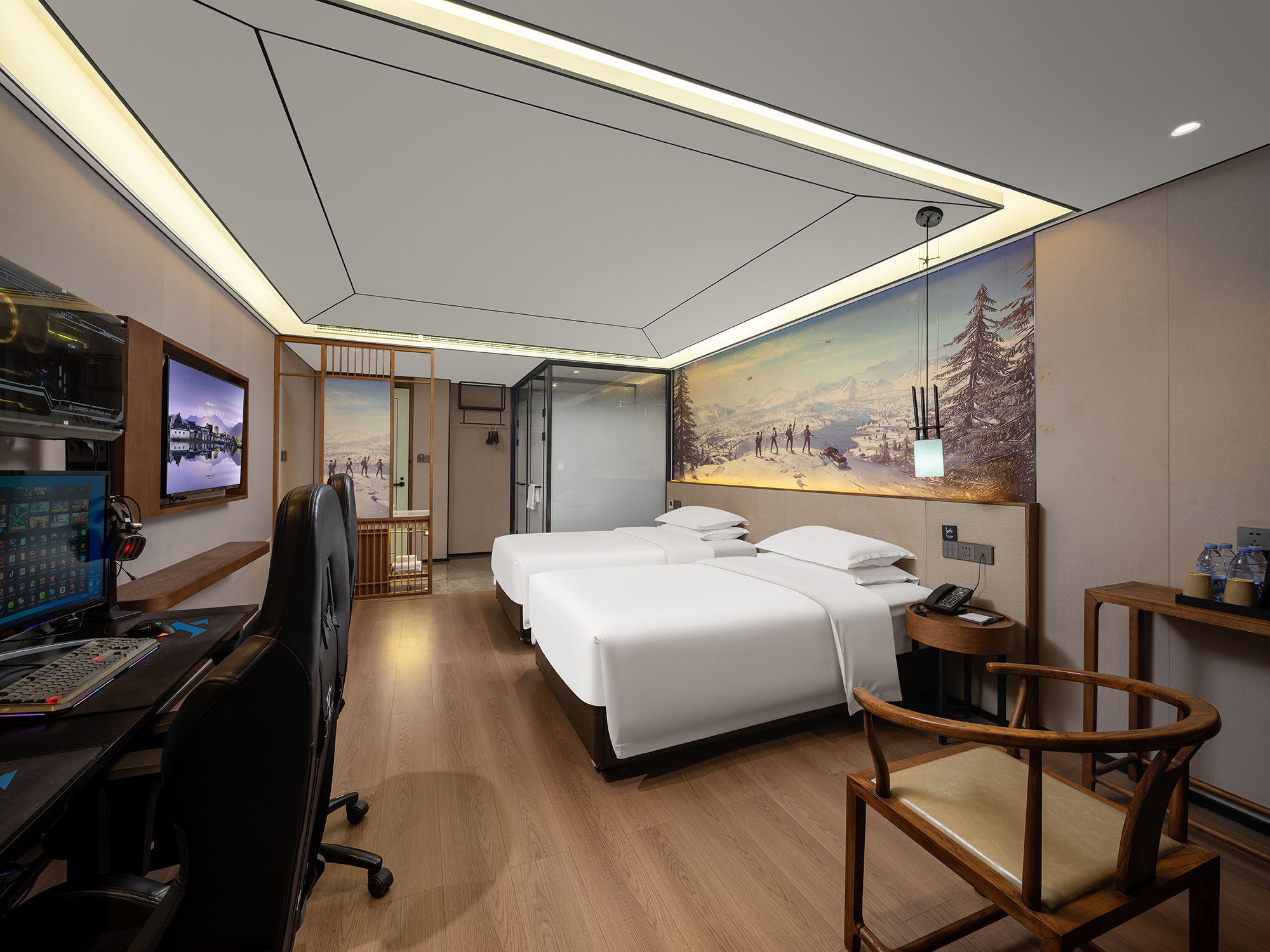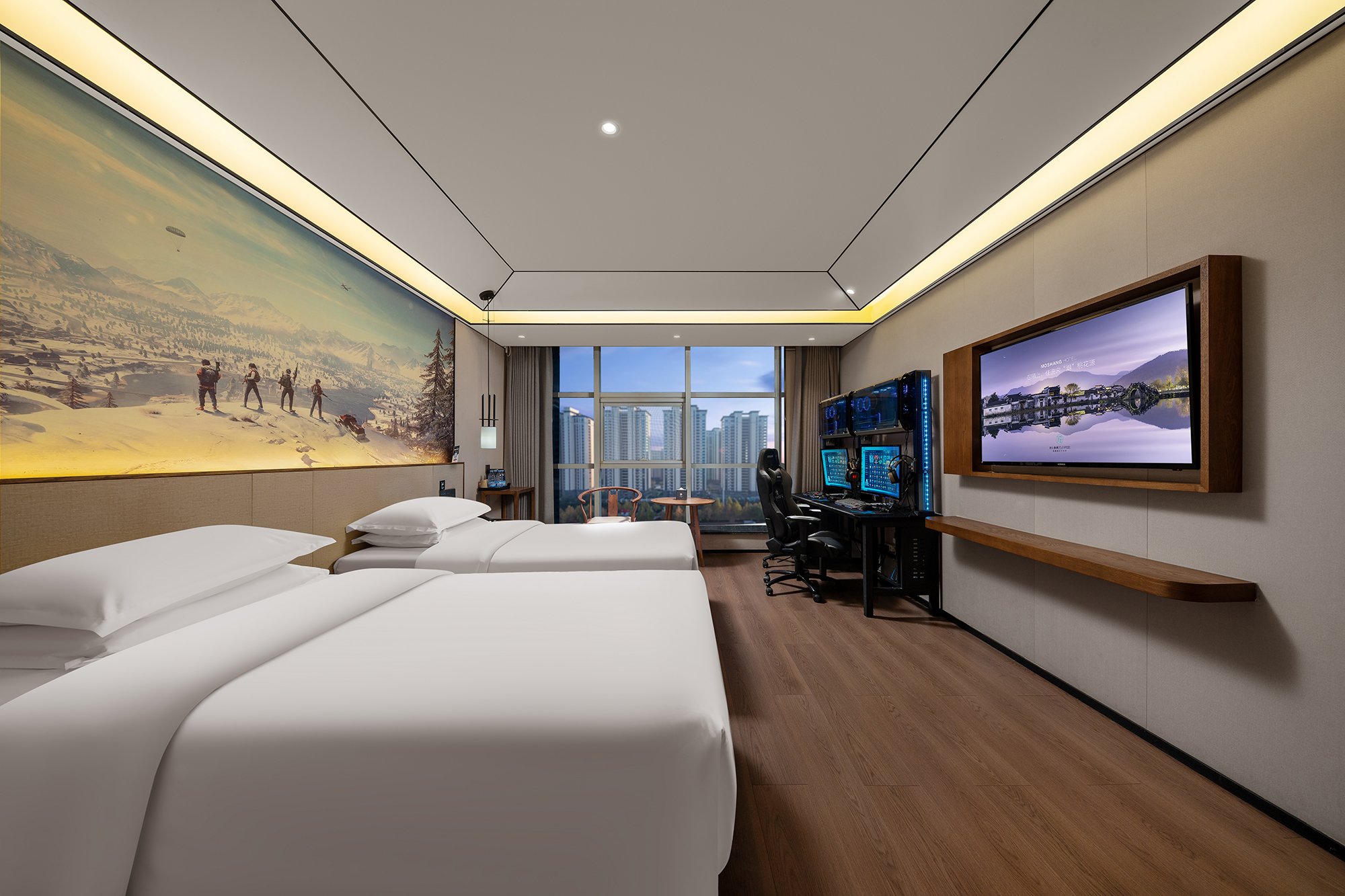 静逸·电竞双床房[专线光纤+RTX3060+32寸144Hz显示器]