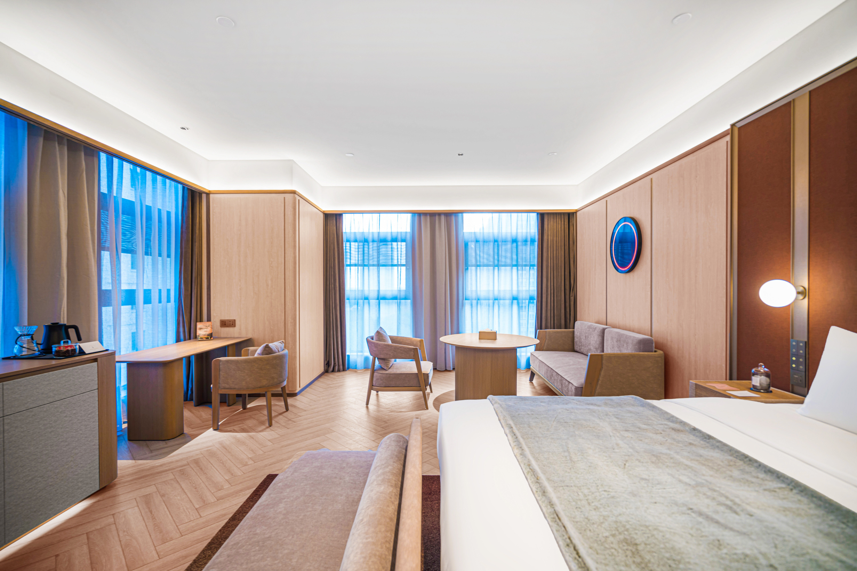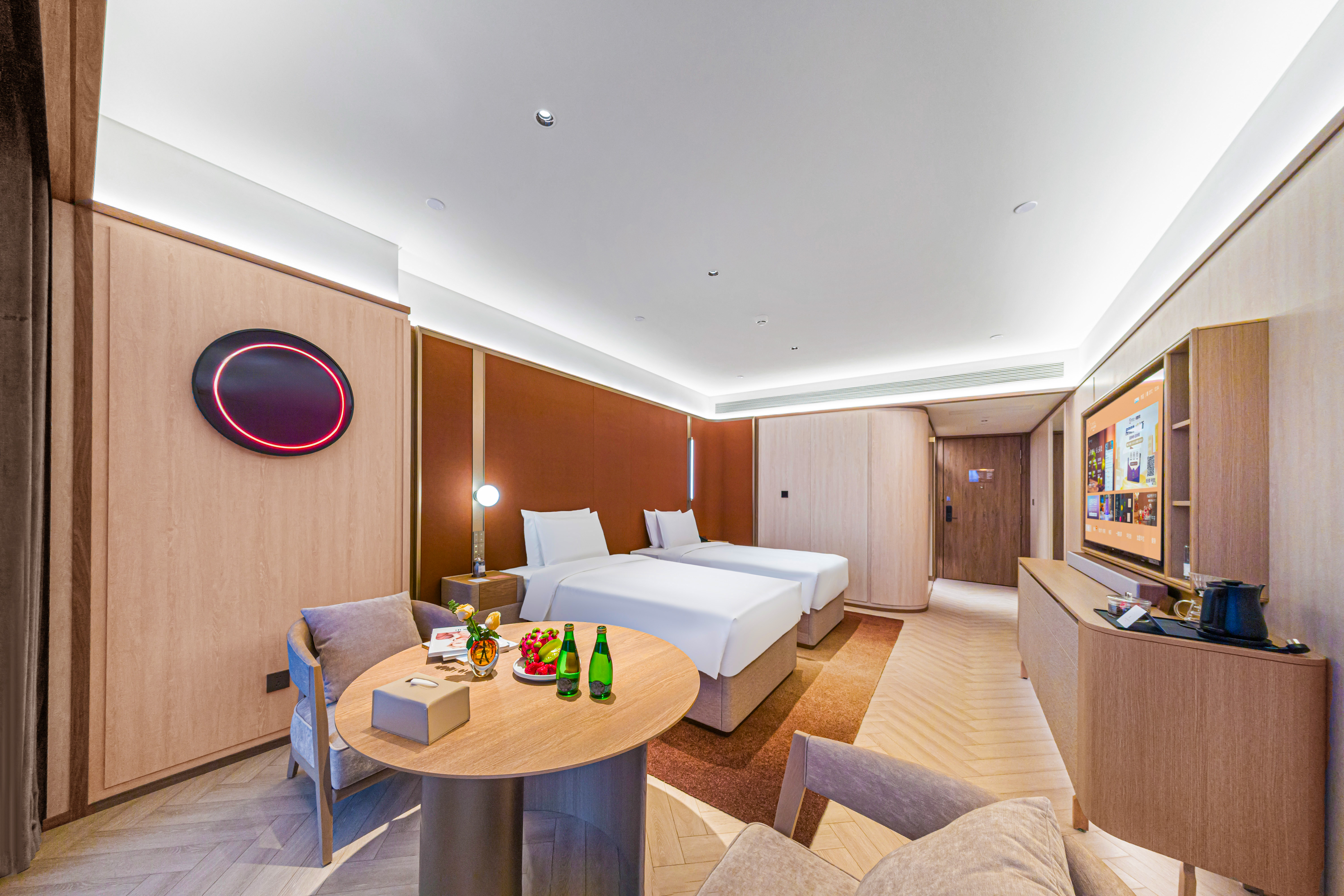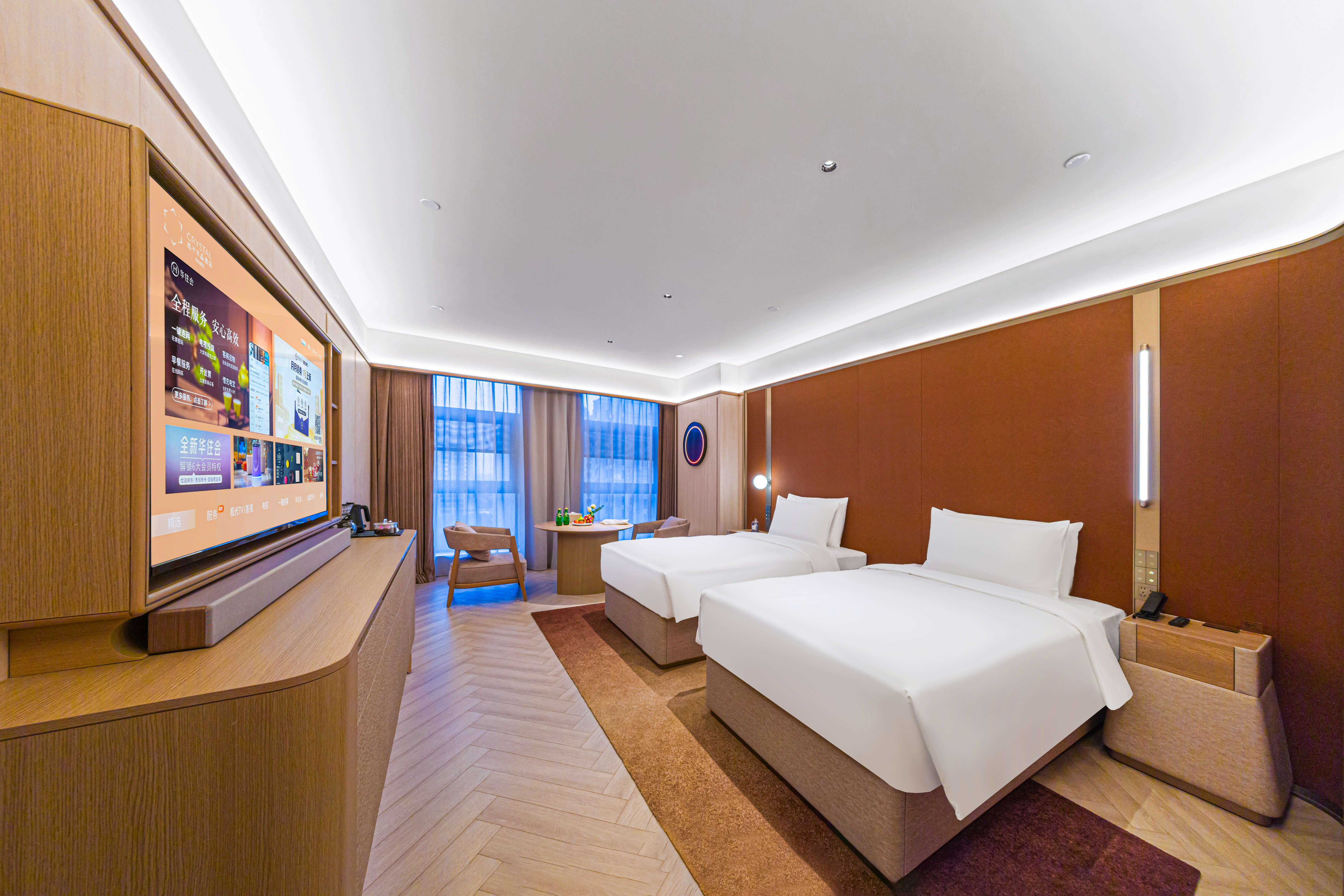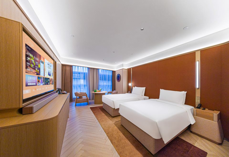 Business Twin Room With 65"Projection Tv, Silken Mattress, Lai Fen Hair Dryer&Ultra-Soft Bathrobe