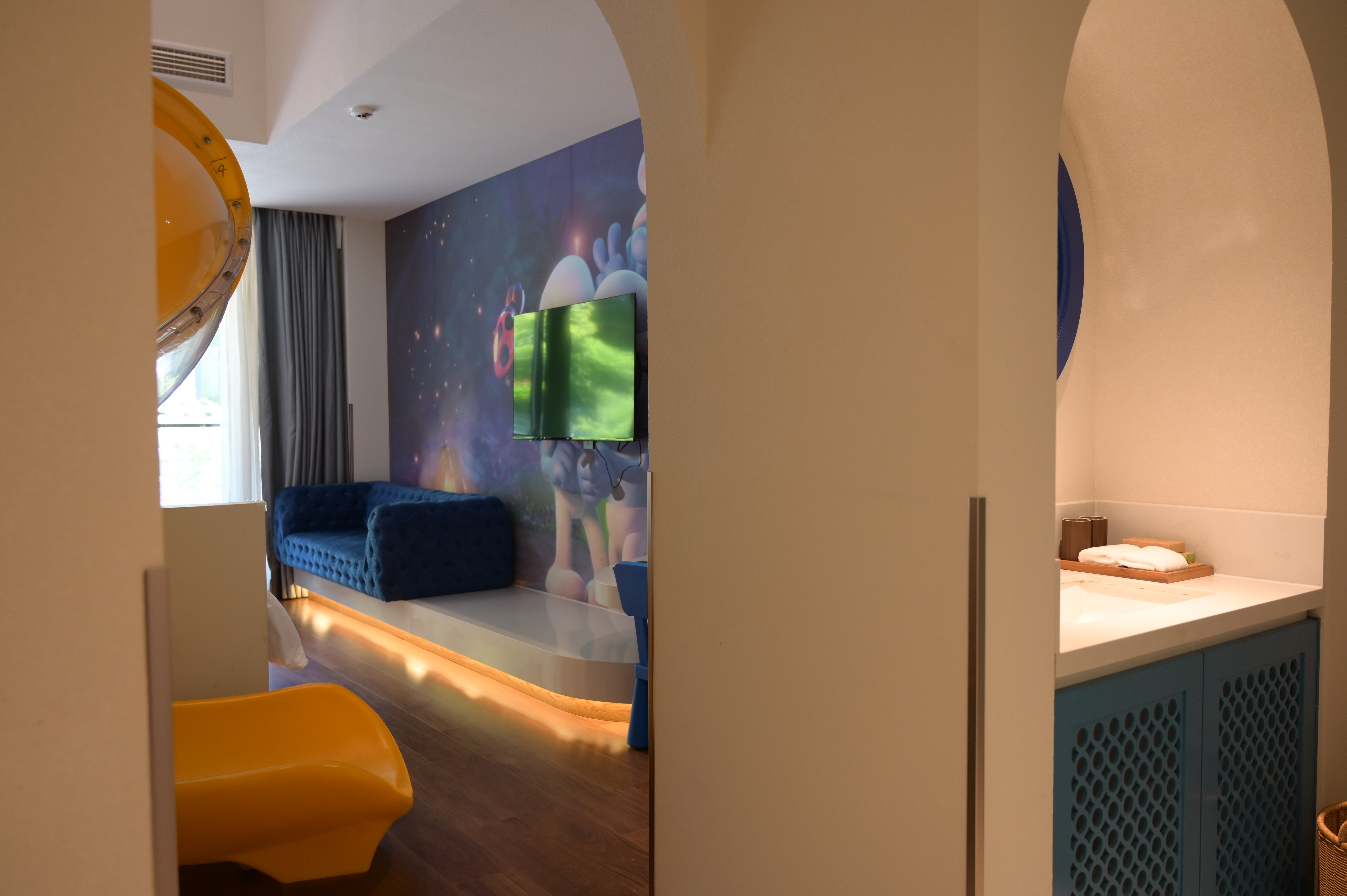 Smurfs Theme Suite (Theme Loft + Slide + Ocean Ball Pit + Children's Playground + Scenic Balcony + 4-Bed Family Suite + Smart Home Amenities)