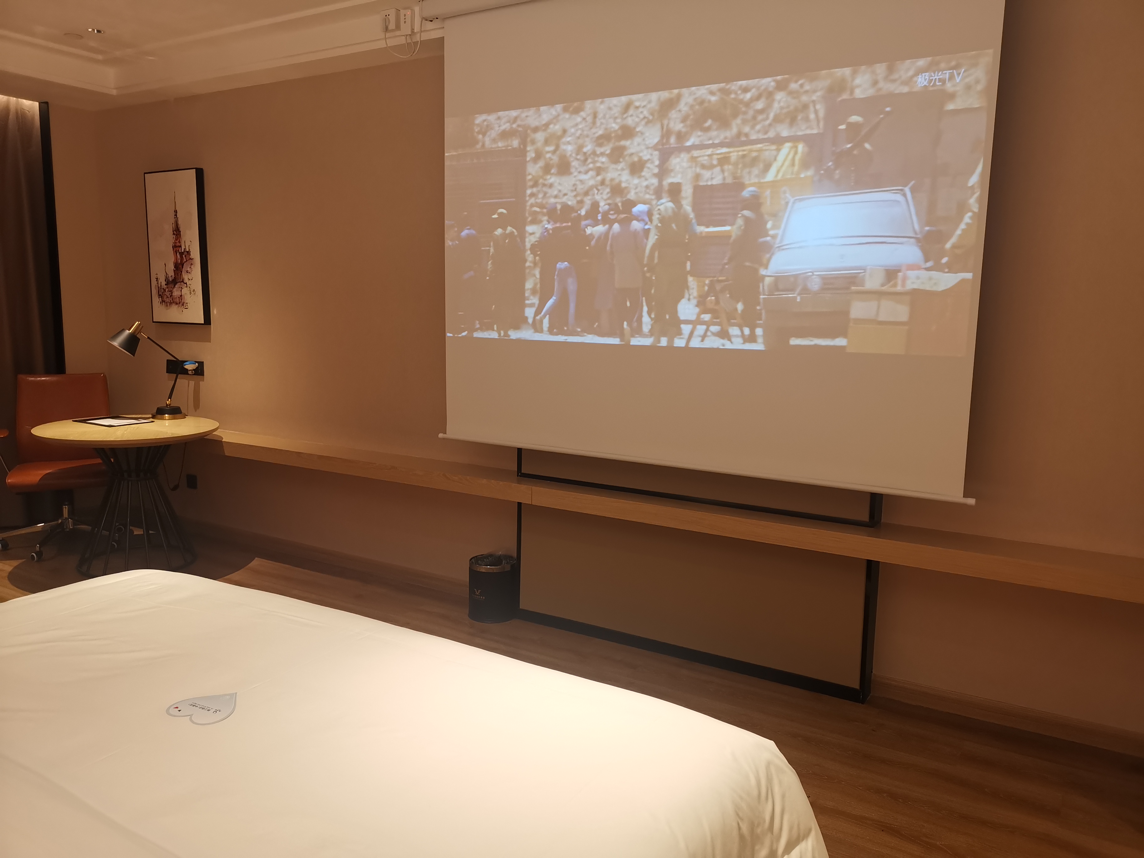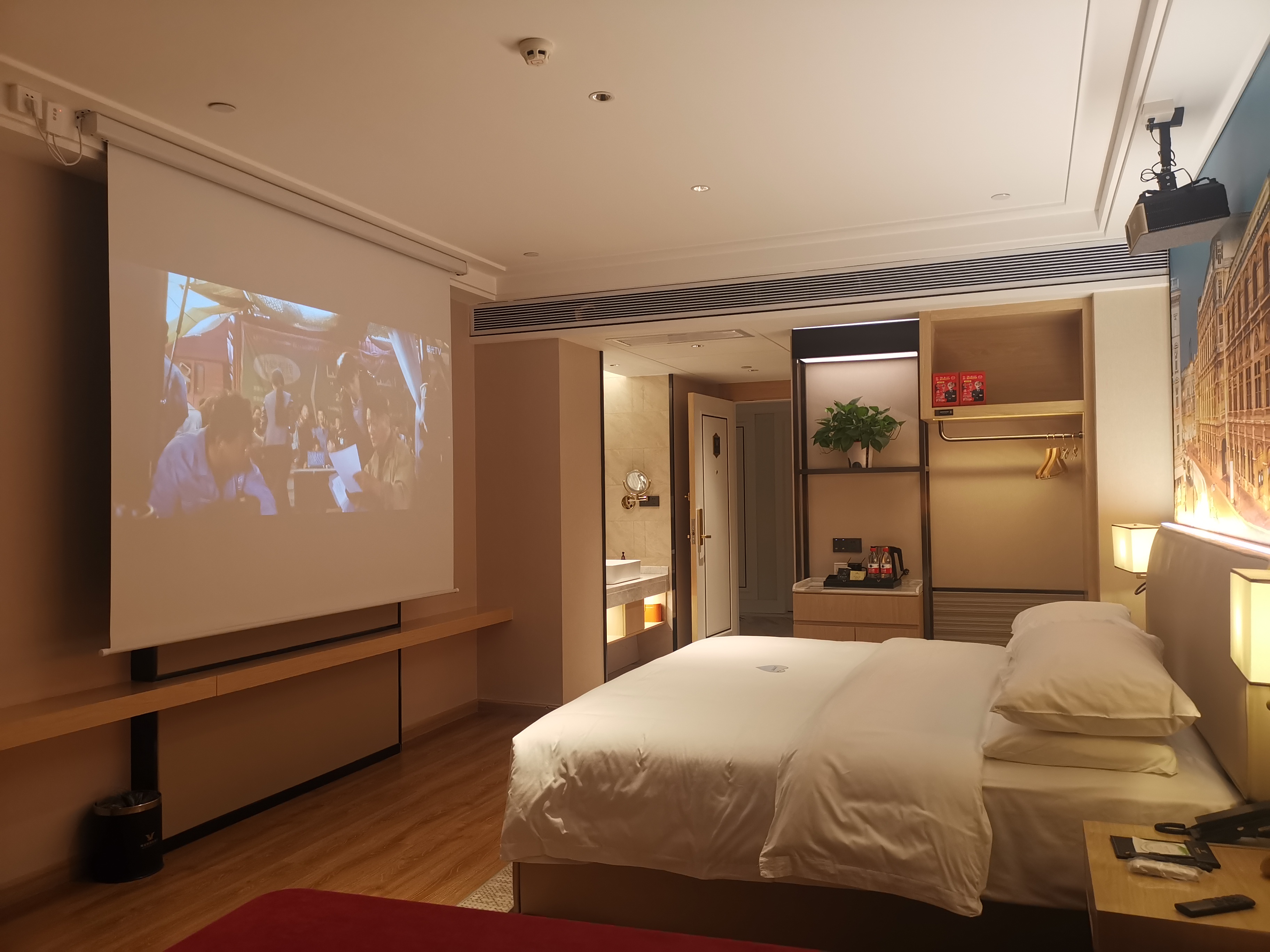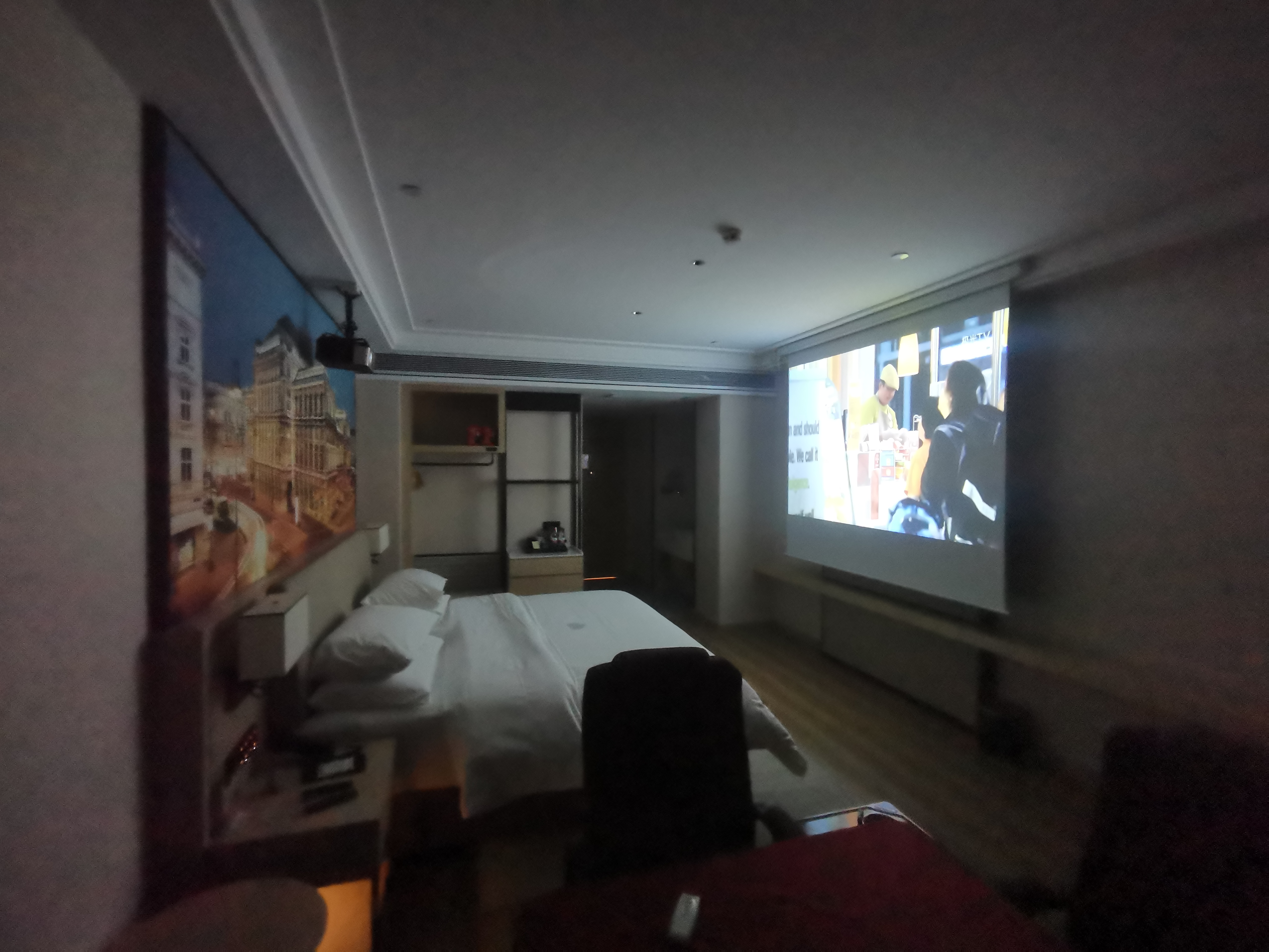 Large Screen Projector Double Bed Room
