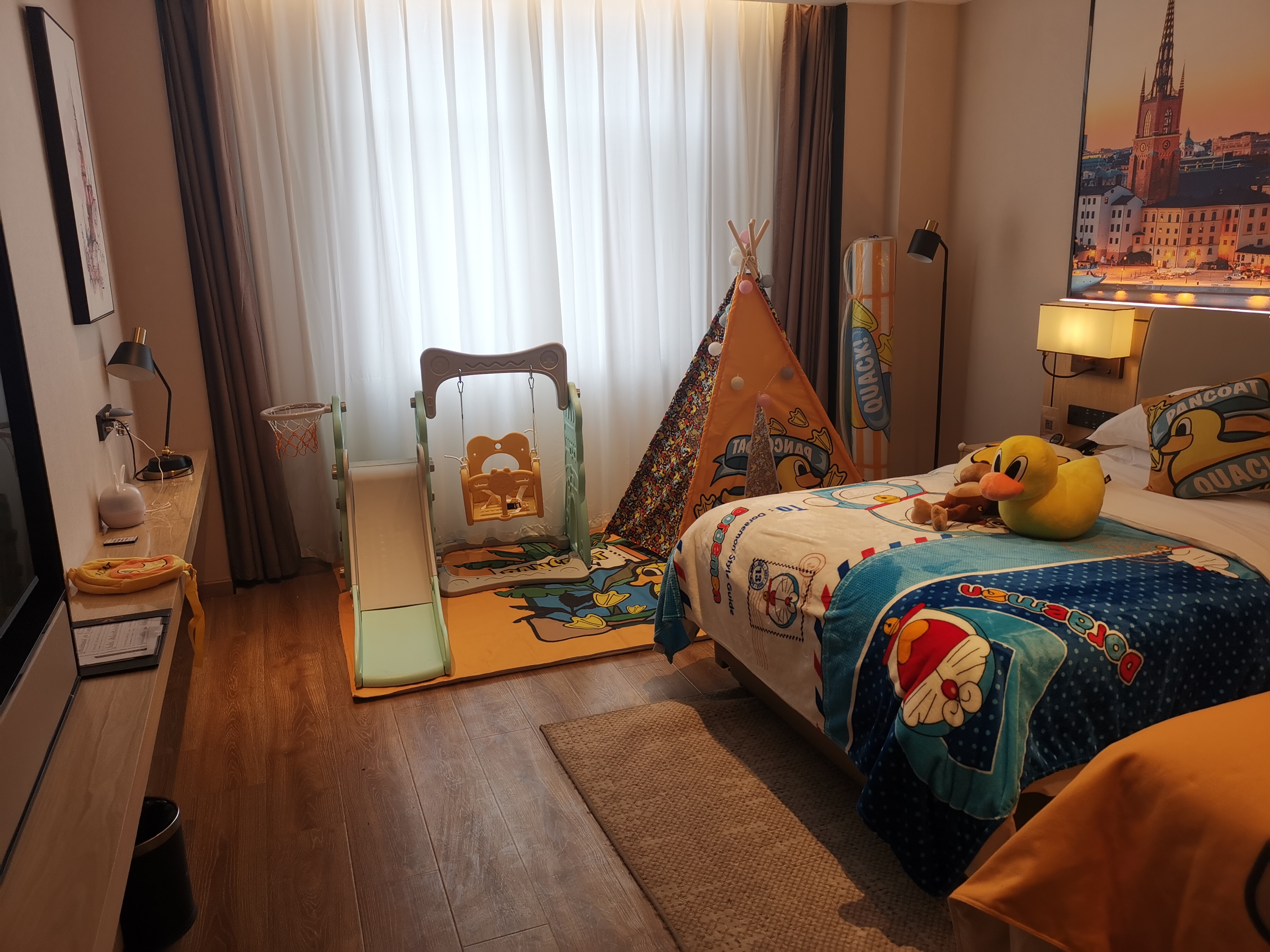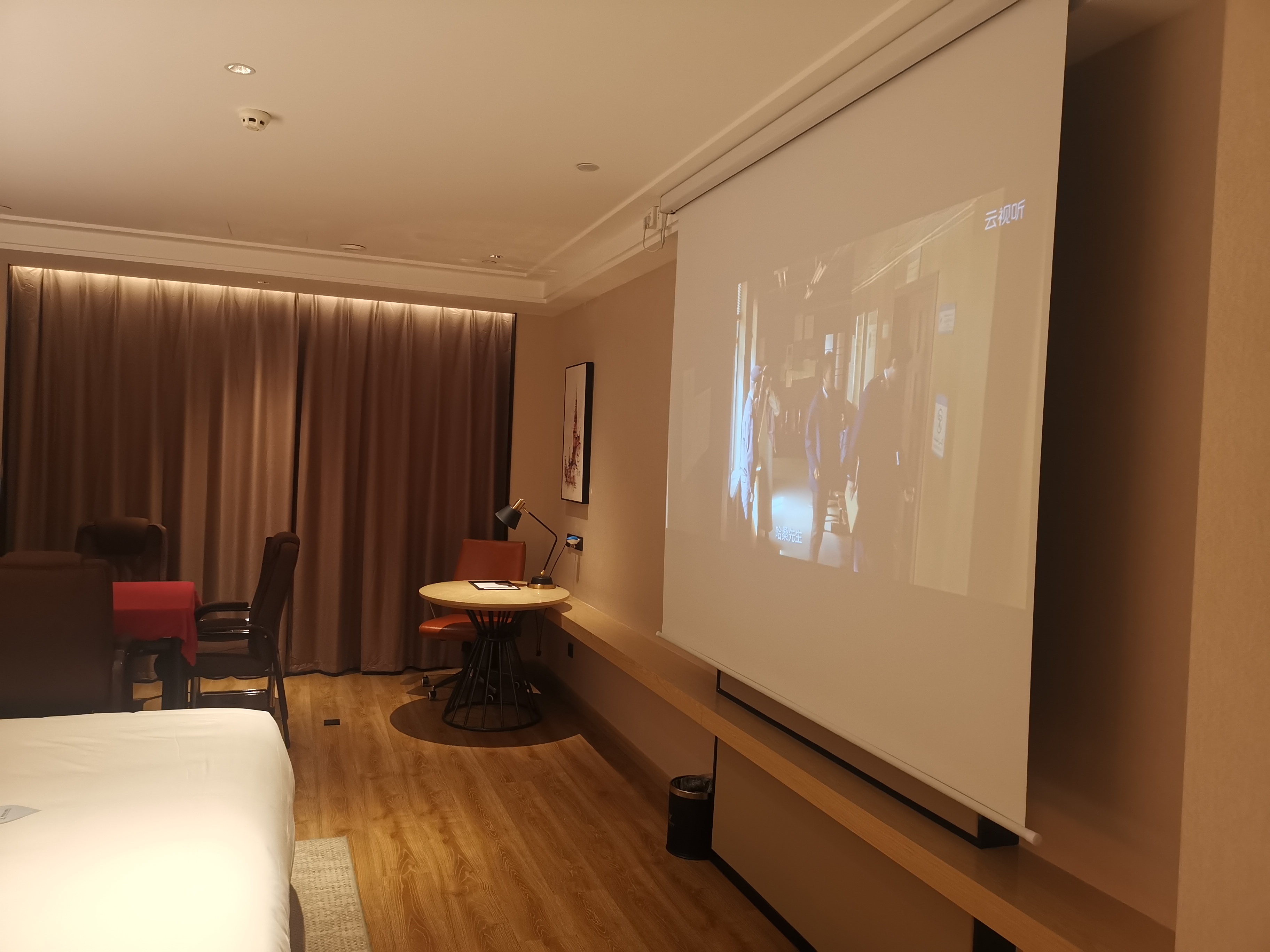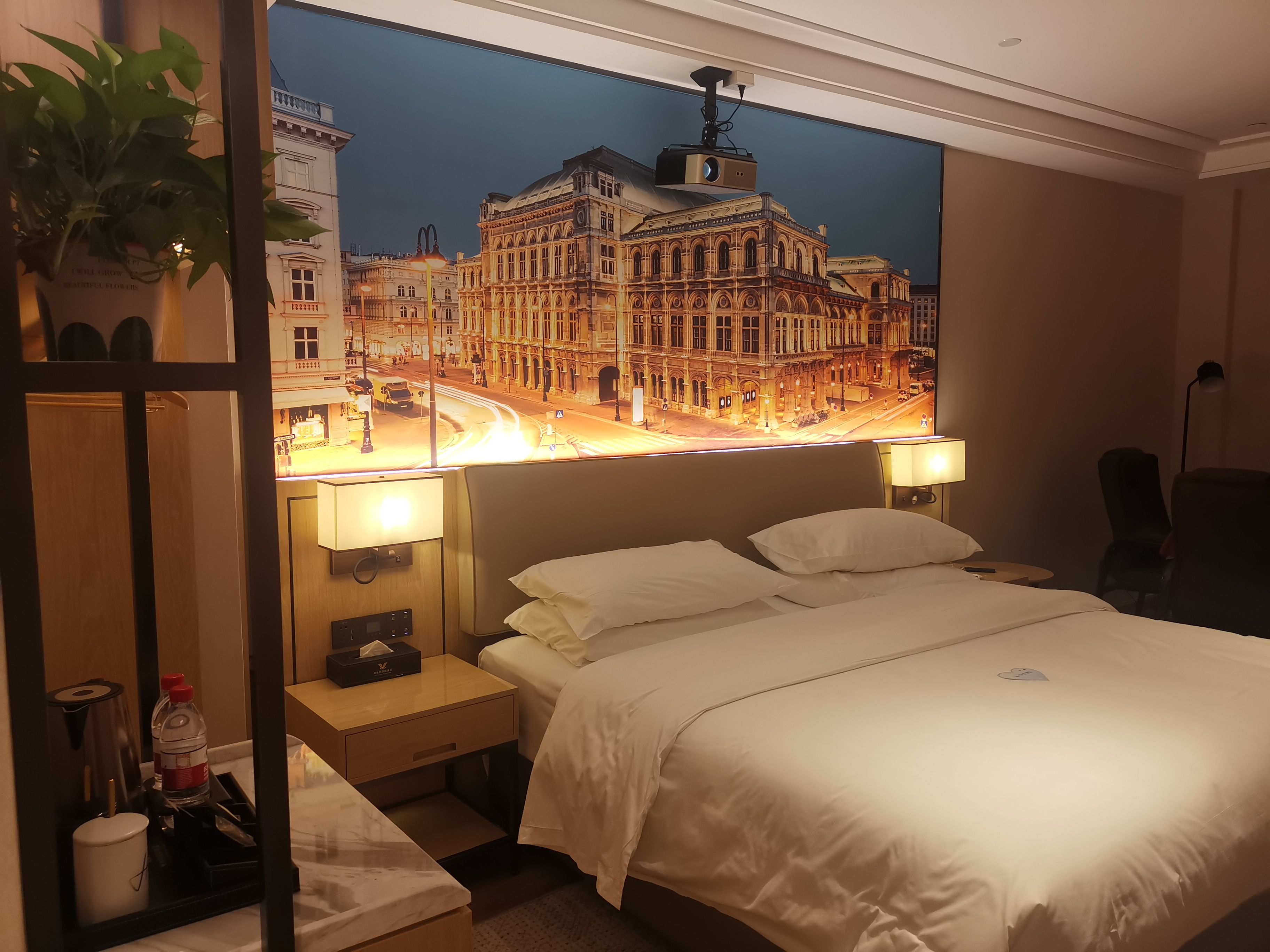 Large Screen Projector Double Bed Room