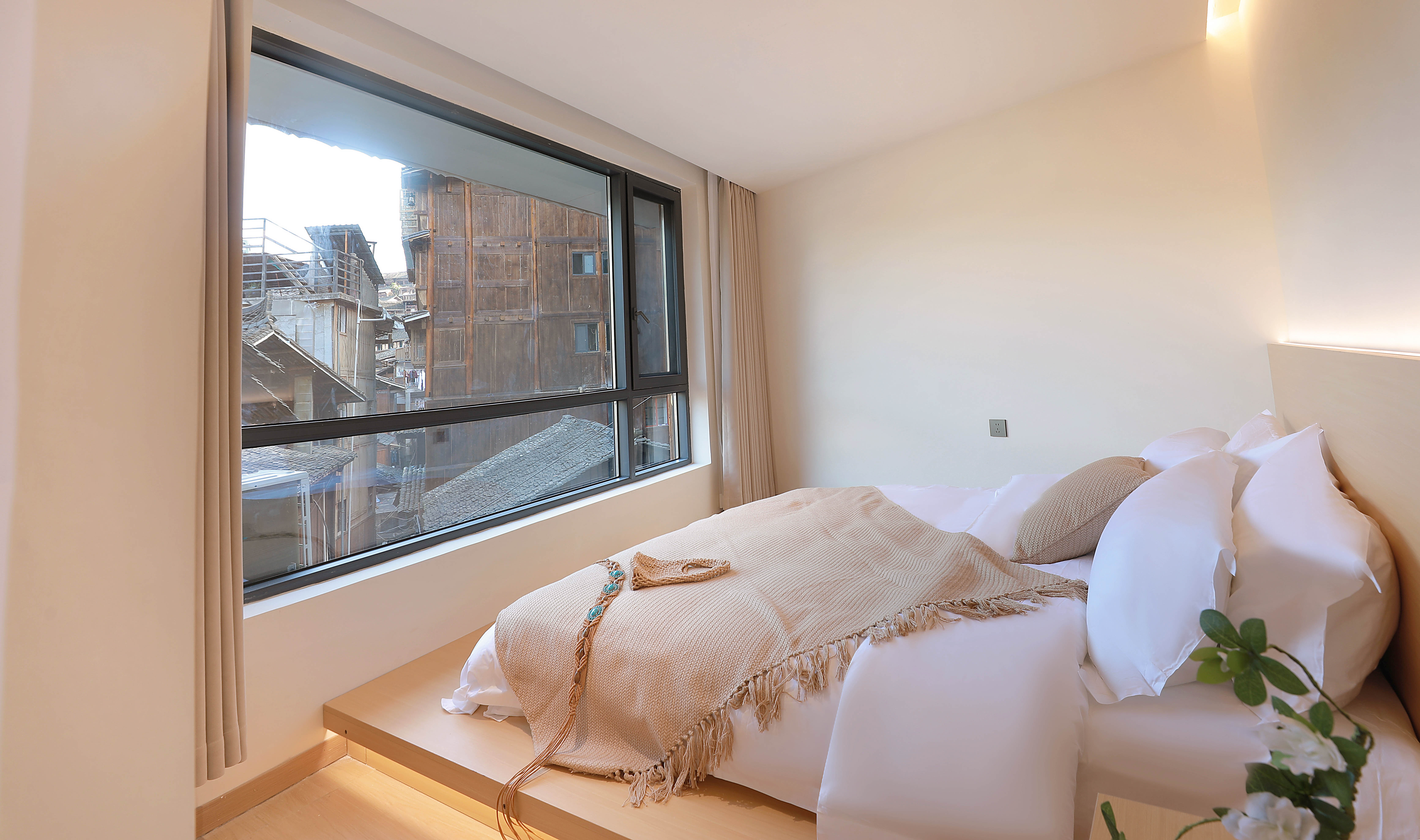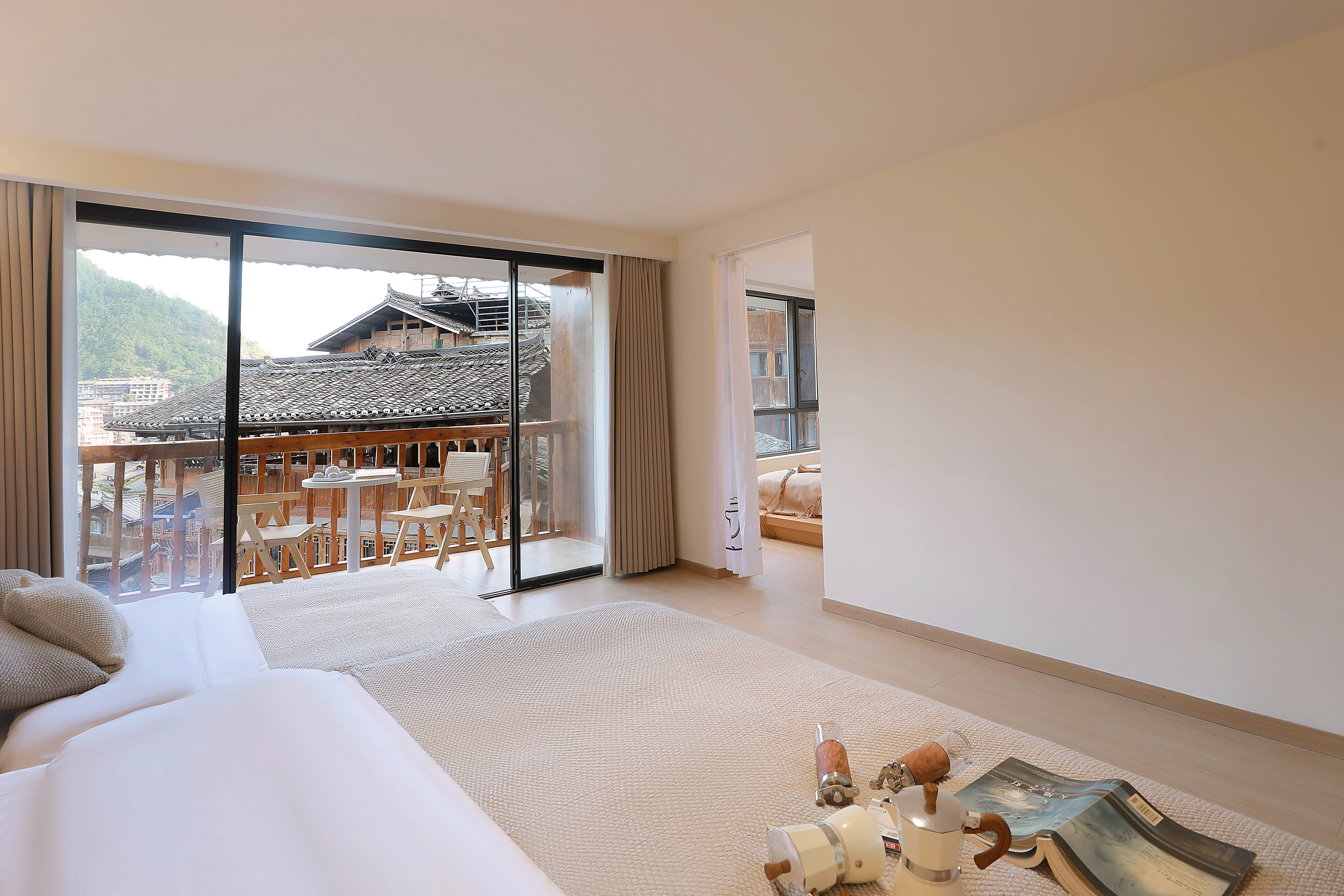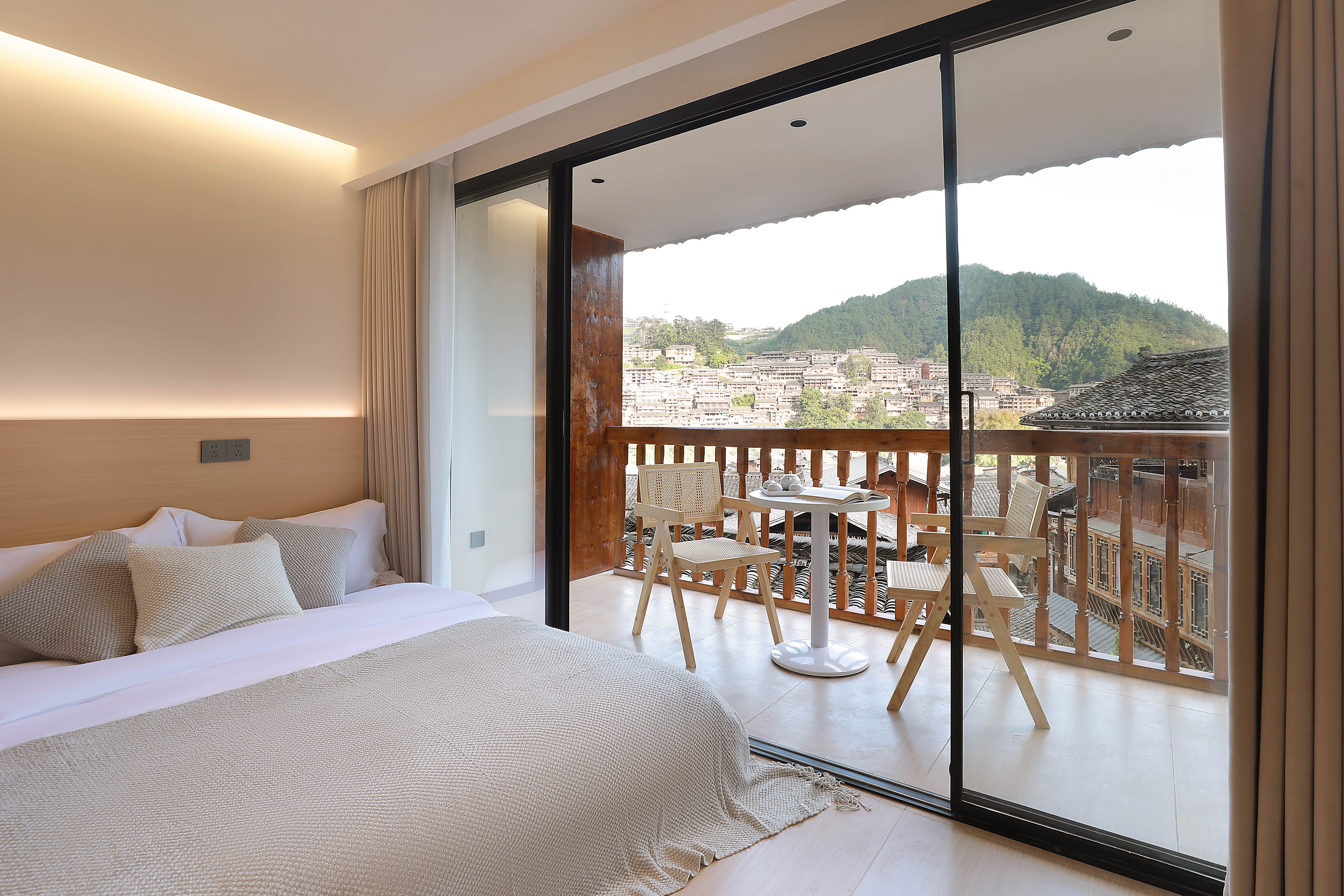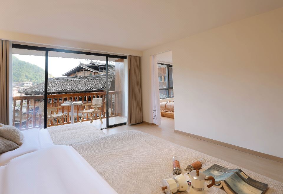 观云·全景阳台双床房(乳胶床垫+4K投影)