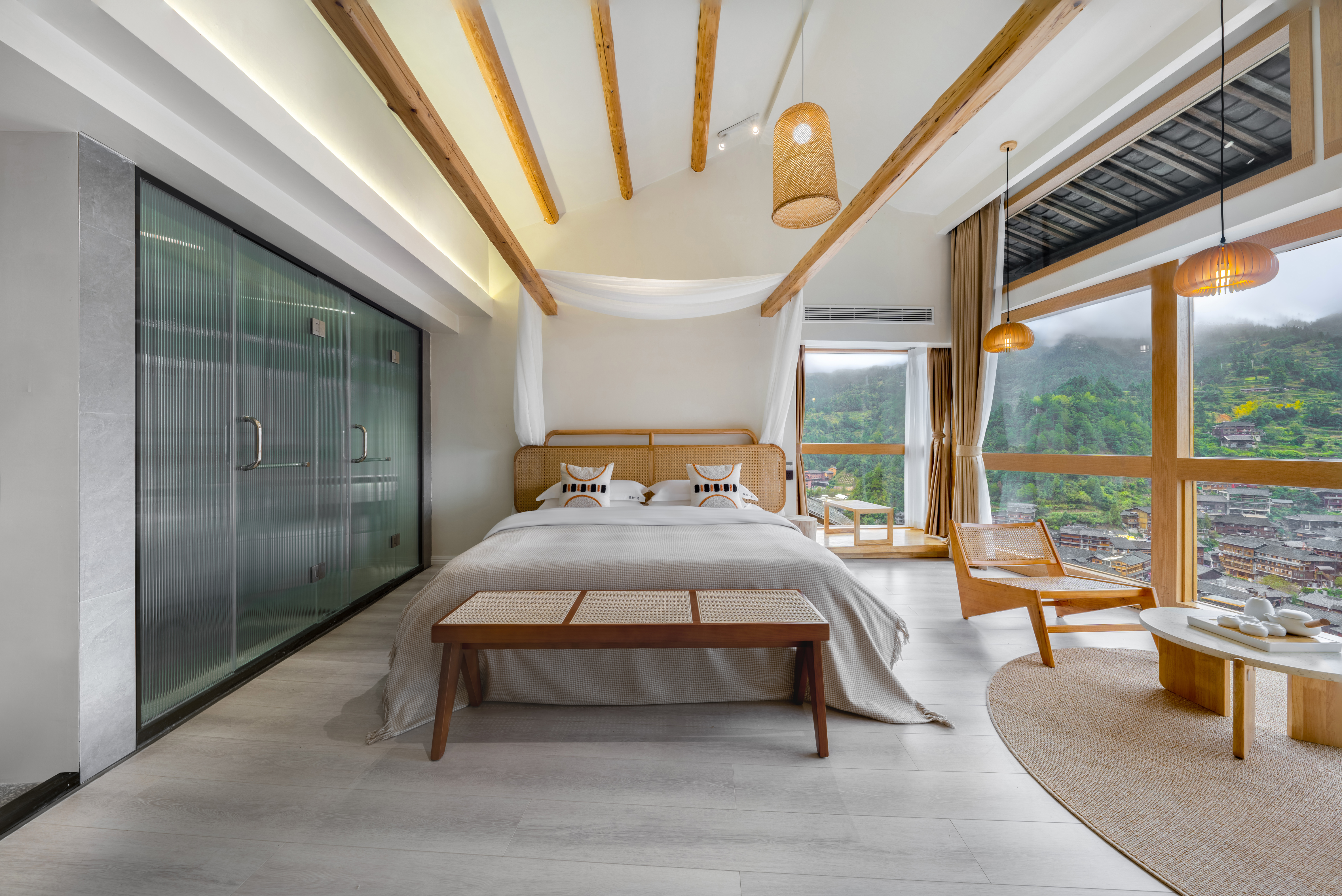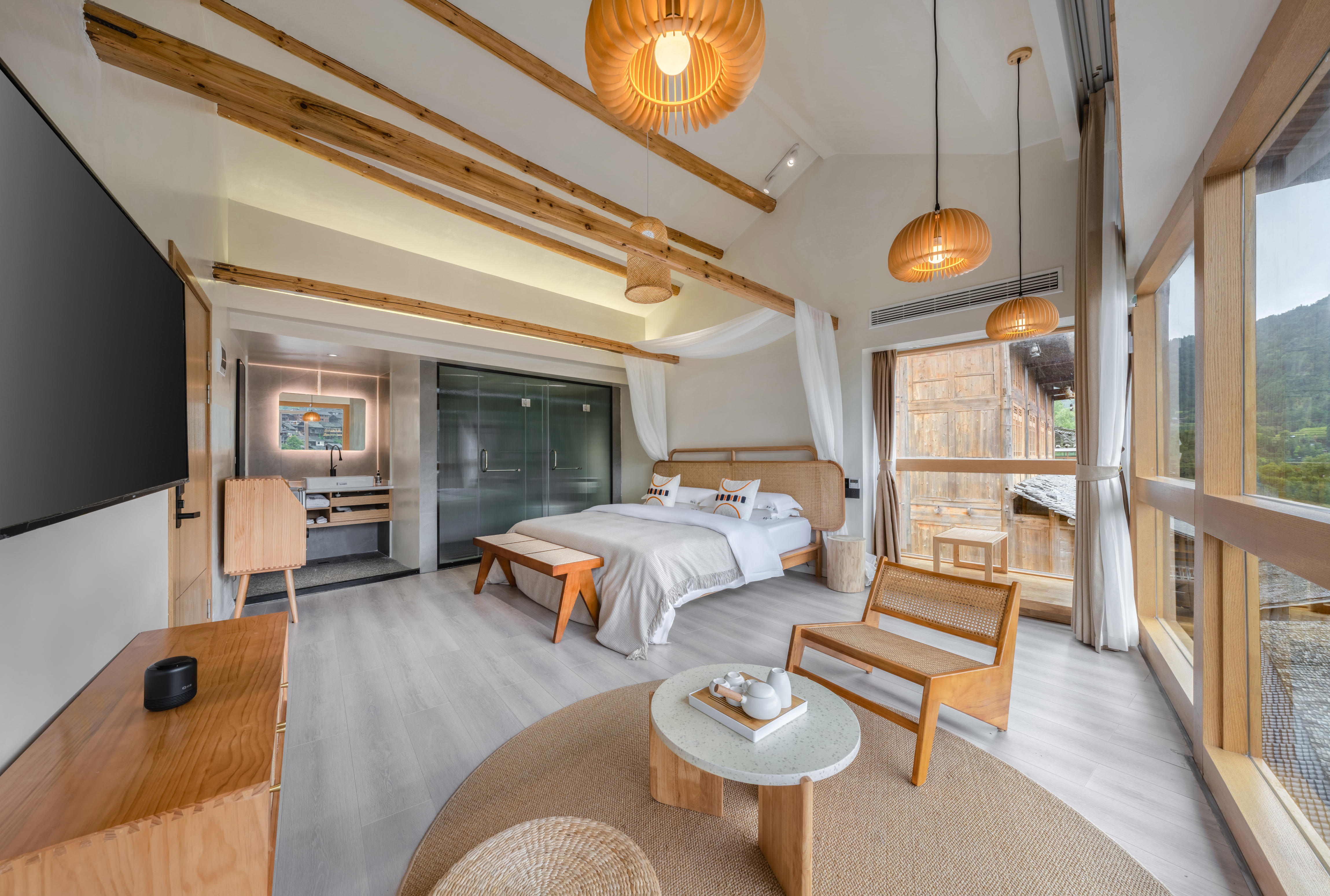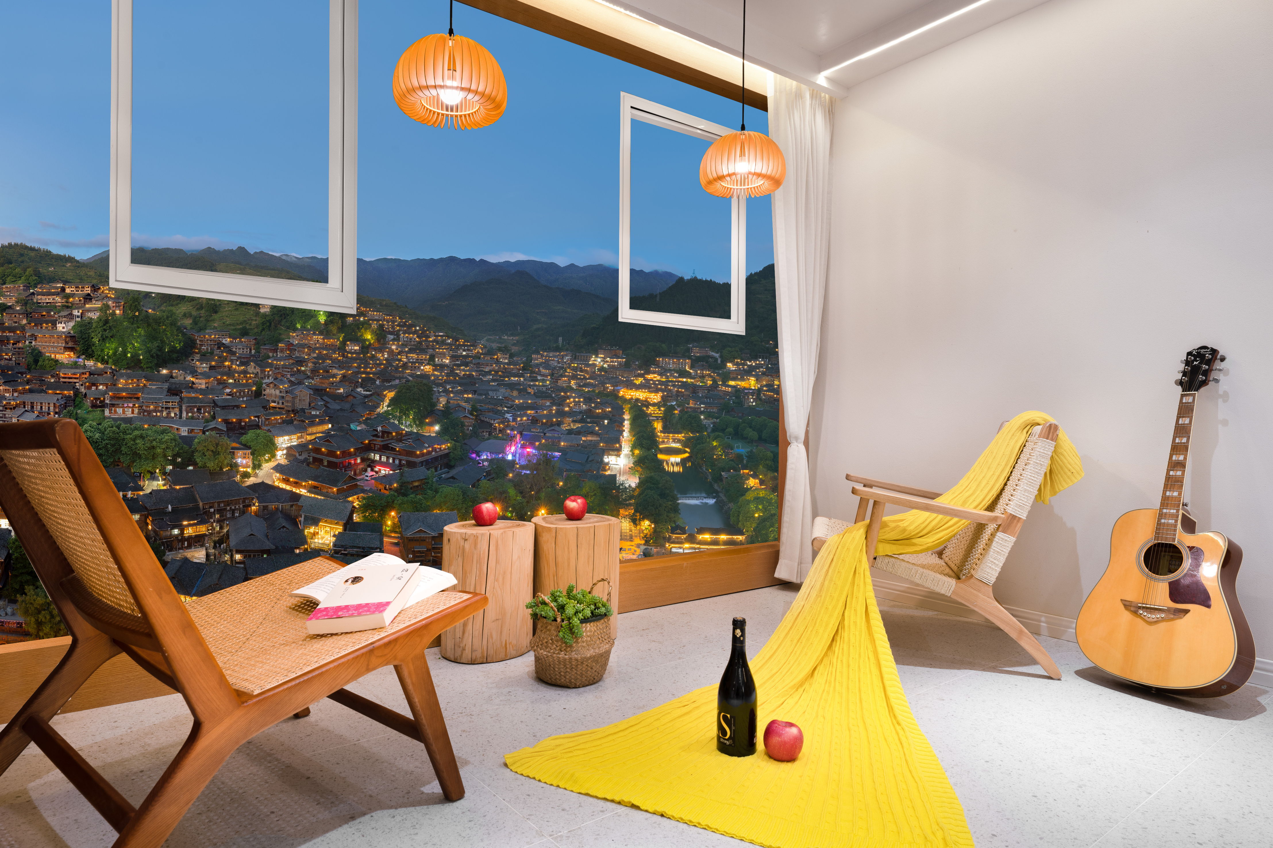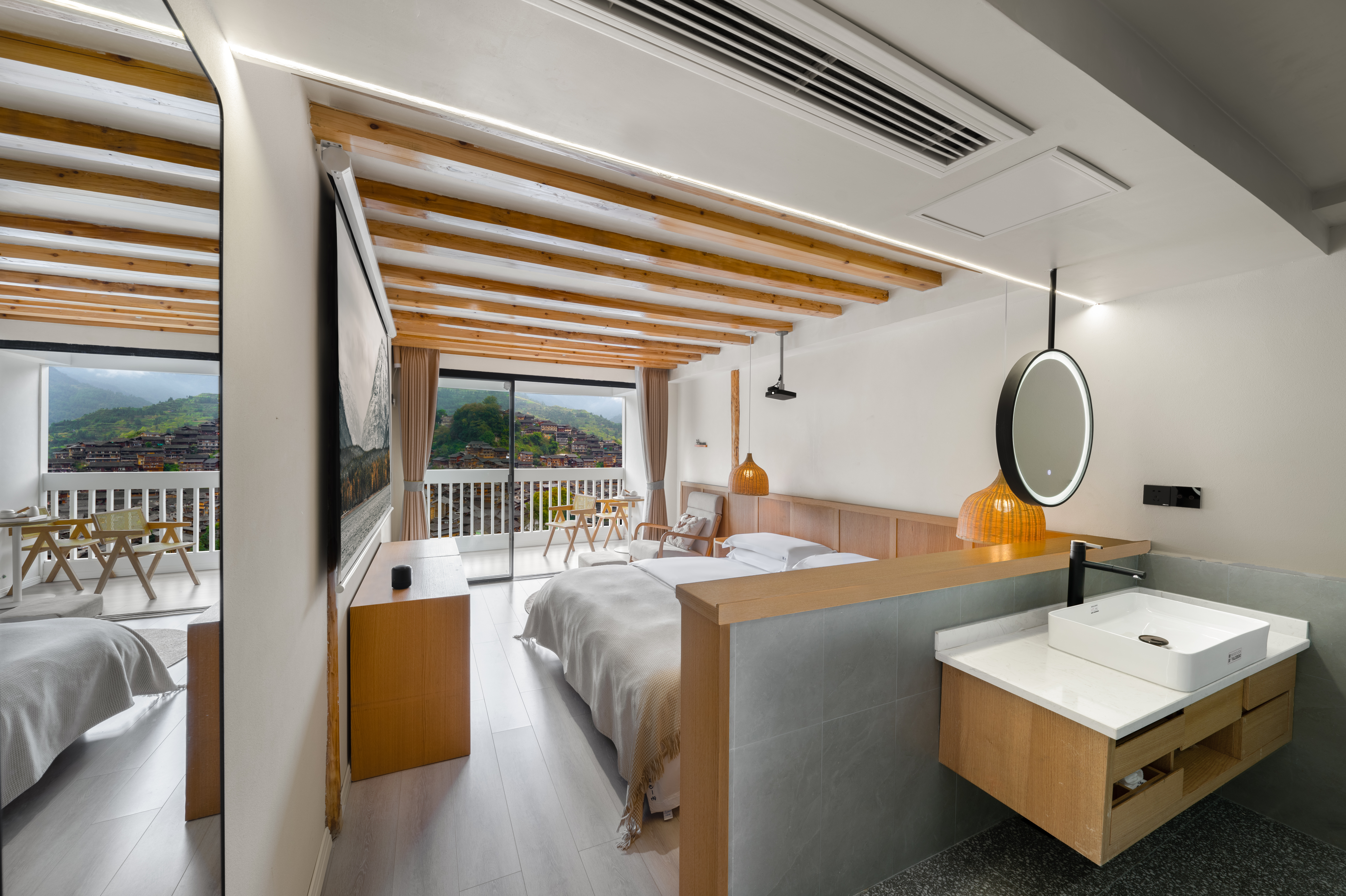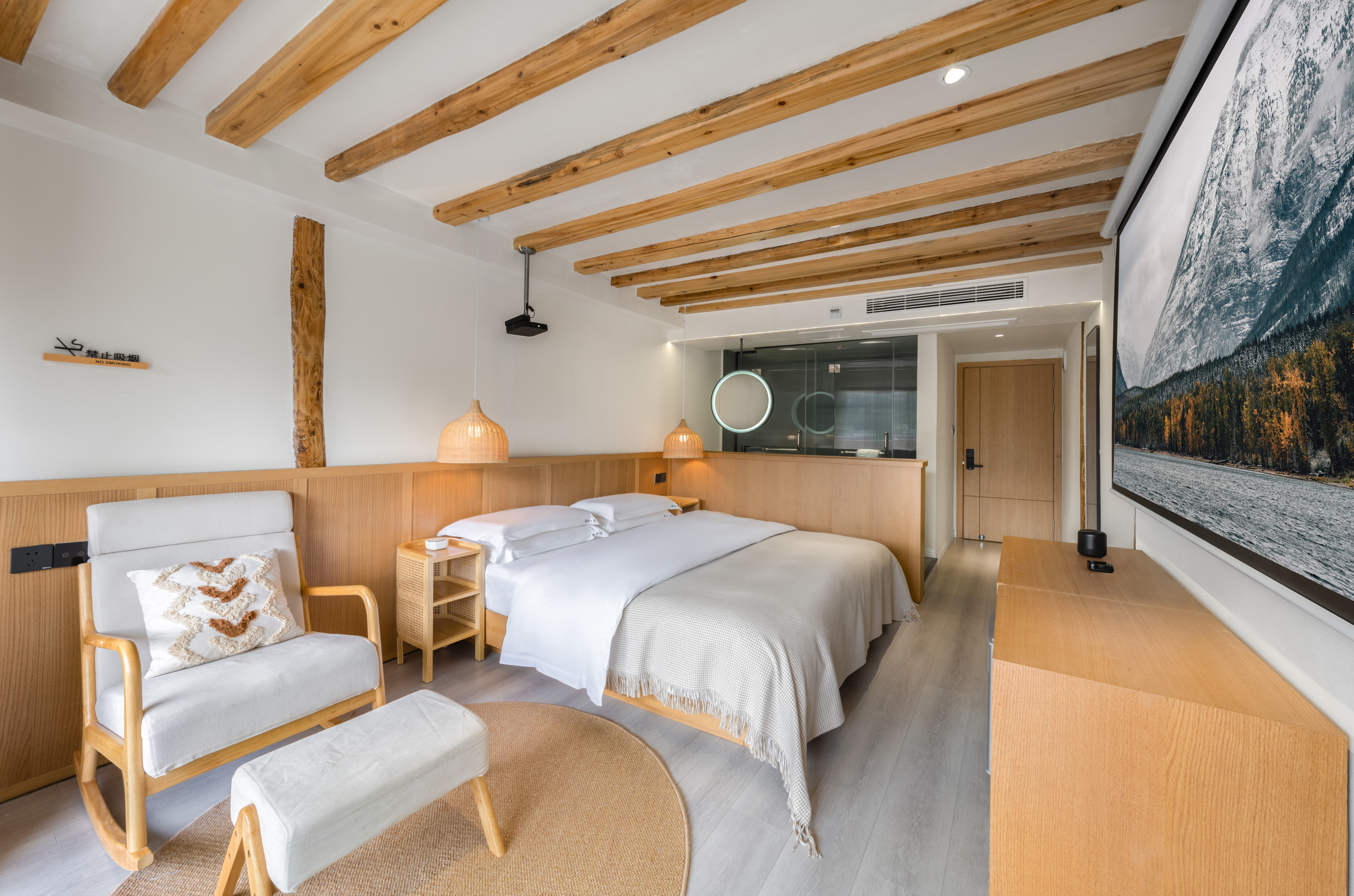 平山川|投影阳台大床房——270度瞰景无遮挡*智能房控系统