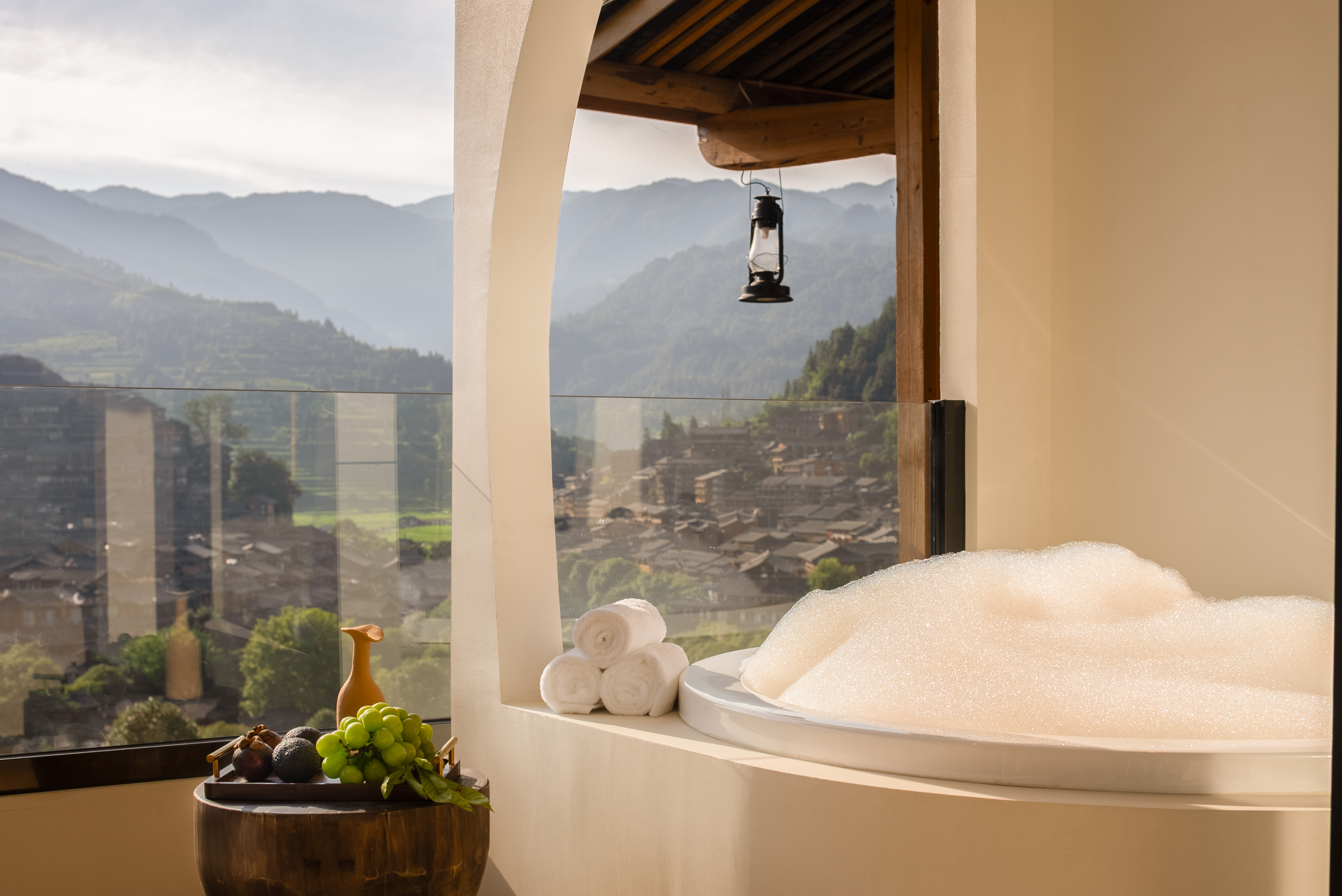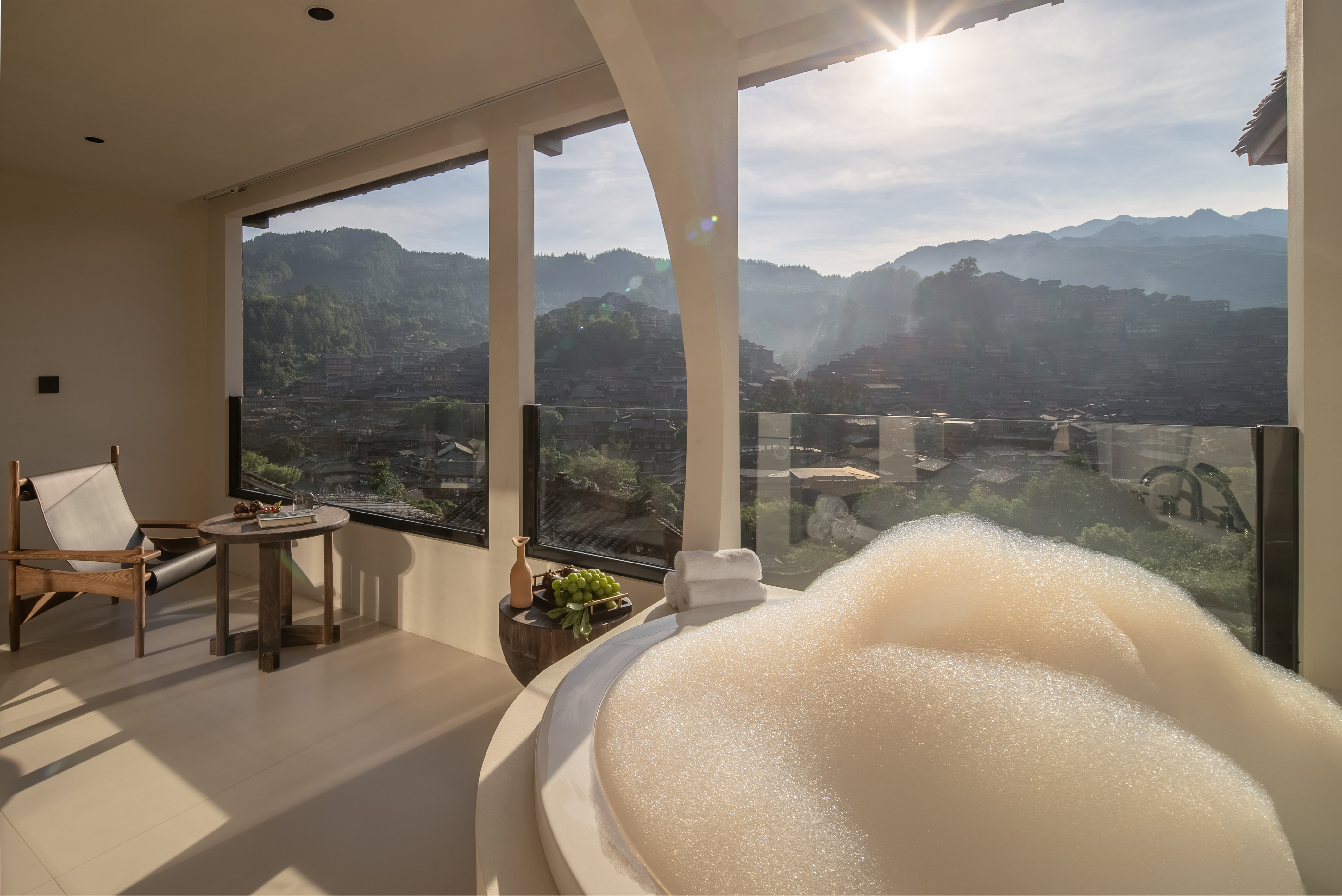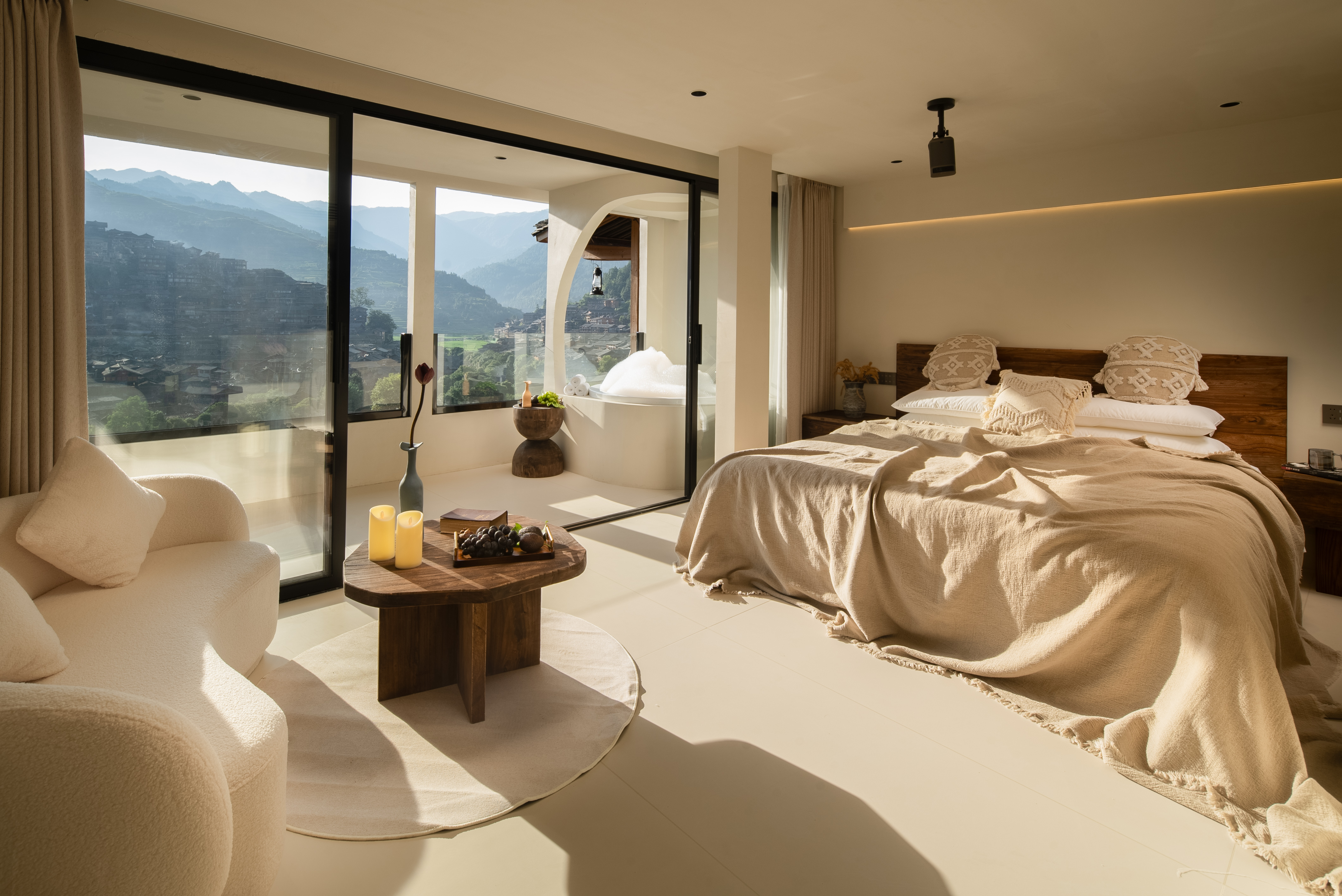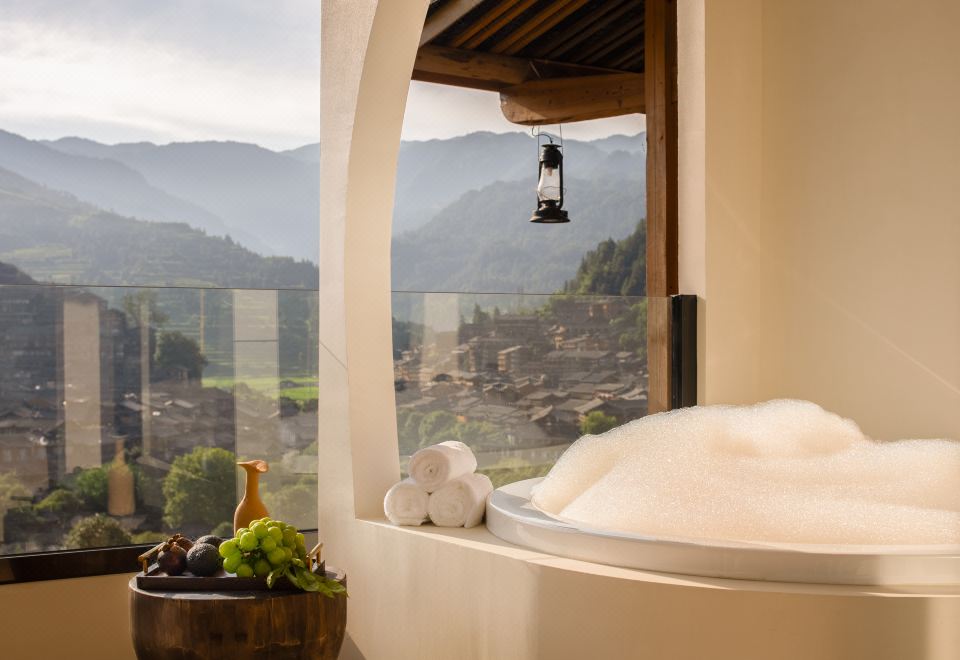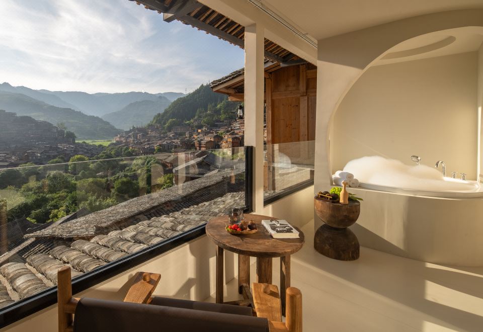 栖·全景阳台浴缸大床房-慕思静音床垫|小度语音智控|徕芬吹风机|极米投屏|智能马桶