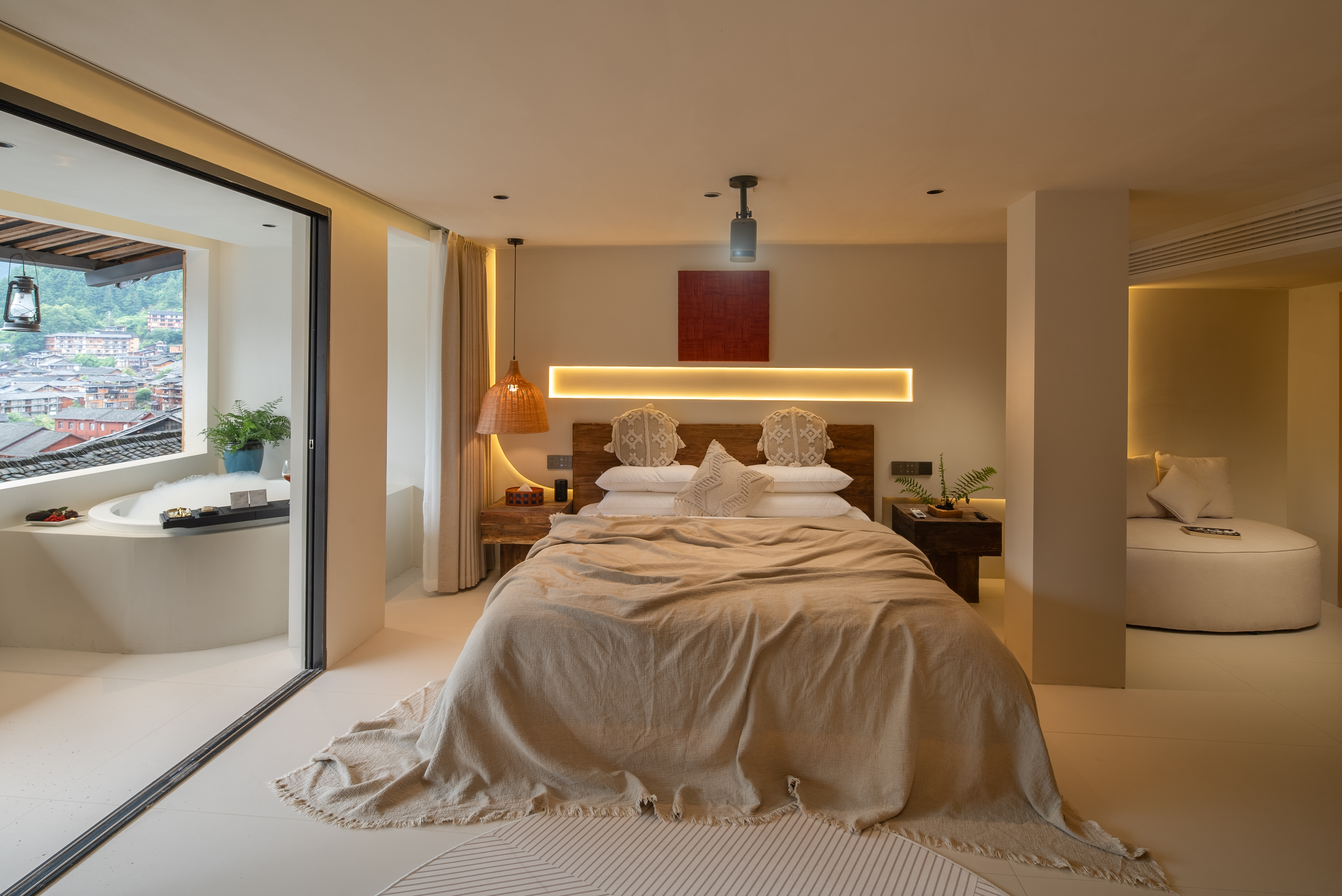 雾·全景阳台浴缸大床房-慕思静音床垫|小度语音智控|徕芬吹风机|极米投屏|智能马桶
