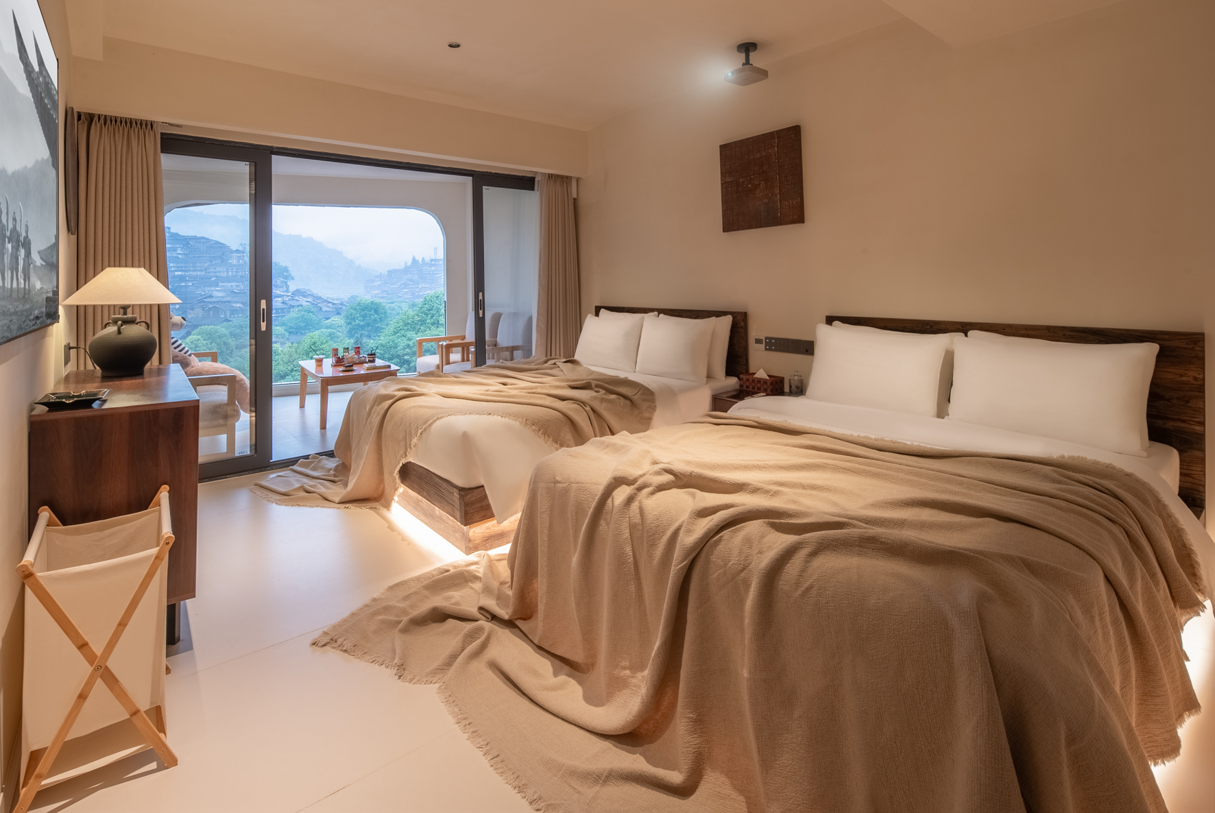 辰.全景露台双床房-静音床垫|小度语音智控|莱芬吹风机