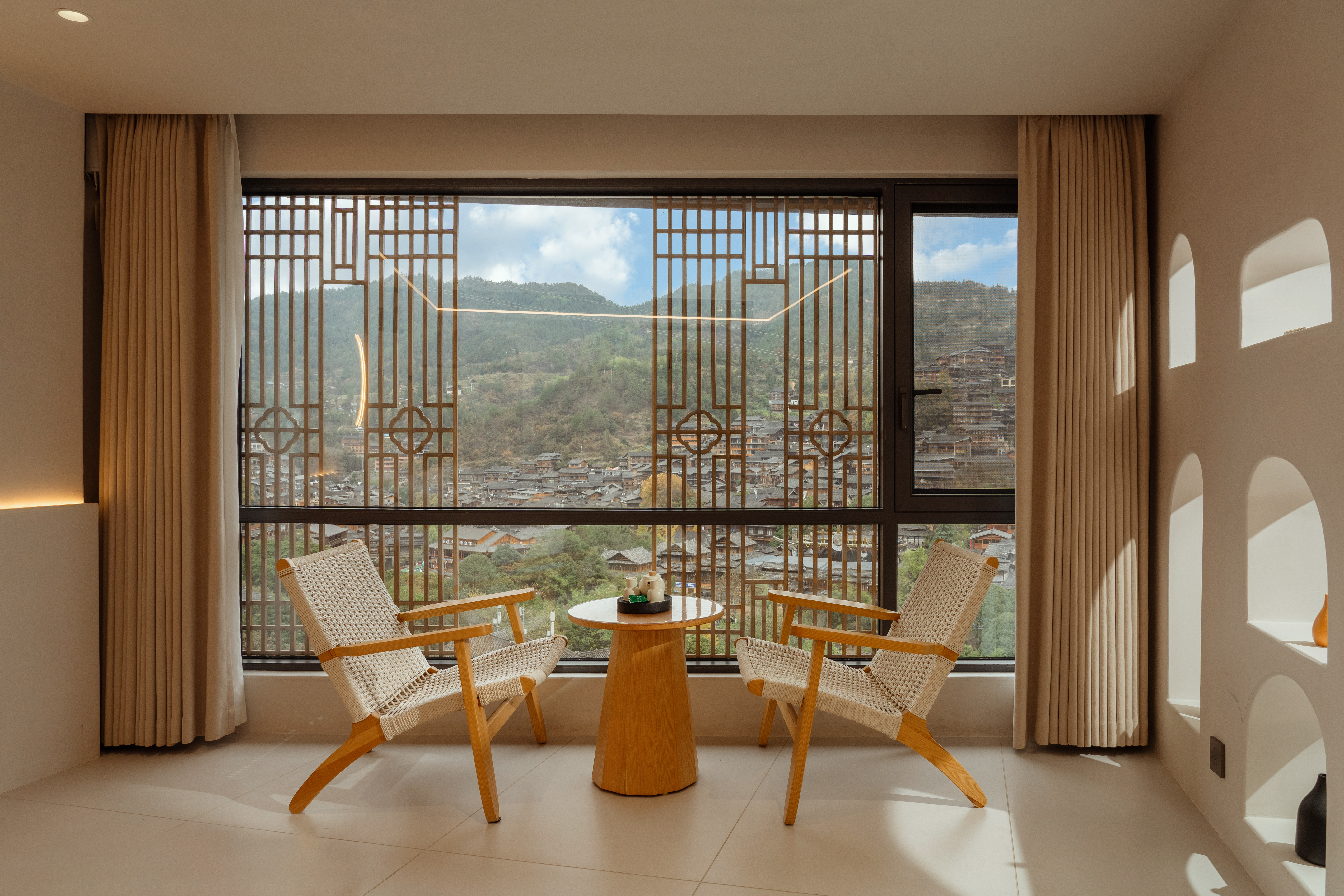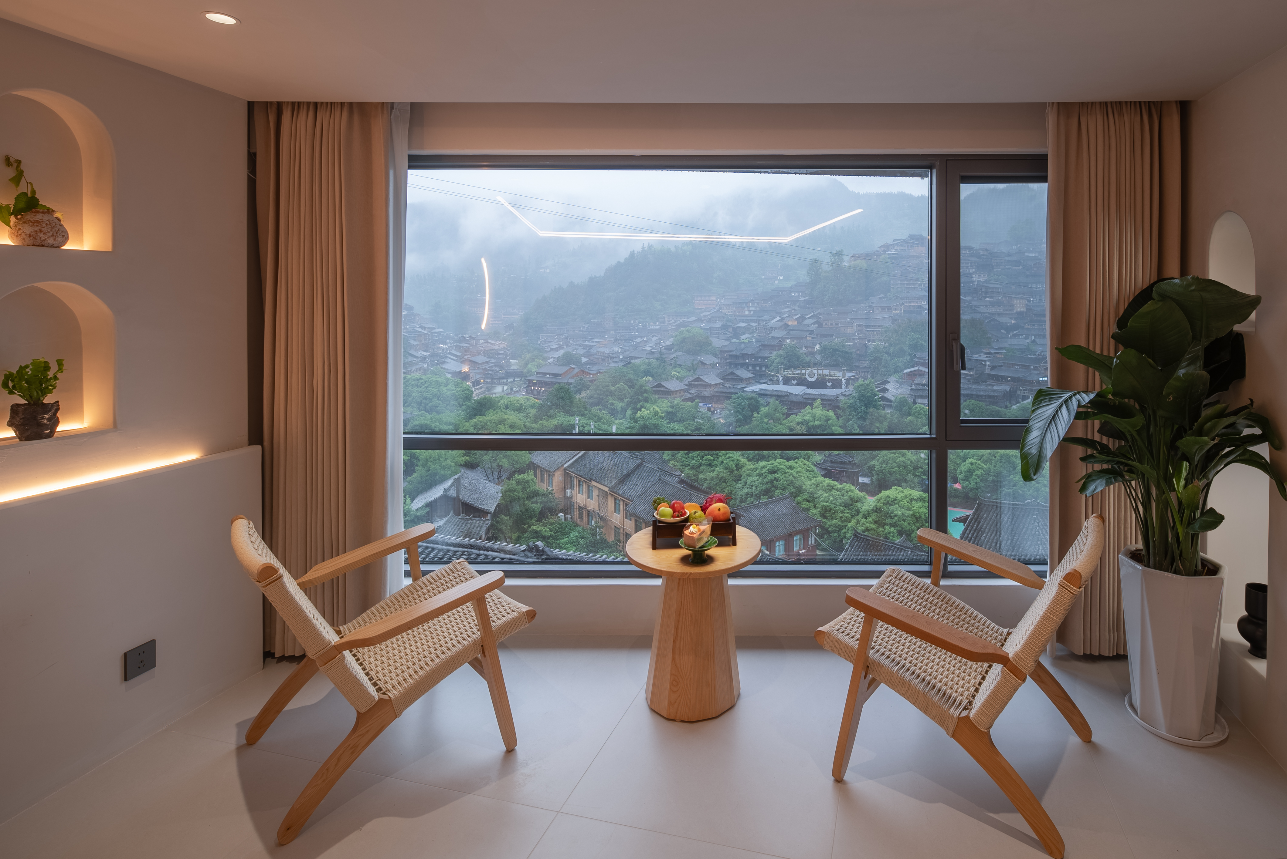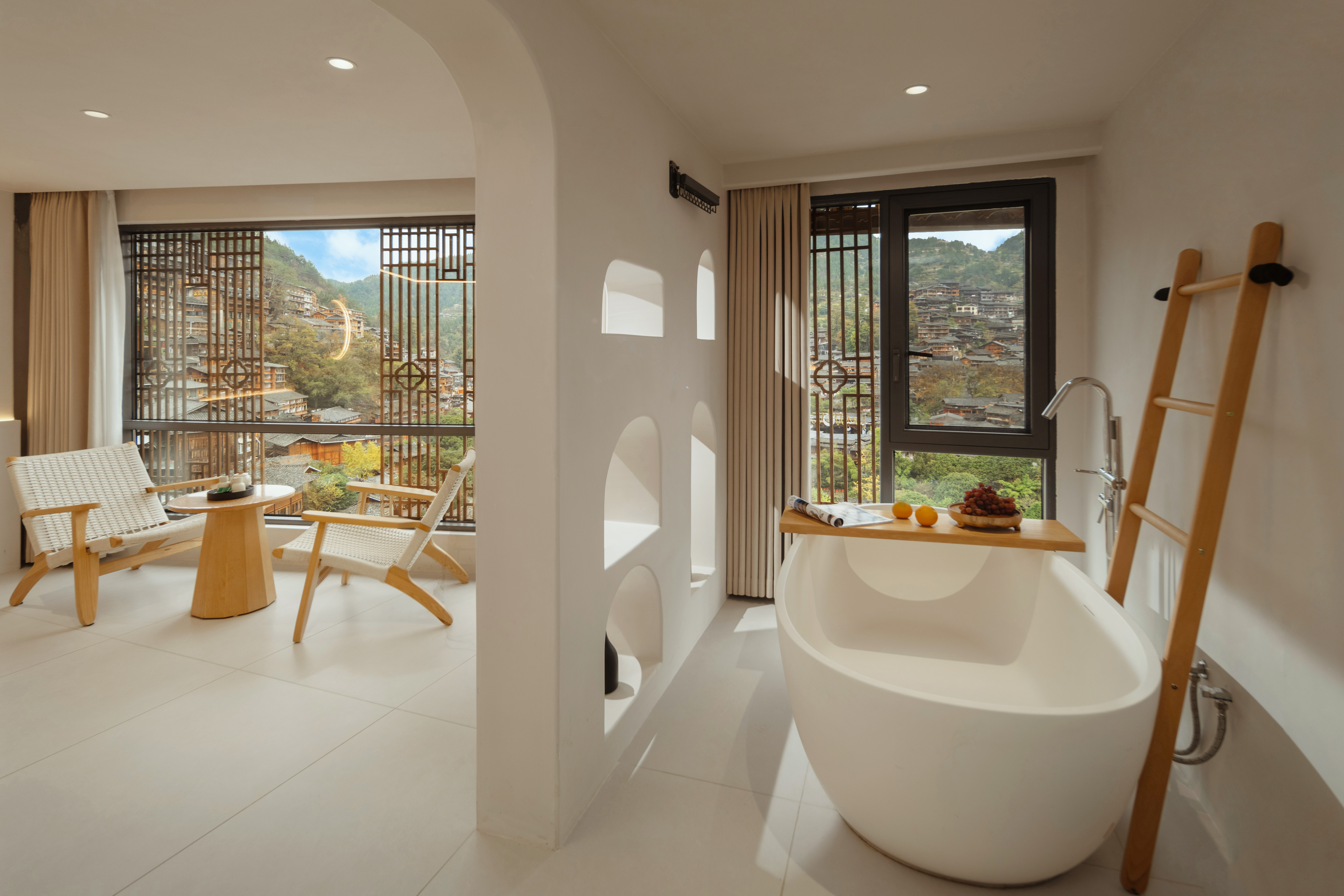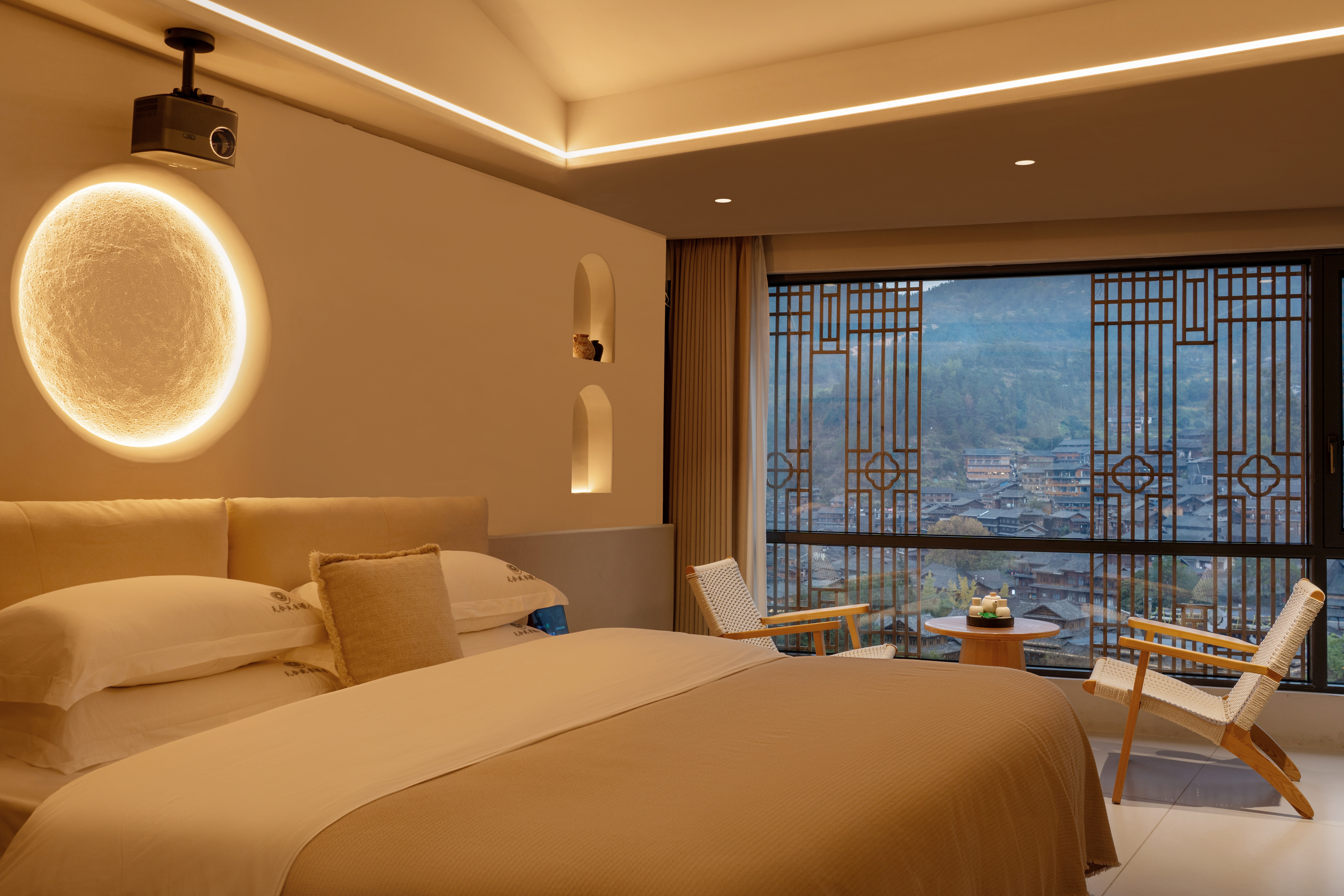 梦 · 全景落地窗浴缸大床房【躺看苗寨夜景】