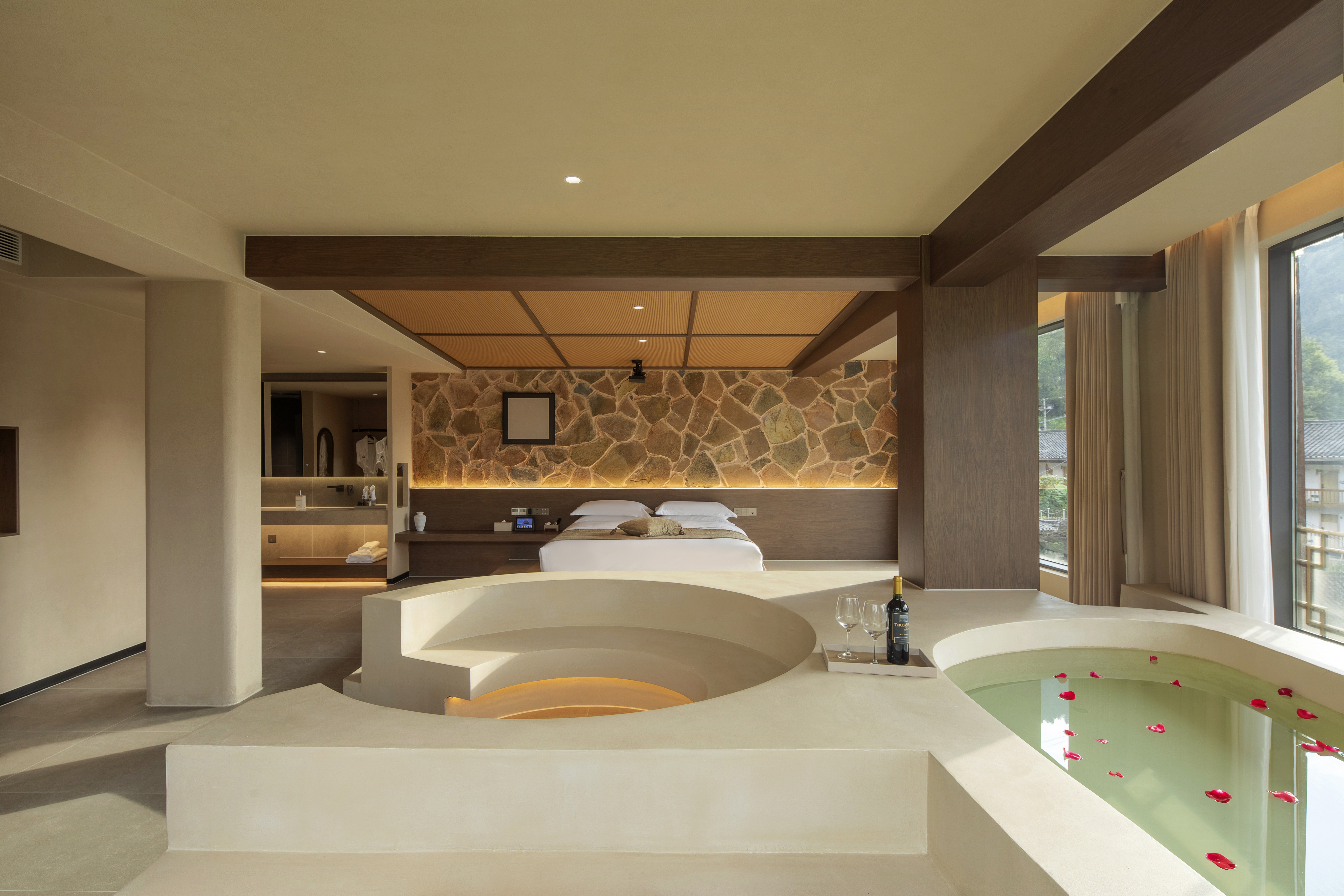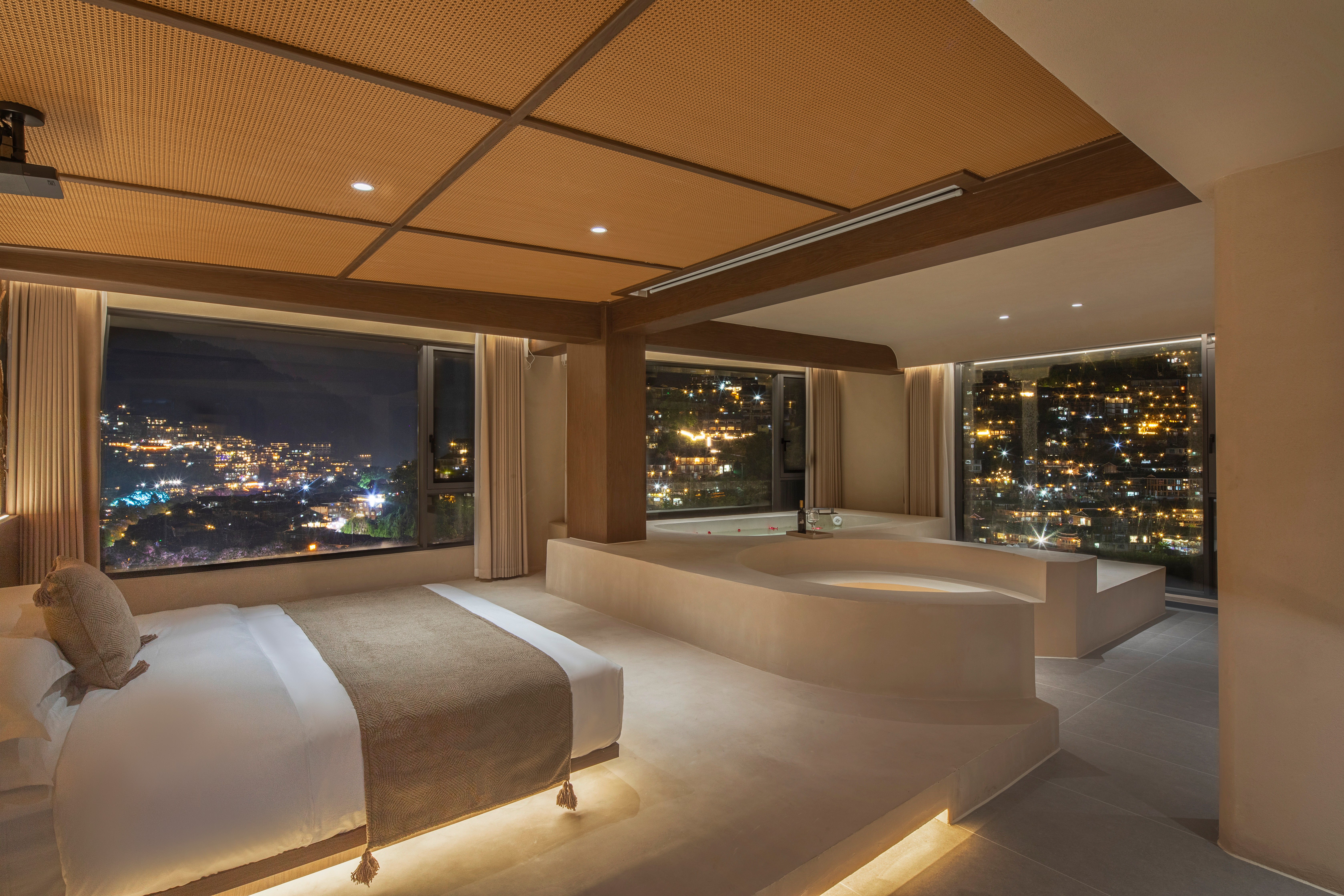 云月·圆床房|凌空云境·千户遗韵|全景阳台|玫瑰浴缸