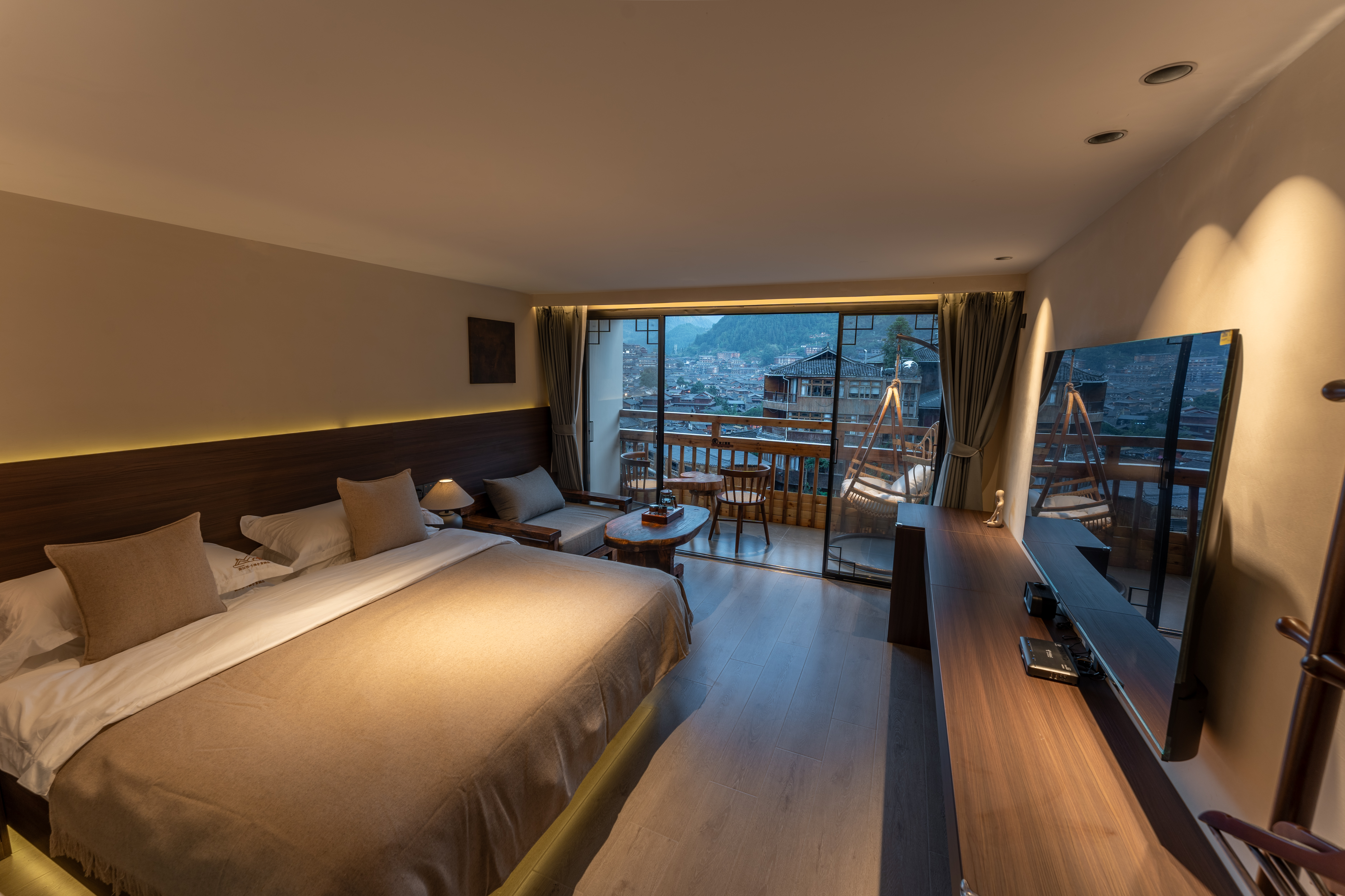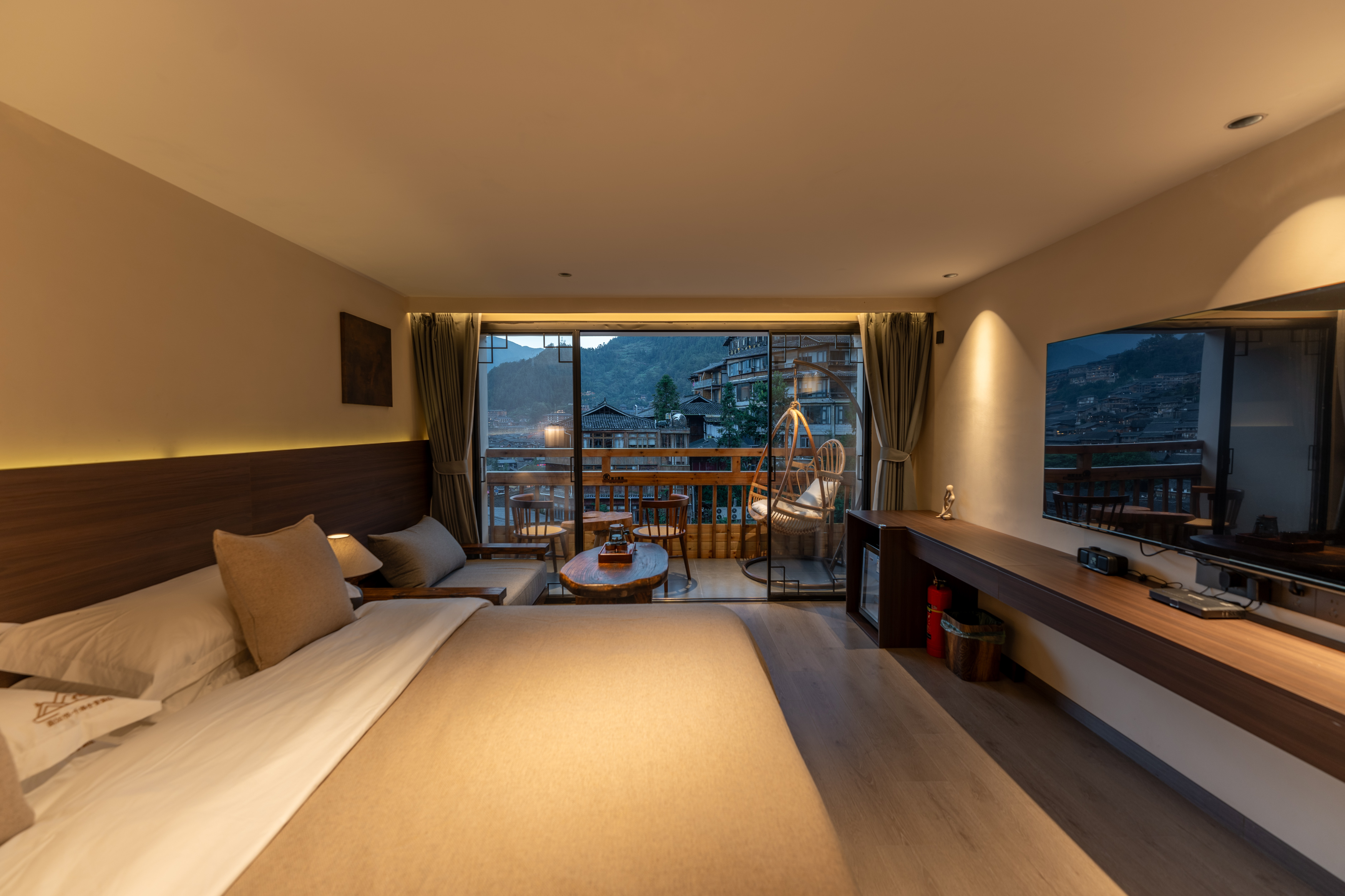 悦?无忧全景阳台豪华大床房(独立户外阳台+户外摇椅+打卡出片+全屋智能+戴森吹风机)