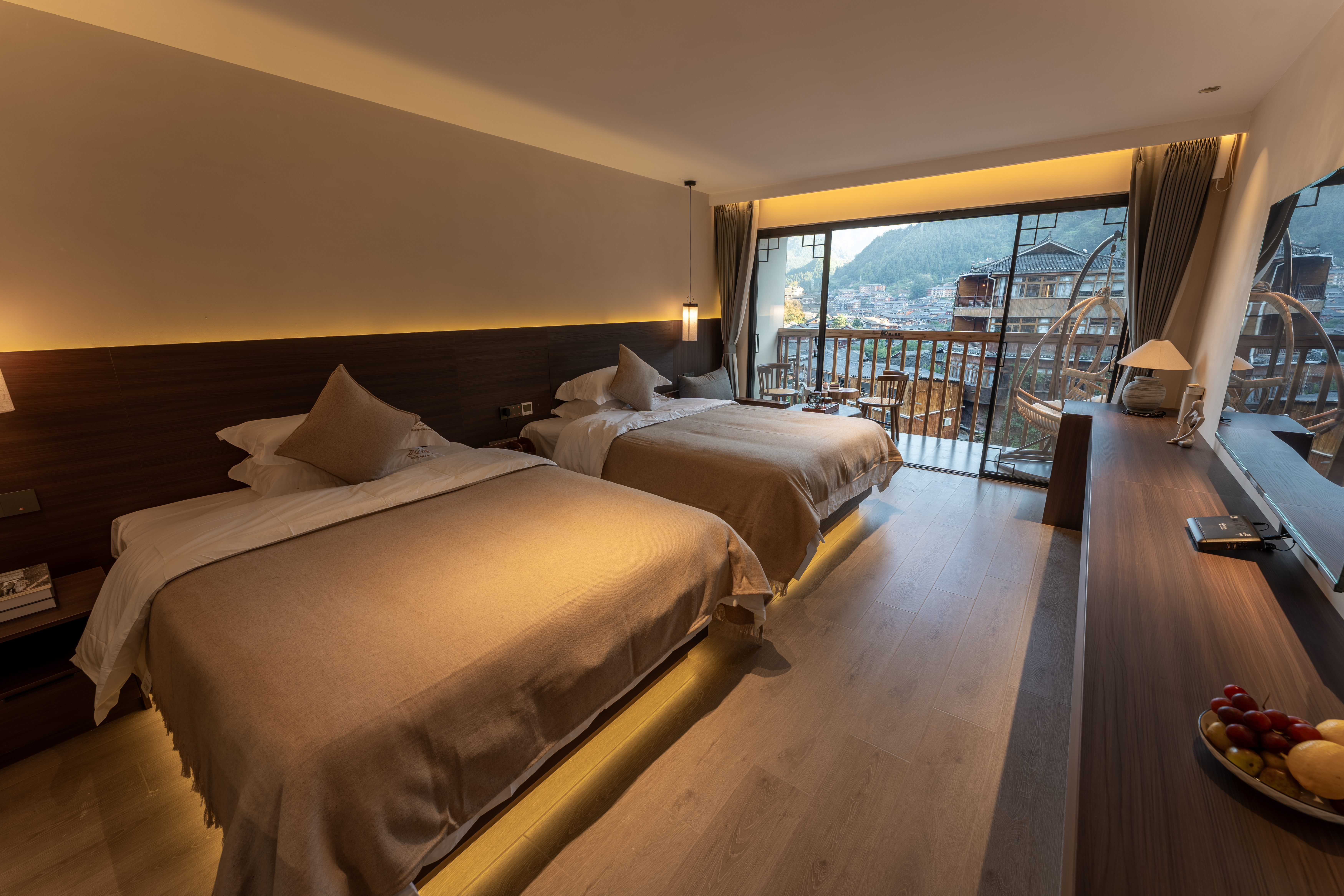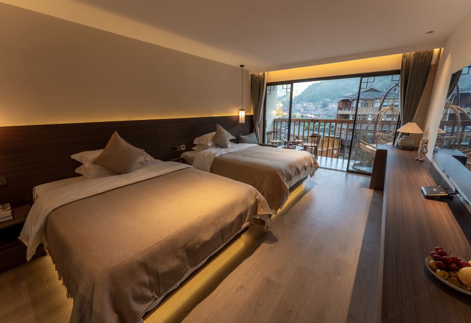 悦?如愿全景阳台豪华双床房(独立户外阳台+户外摇椅+打卡出片+全屋智能+戴森吹风机)