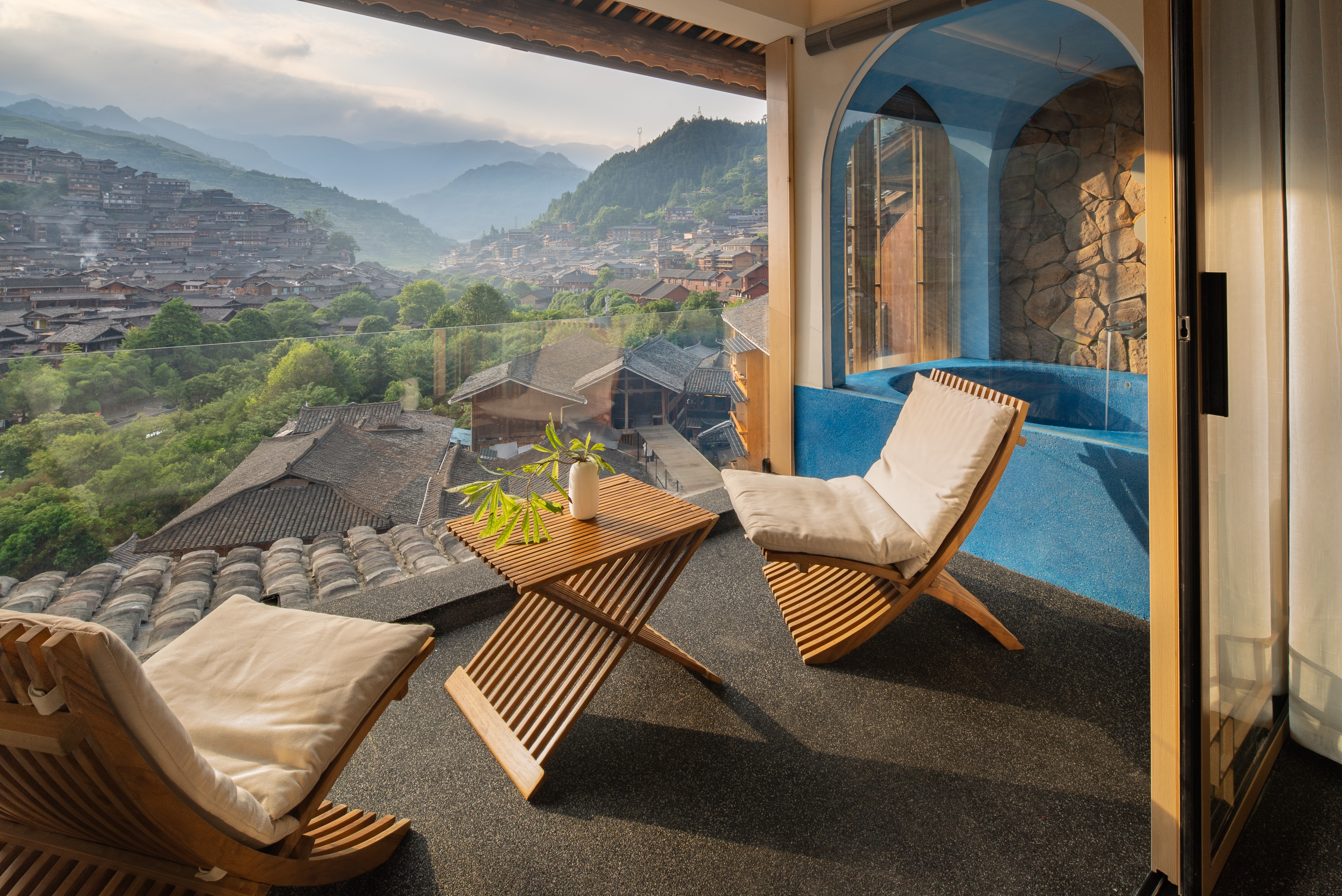 云舒·露台观景泡池大床房-慕思静音床垫|小度语音智控|戴森吹风机|迷你吧|极米投屏|户外独立阳台