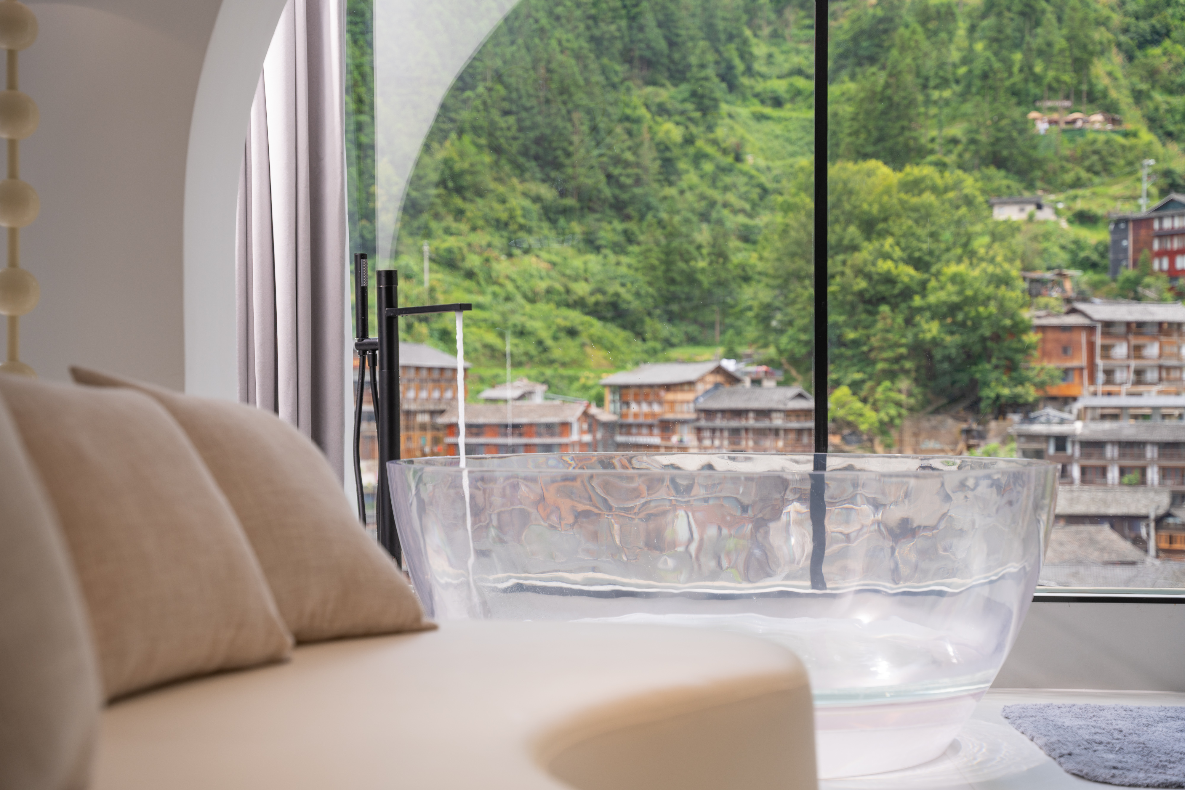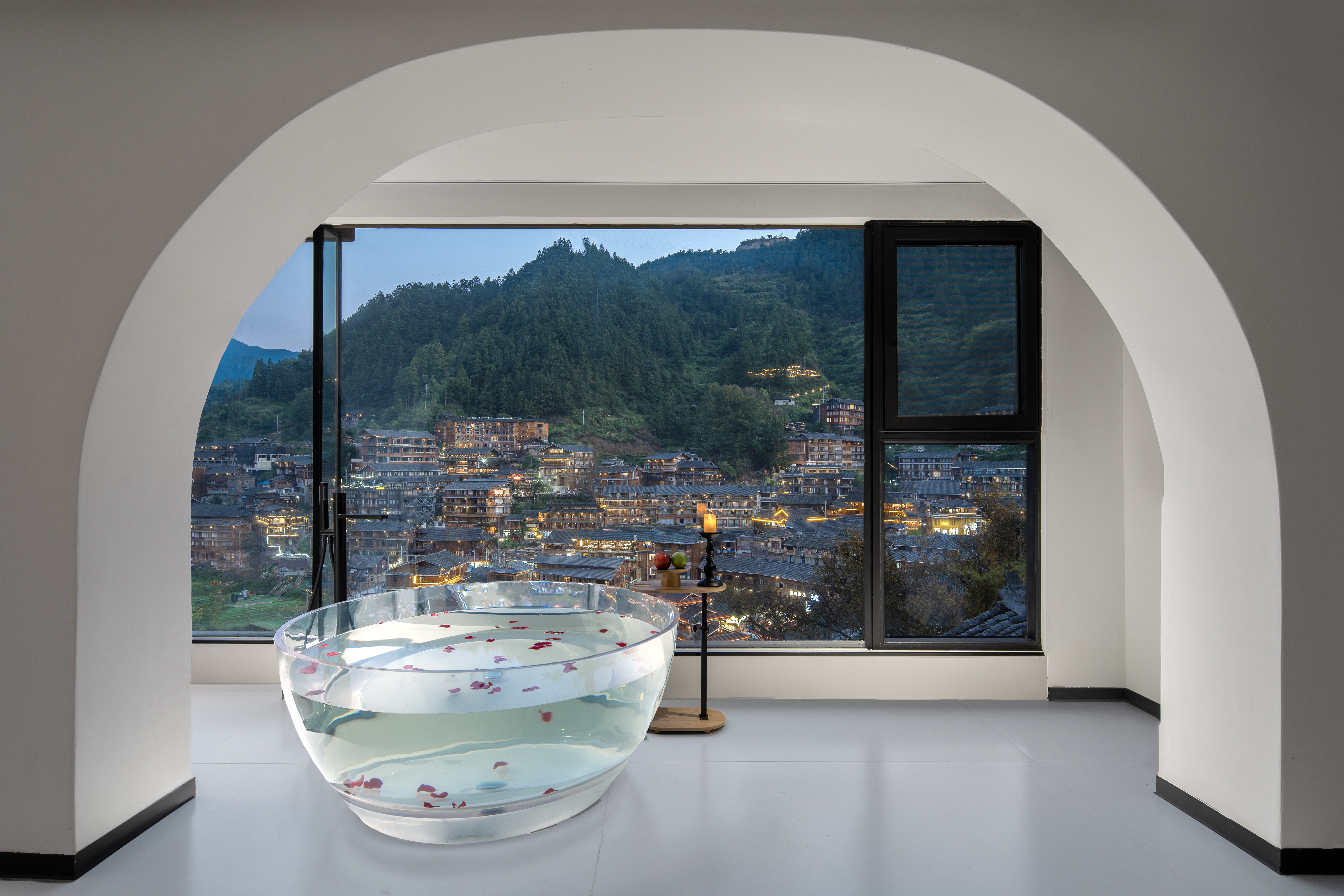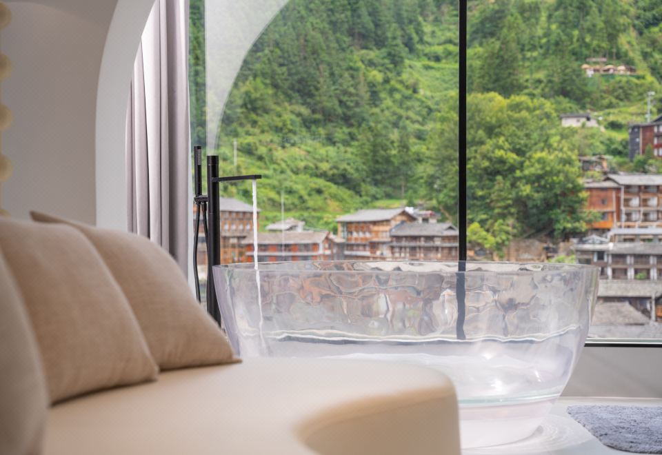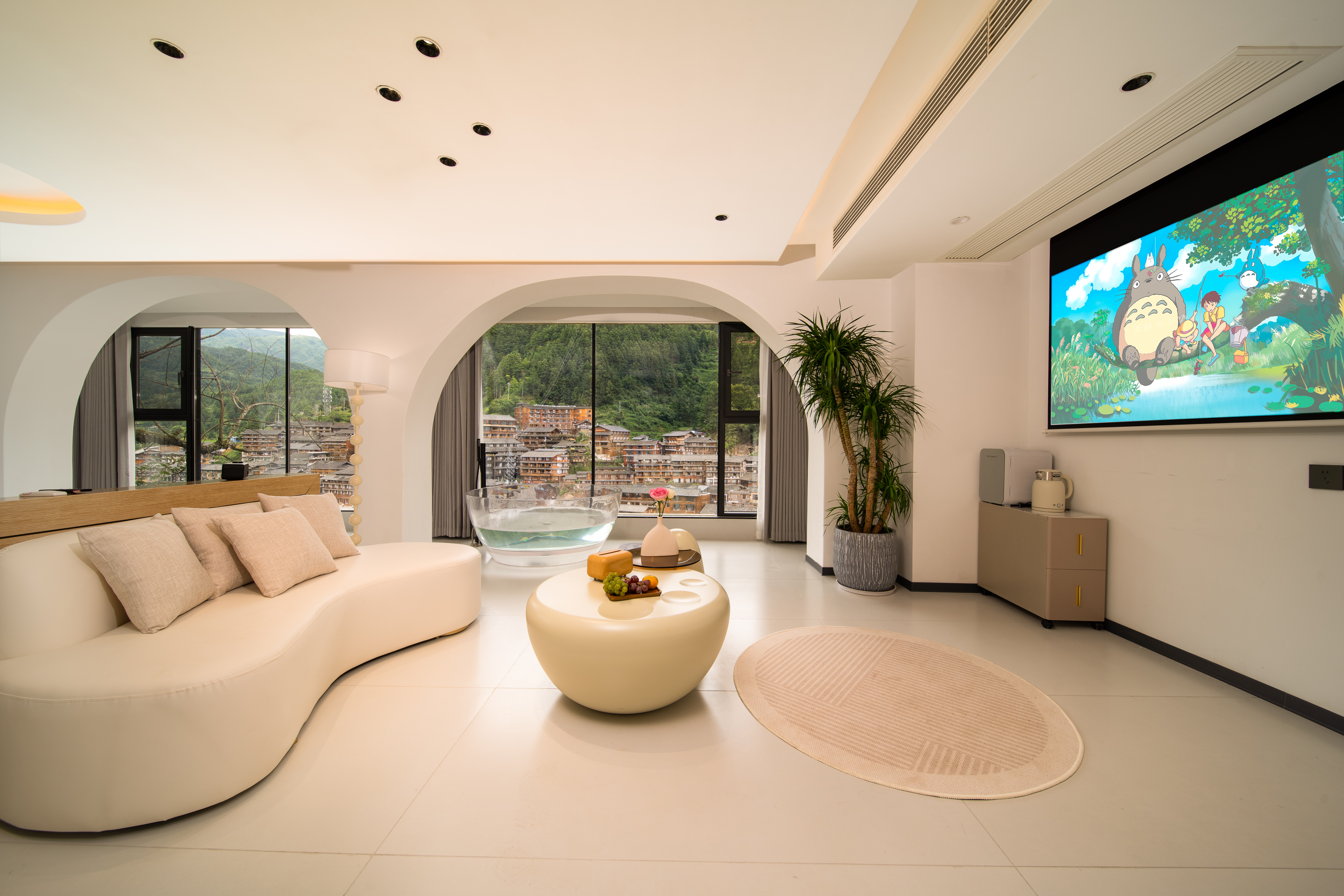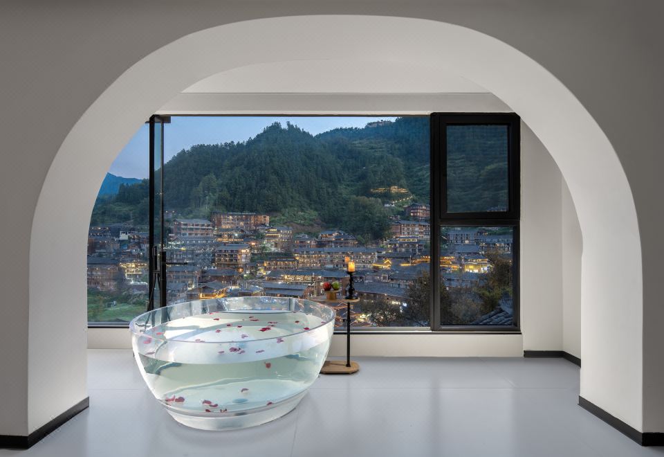 楼·观景阳台电动大圆床房(天猫精灵智能客控+极米投影+EOS迷你冰箱+金可儿床垫+徕芬吹风机+浴缸+智能马桶)