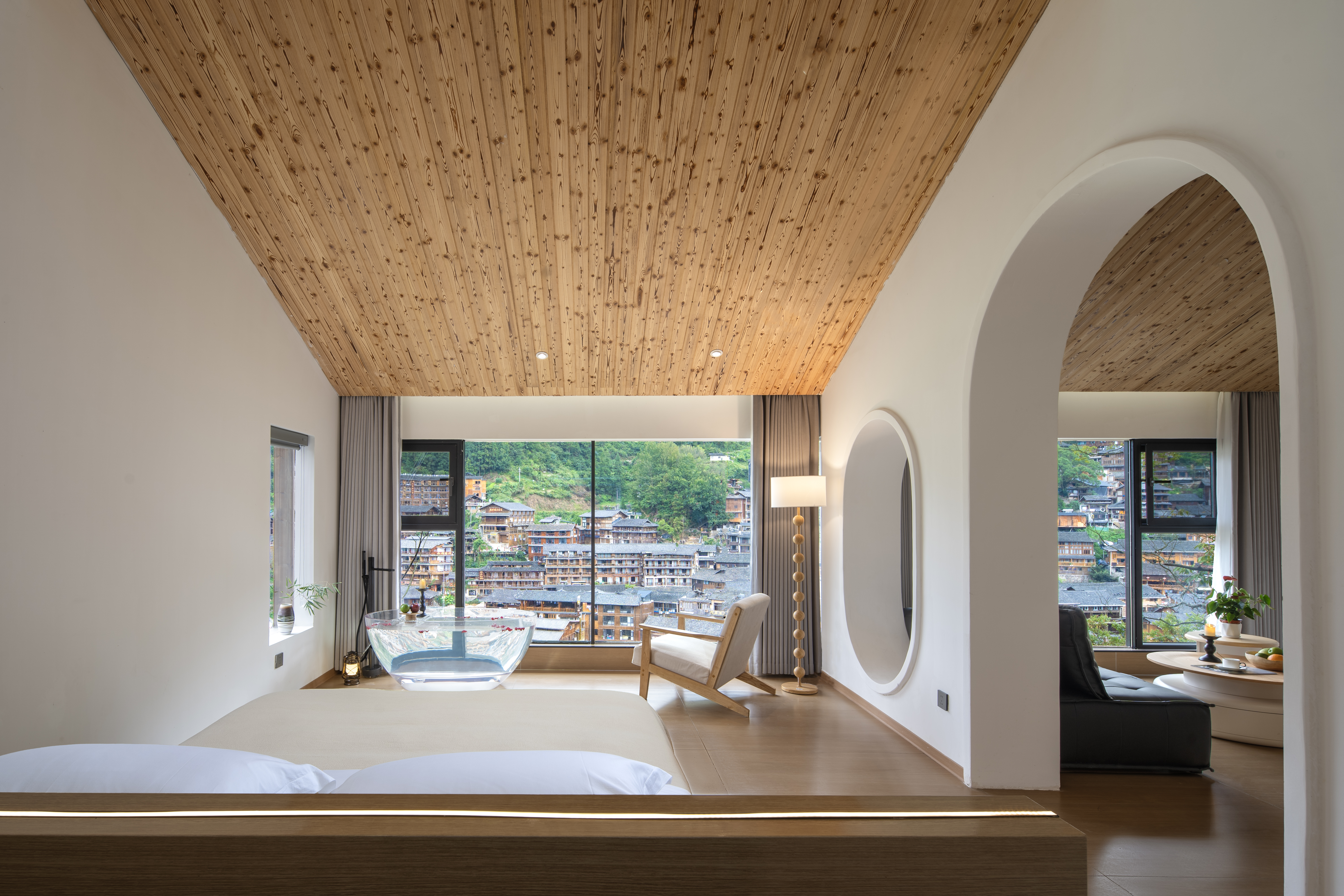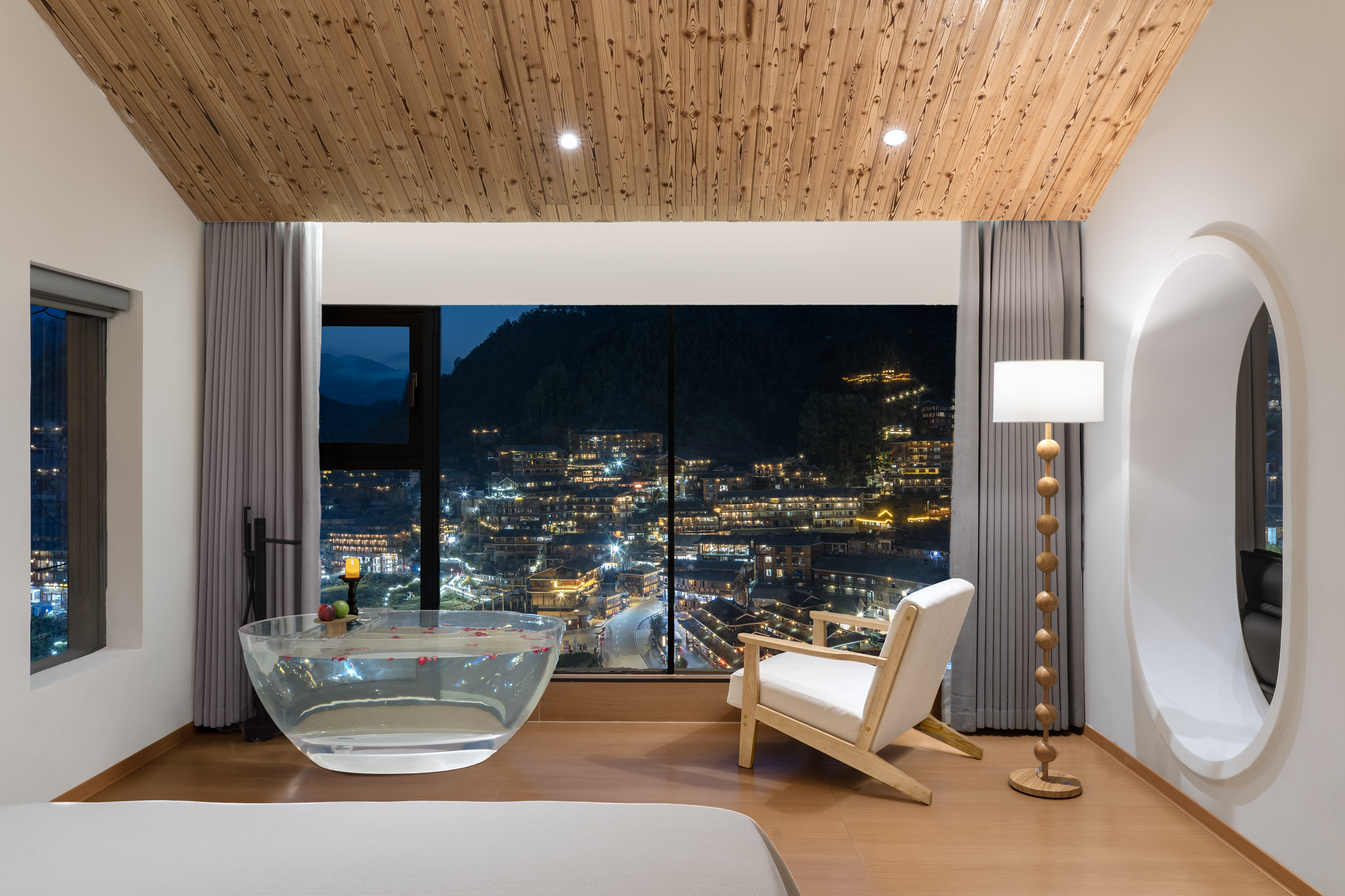 楼·观景阳台电动大圆床房(天猫精灵智能客控+极米投影+EOS迷你冰箱+金可儿床垫+徕芬吹风机+浴缸+智能马桶)