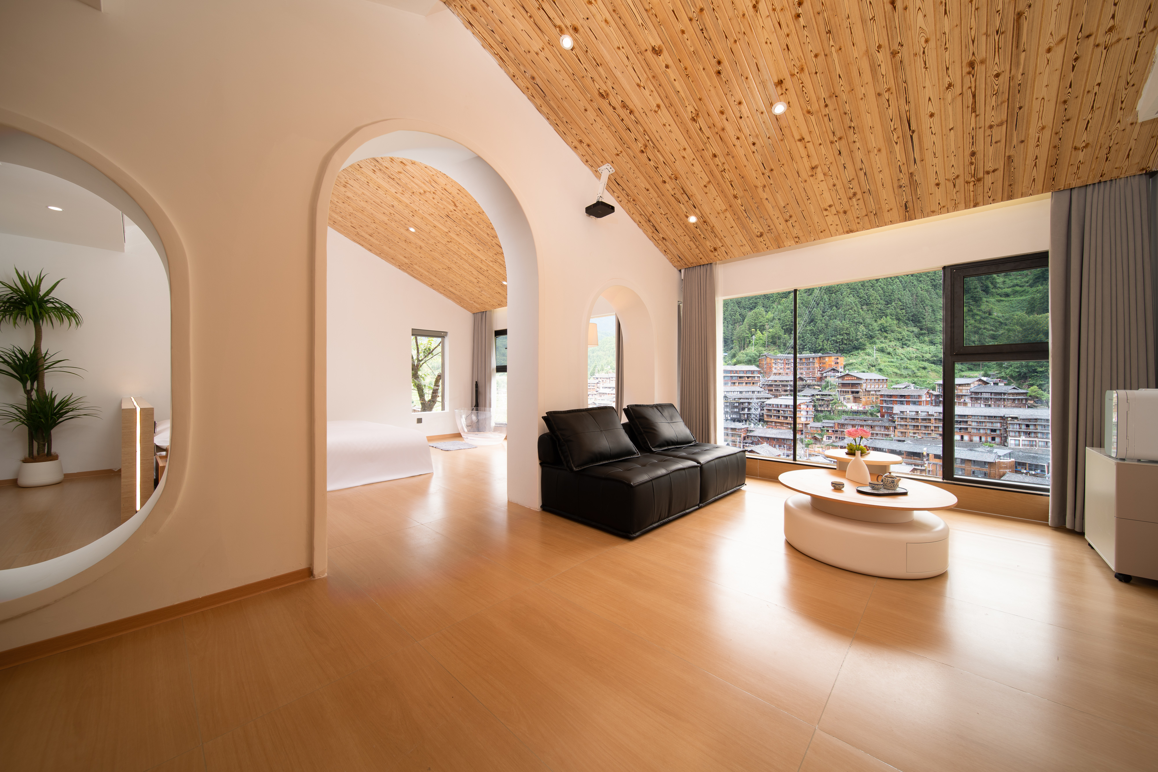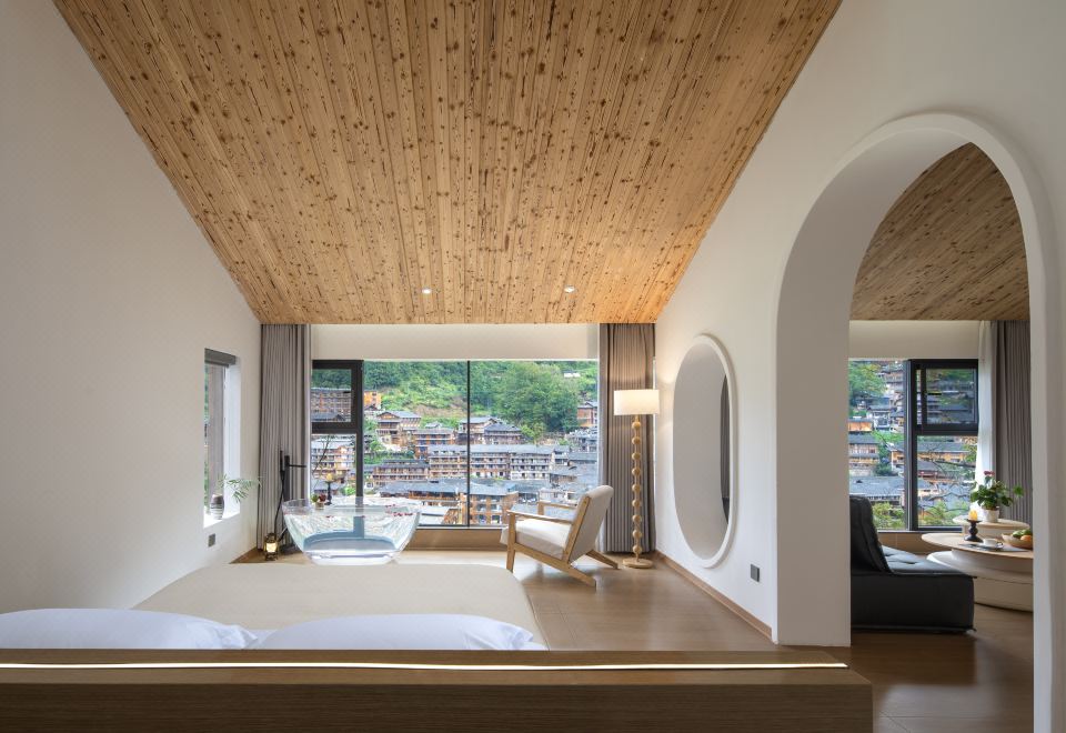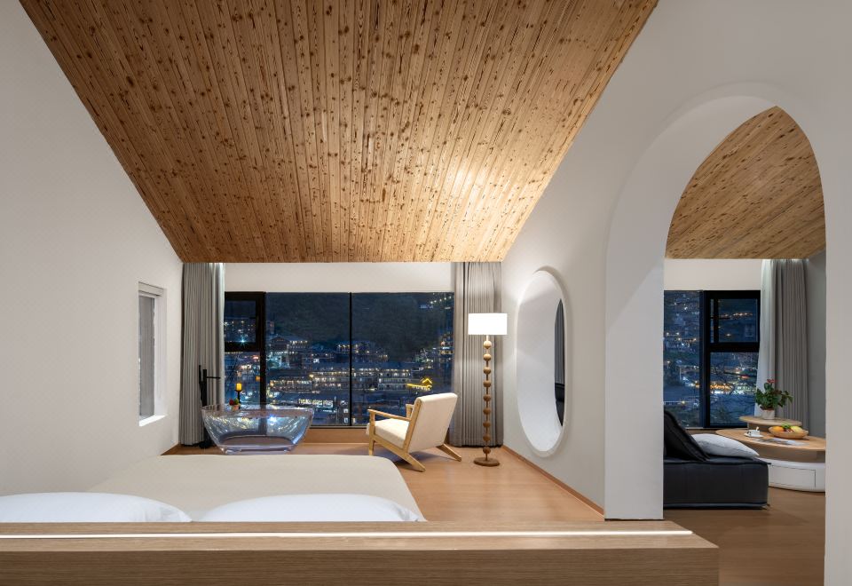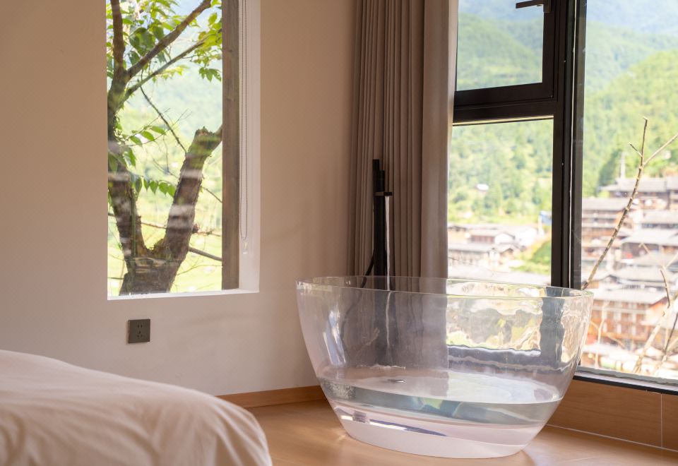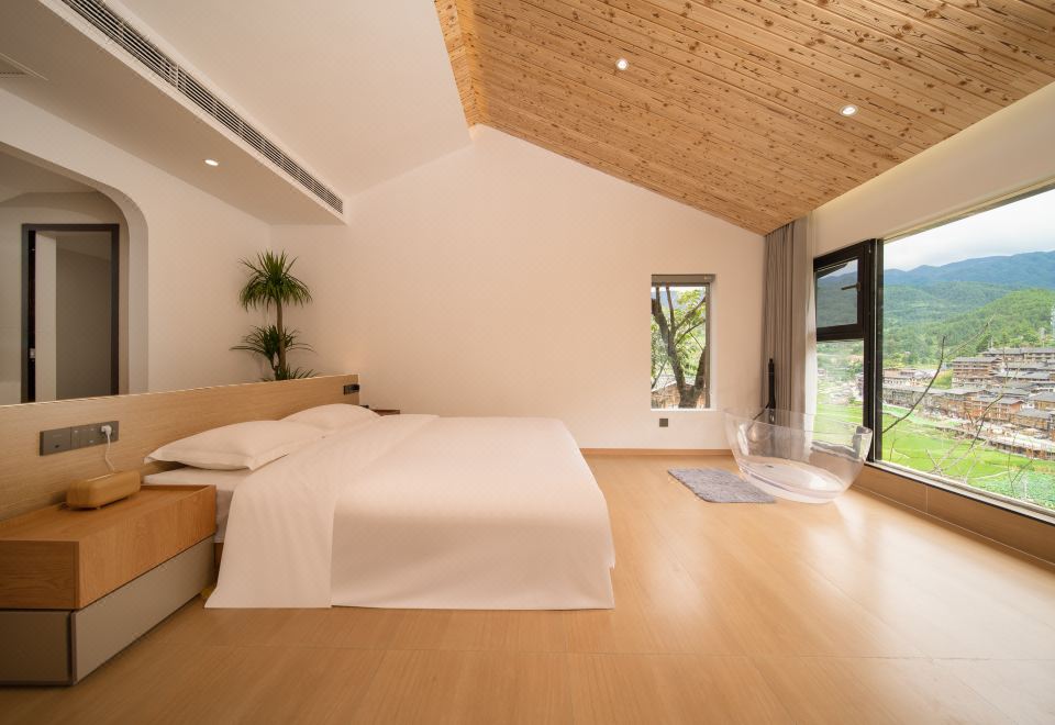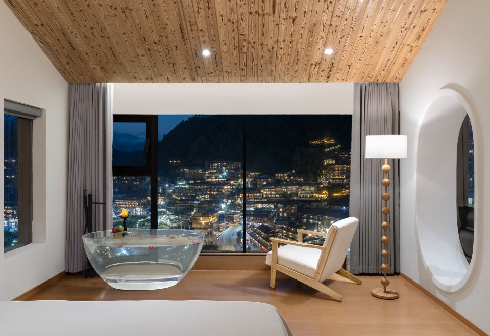 琼·观景舒适大床房(天猫精灵智能客控+极米投影+EOS迷你冰箱+金可儿床垫+徕芬吹风机+浴缸+智能马桶)